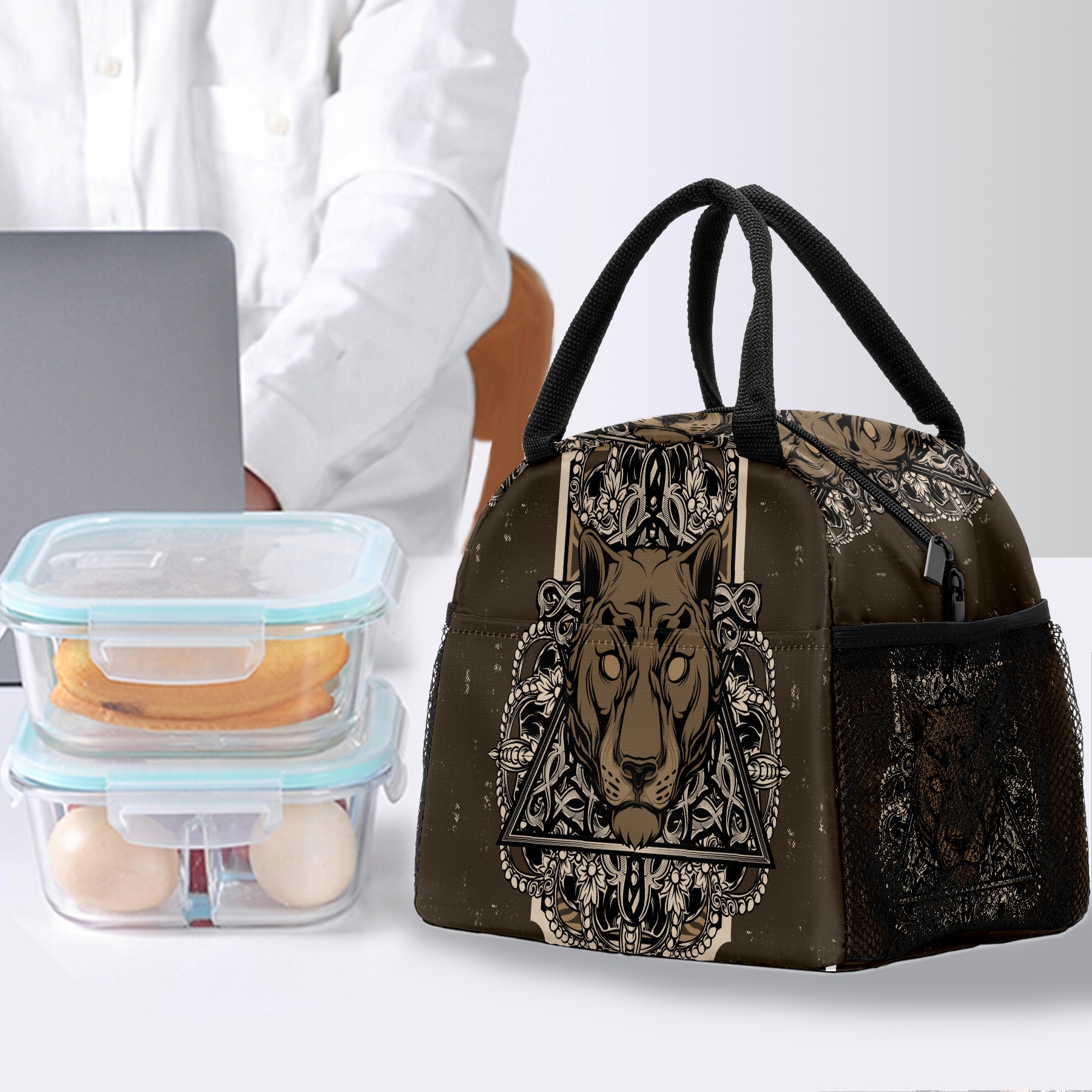Lunch Bag for Women Men, Fashion Hipster Tiger Crown Insulated Reusable Lunch Box Thermal Cooler Tote Bag for Work Picnic Hiking Travel Beach