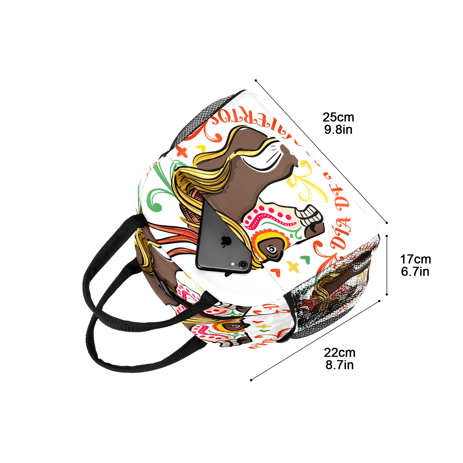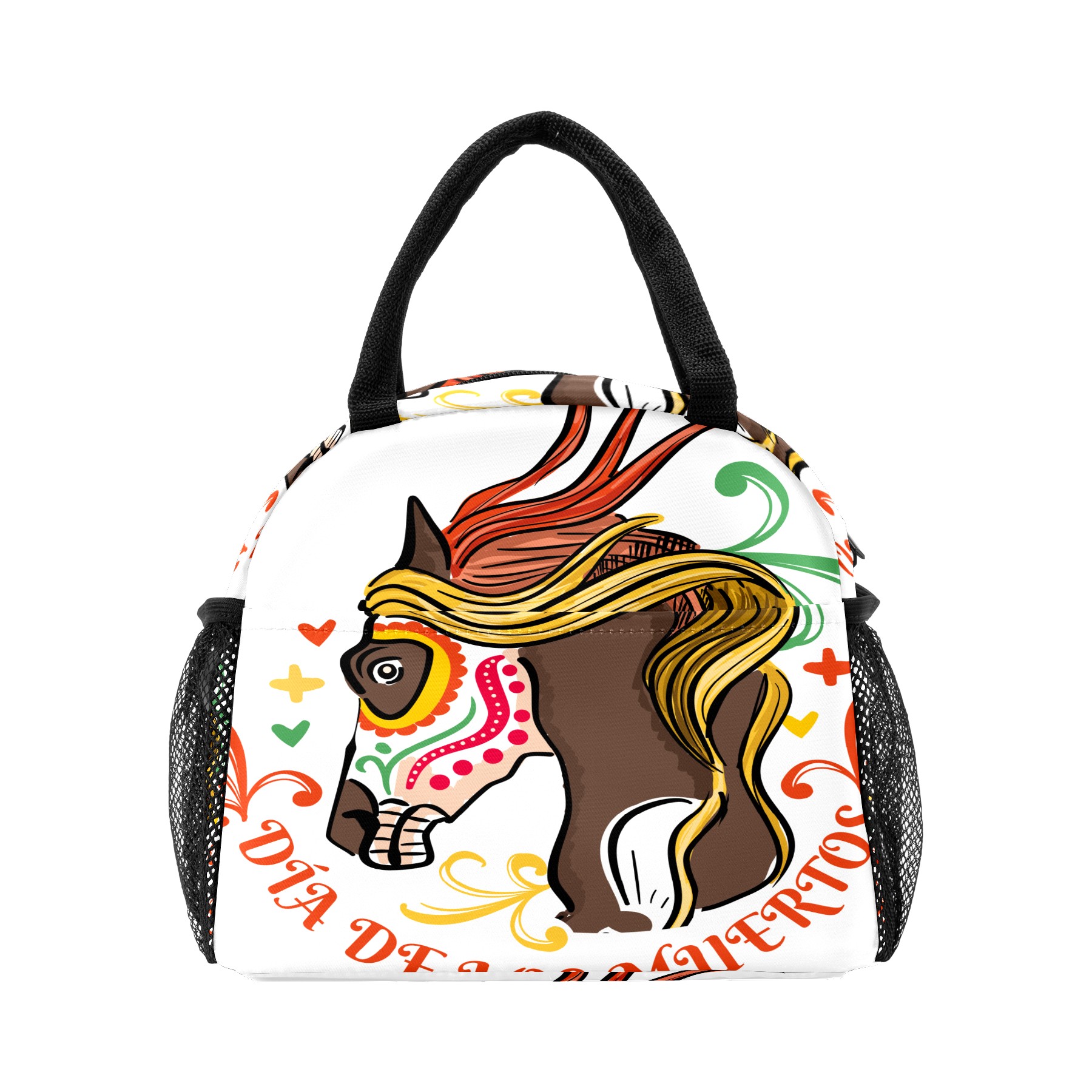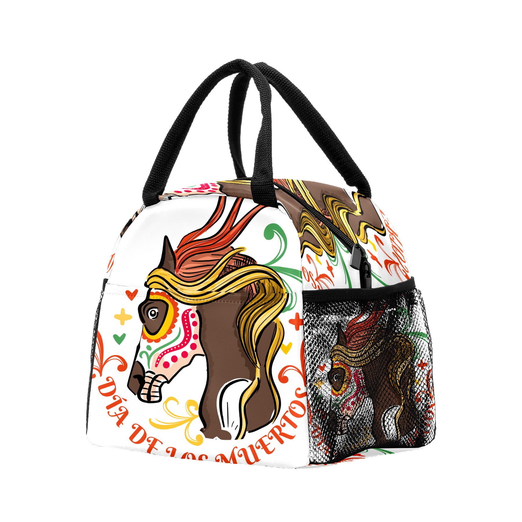 Lunch Bag for Women Men, Dia De Los Muerto Mexico Horse Floral Insulated Reusable Lunch Box Thermal Cooler Tote Bag for Work Picnic Hiking Travel Beach