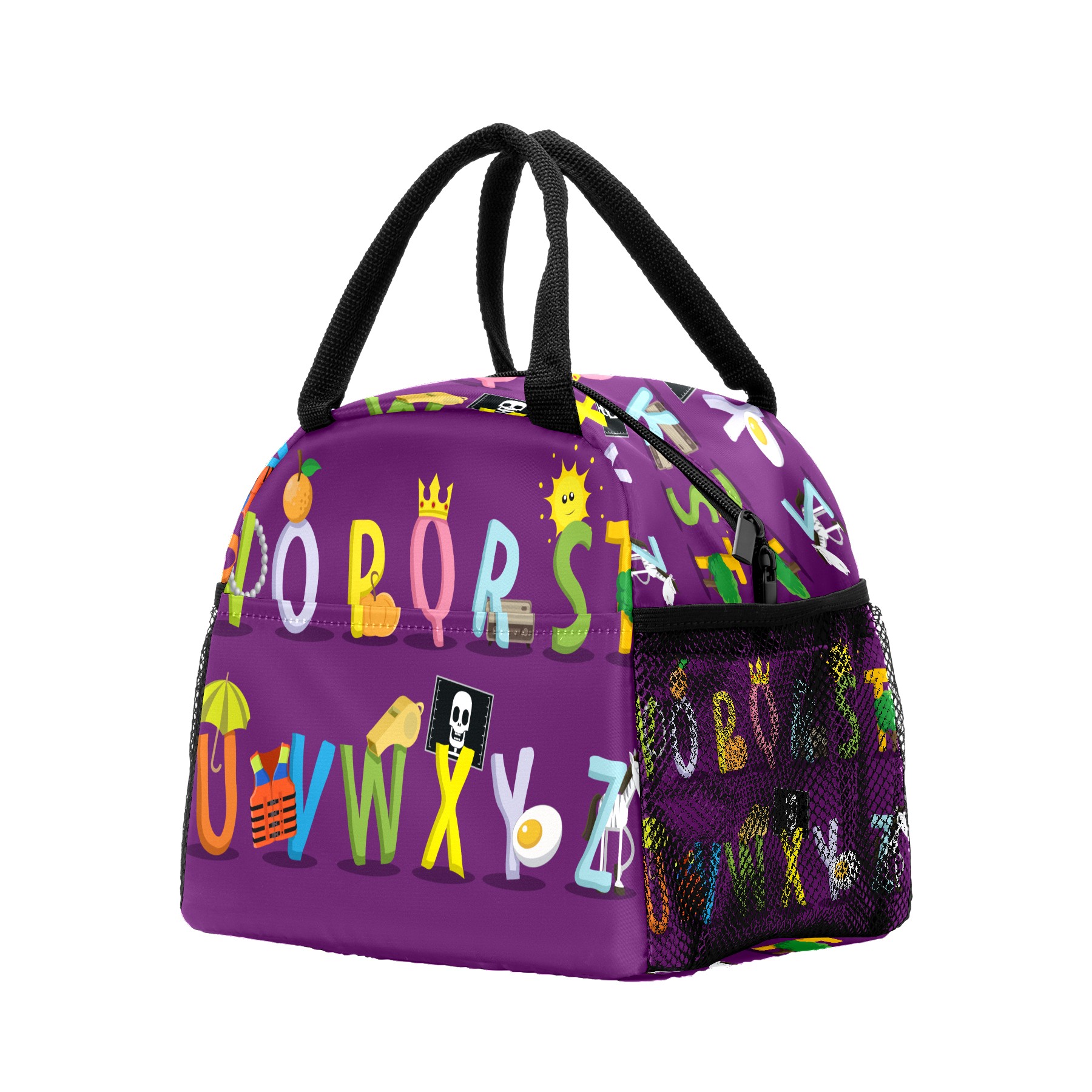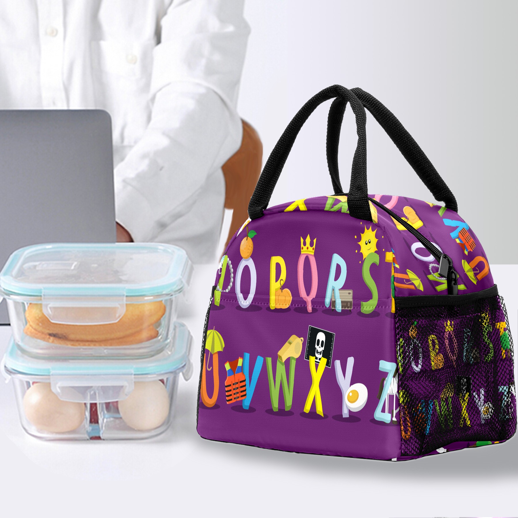 Lunch Bag for Women Men, Educational School Alphabet Insulated Reusable Lunch Box Thermal Cooler Tote Bag for Work Picnic Hiking Travel Beach