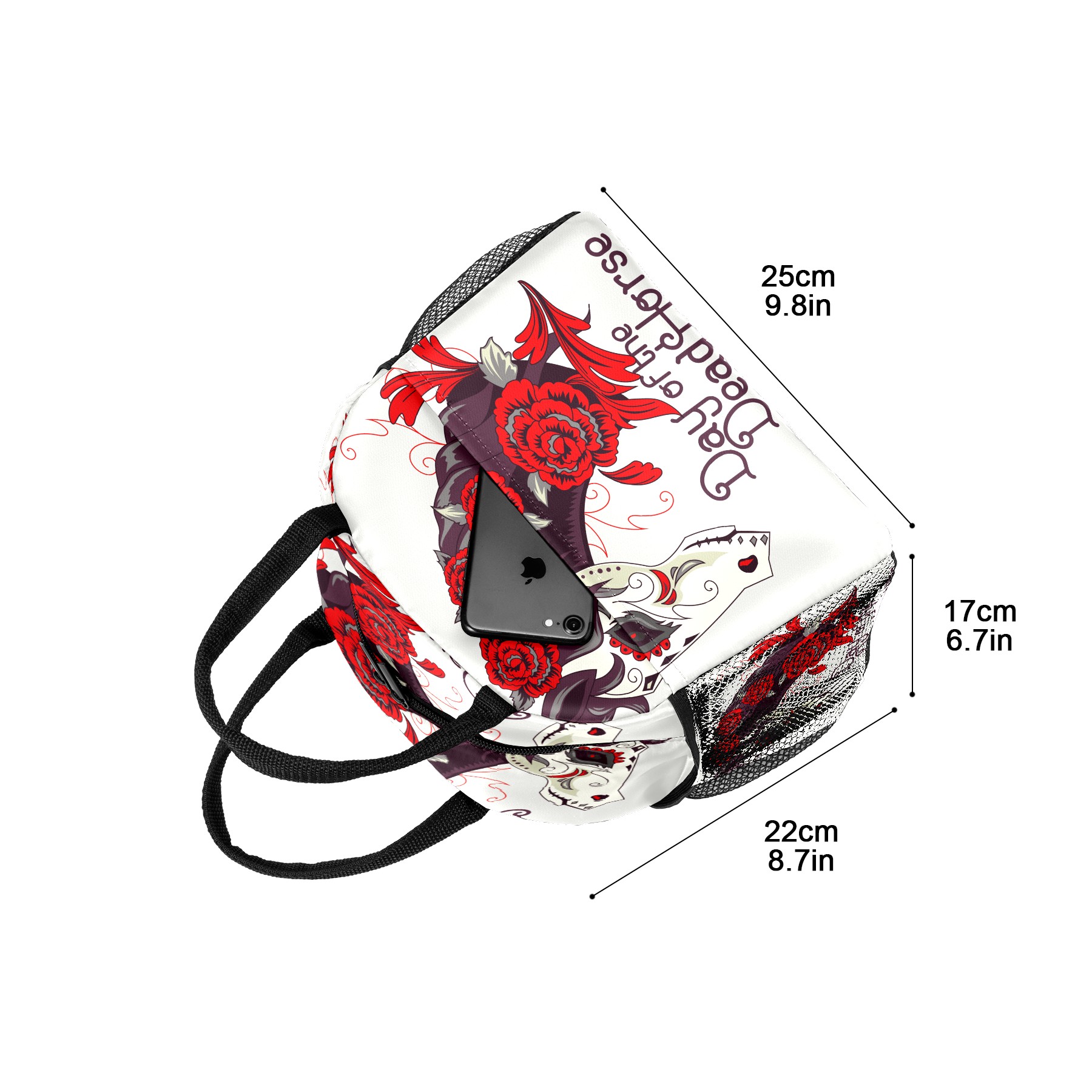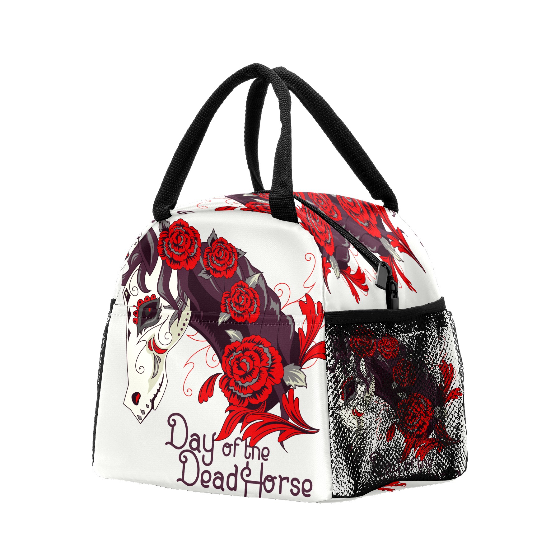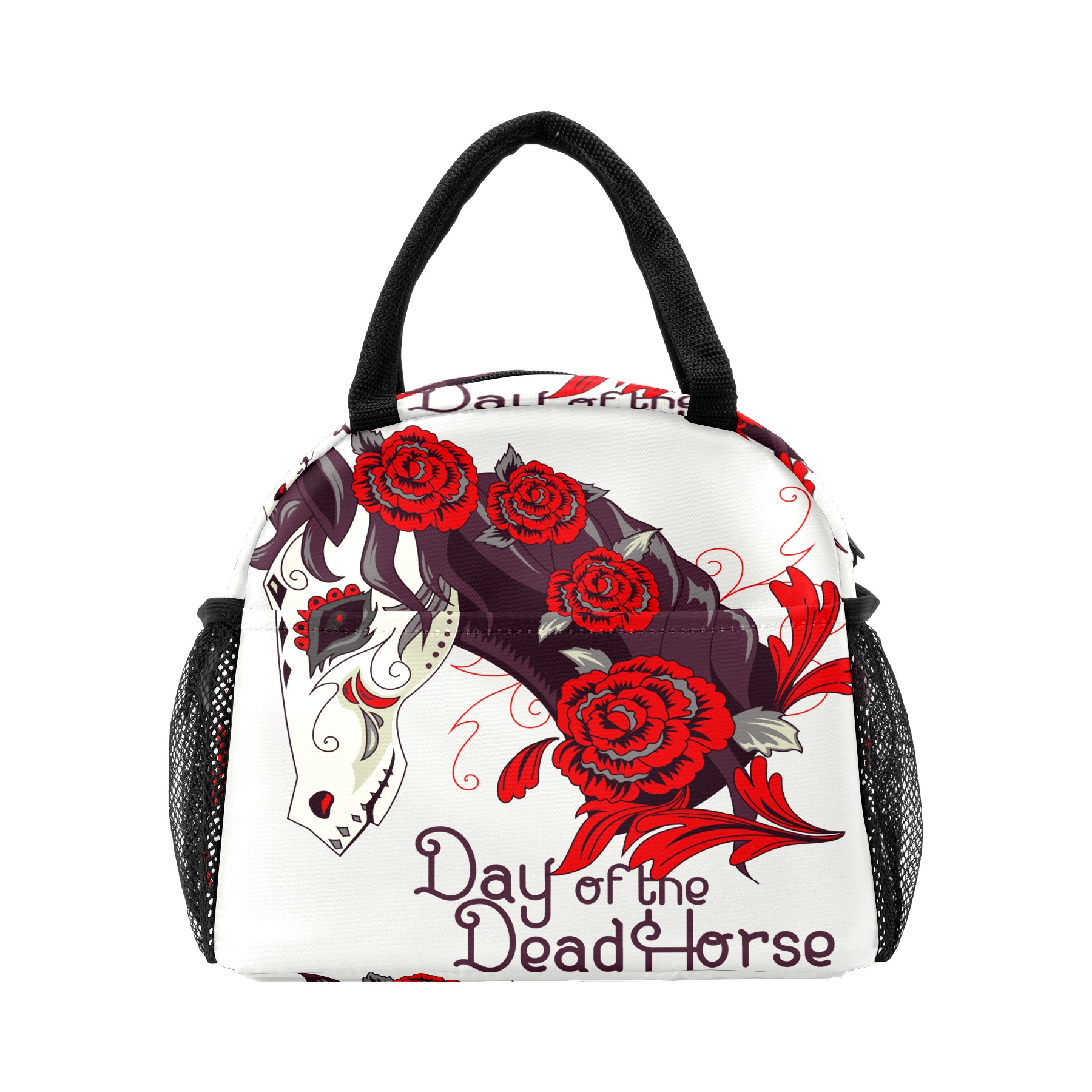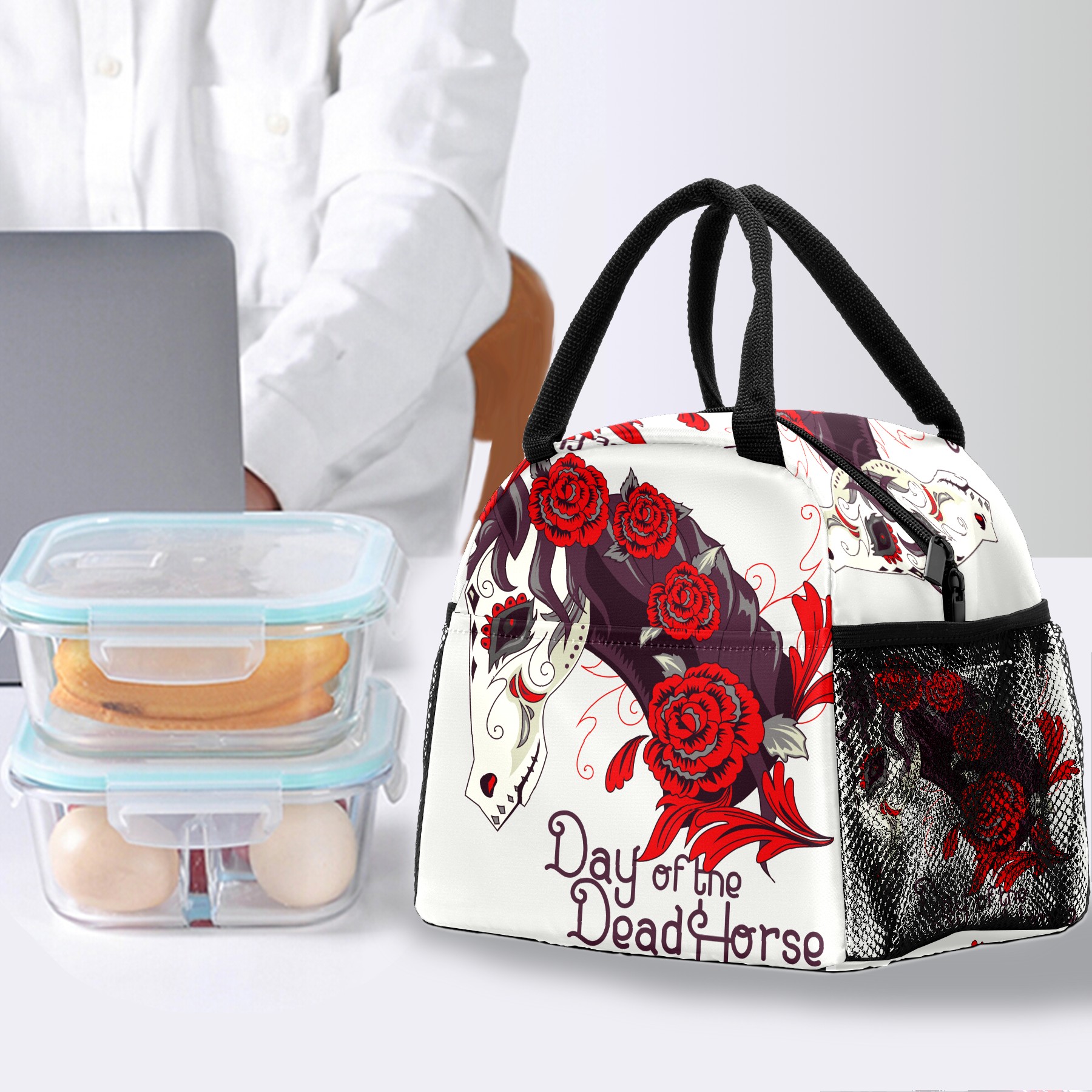 Lunch Bag for Women Men, Day Of The Dead Horse Rose Insulated Reusable Lunch Box Thermal Cooler Tote Bag for Work Picnic Hiking Travel Beach