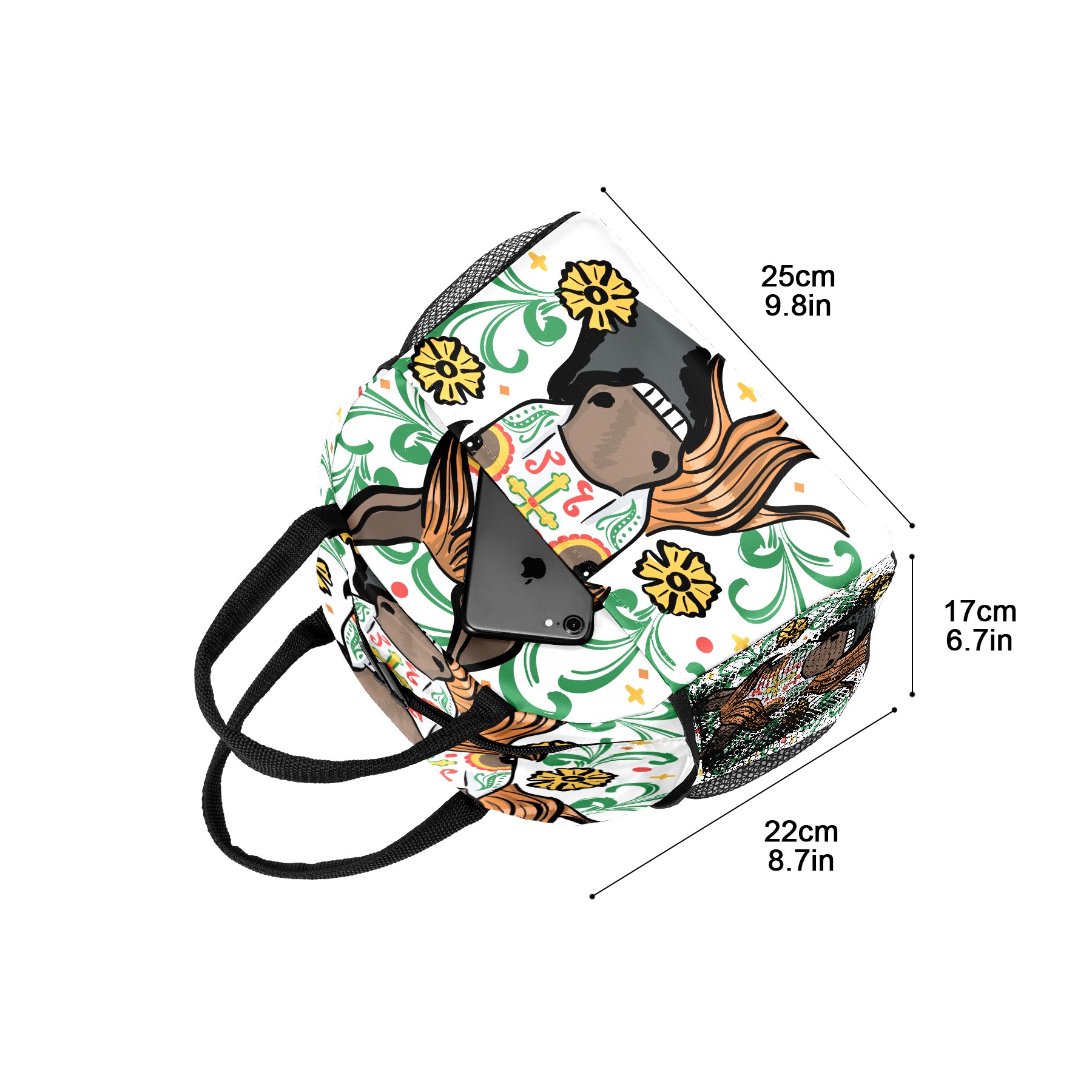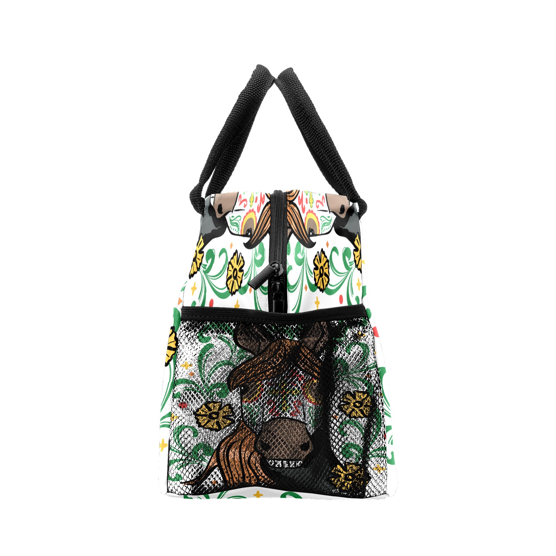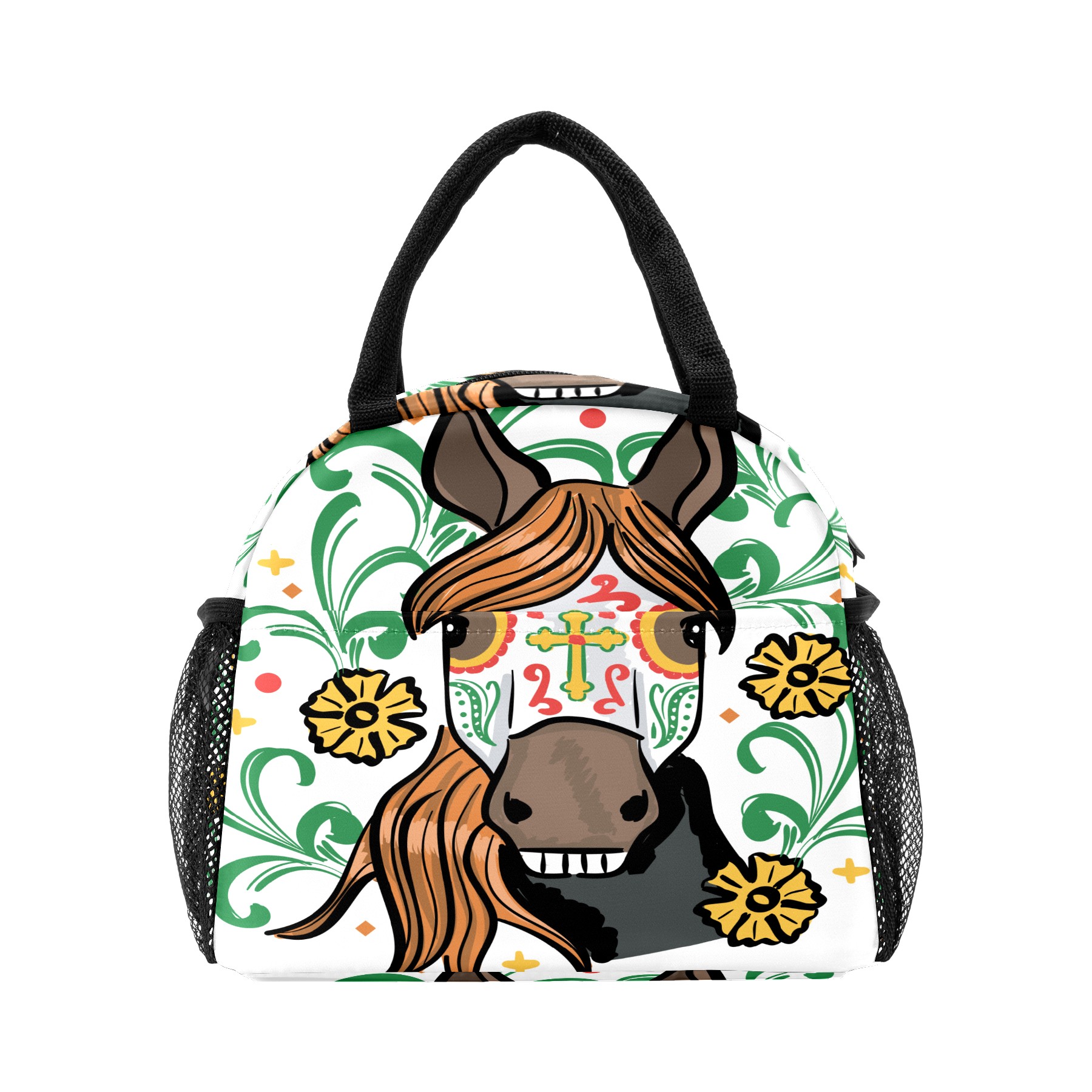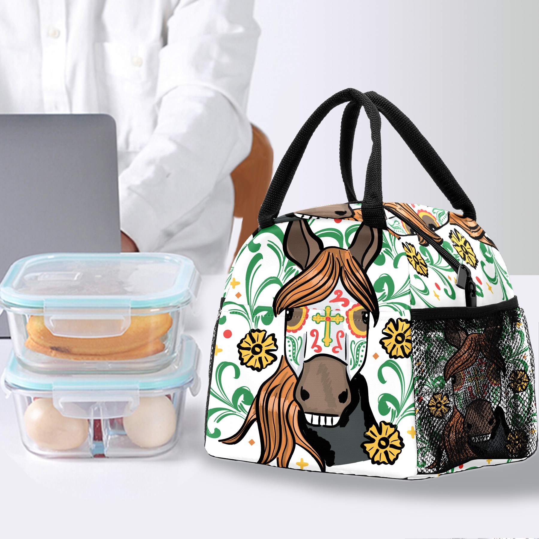 Lunch Bag for Women Men, Day Of The Dead Mexico Horse Flower Insulated Reusable Lunch Box Thermal Cooler Tote Bag for Work Picnic Hiking Travel Beach