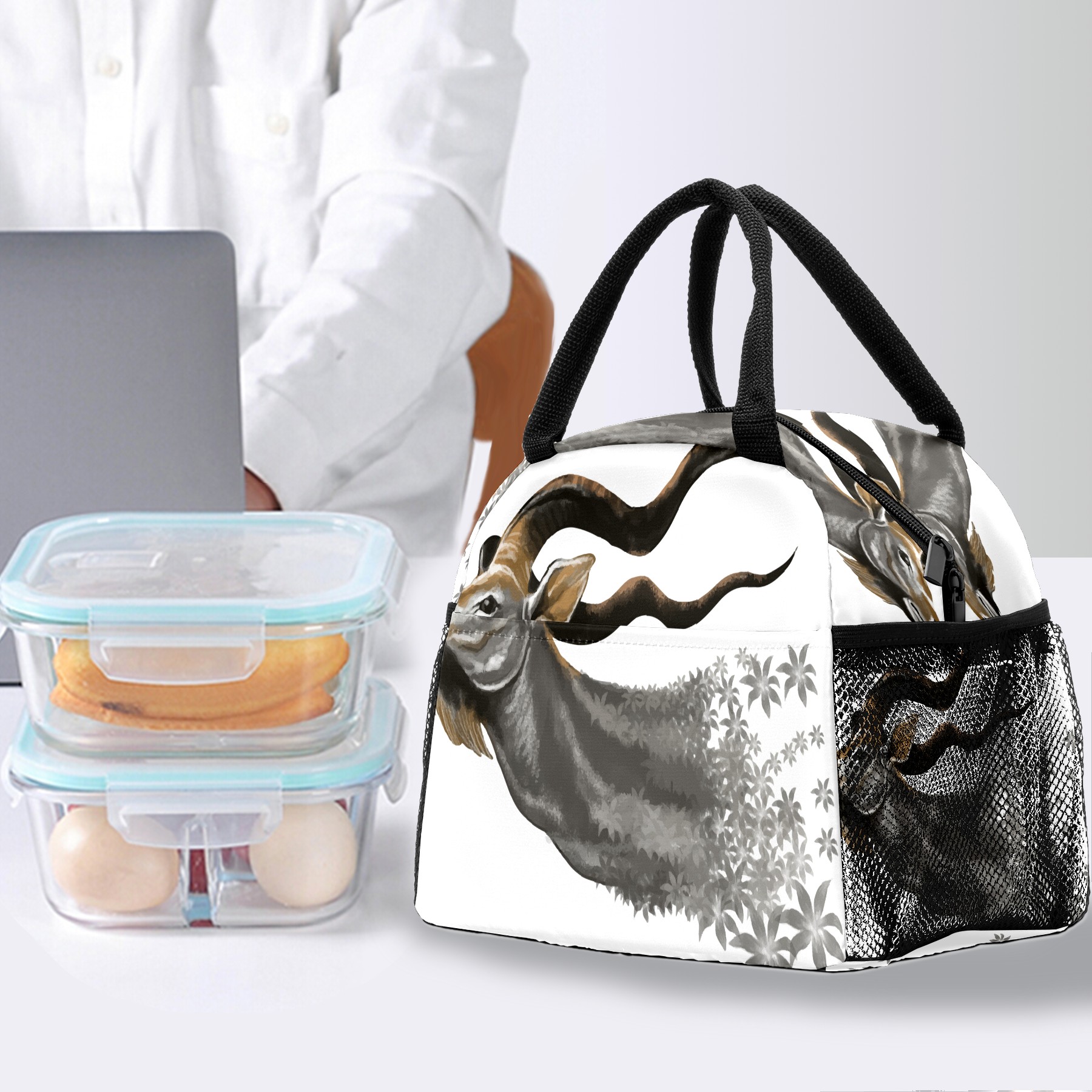 Lunch Bag for Women Men, Deer Head Insulated Reusable Lunch Box Thermal Cooler Tote Bag for Work Picnic Hiking Travel Beach
