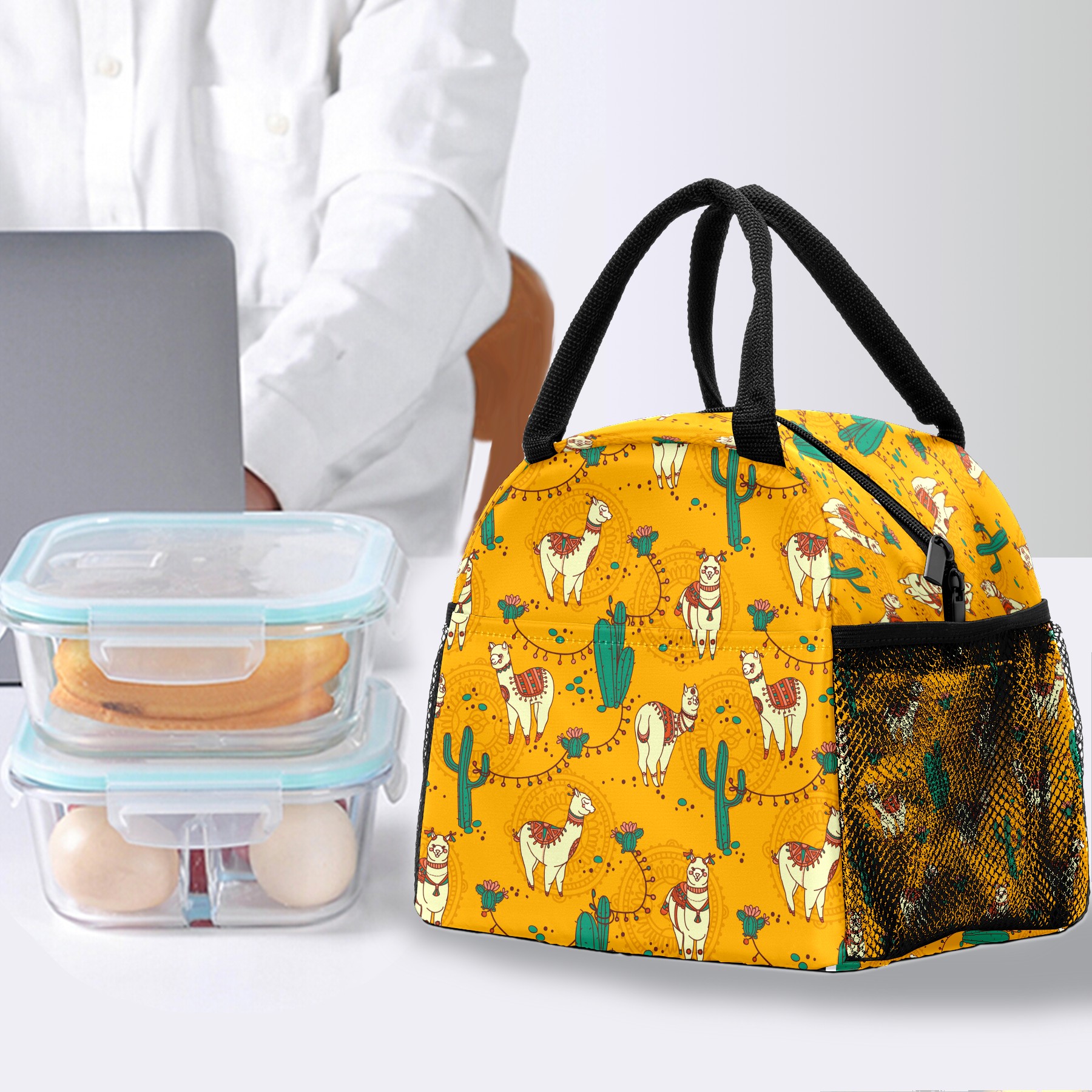 Lunch Bag for Women Men, Cute Llama Alpaca Cactus Insulated Reusable Lunch Box Thermal Cooler Tote Bag for Work Picnic Hiking Travel Beach