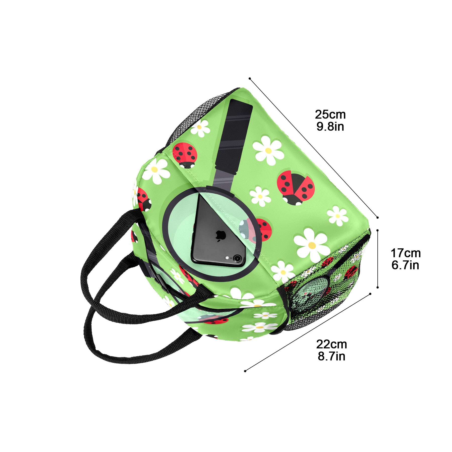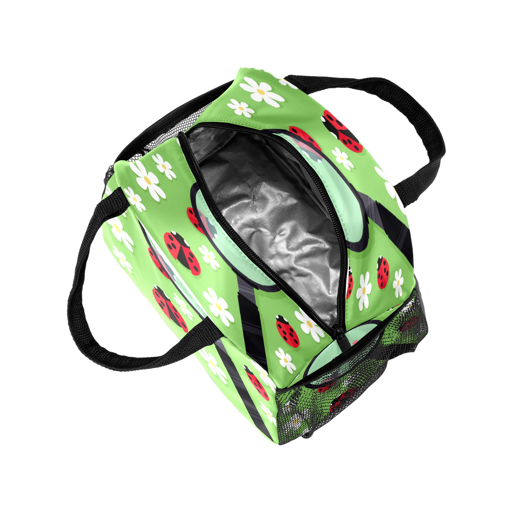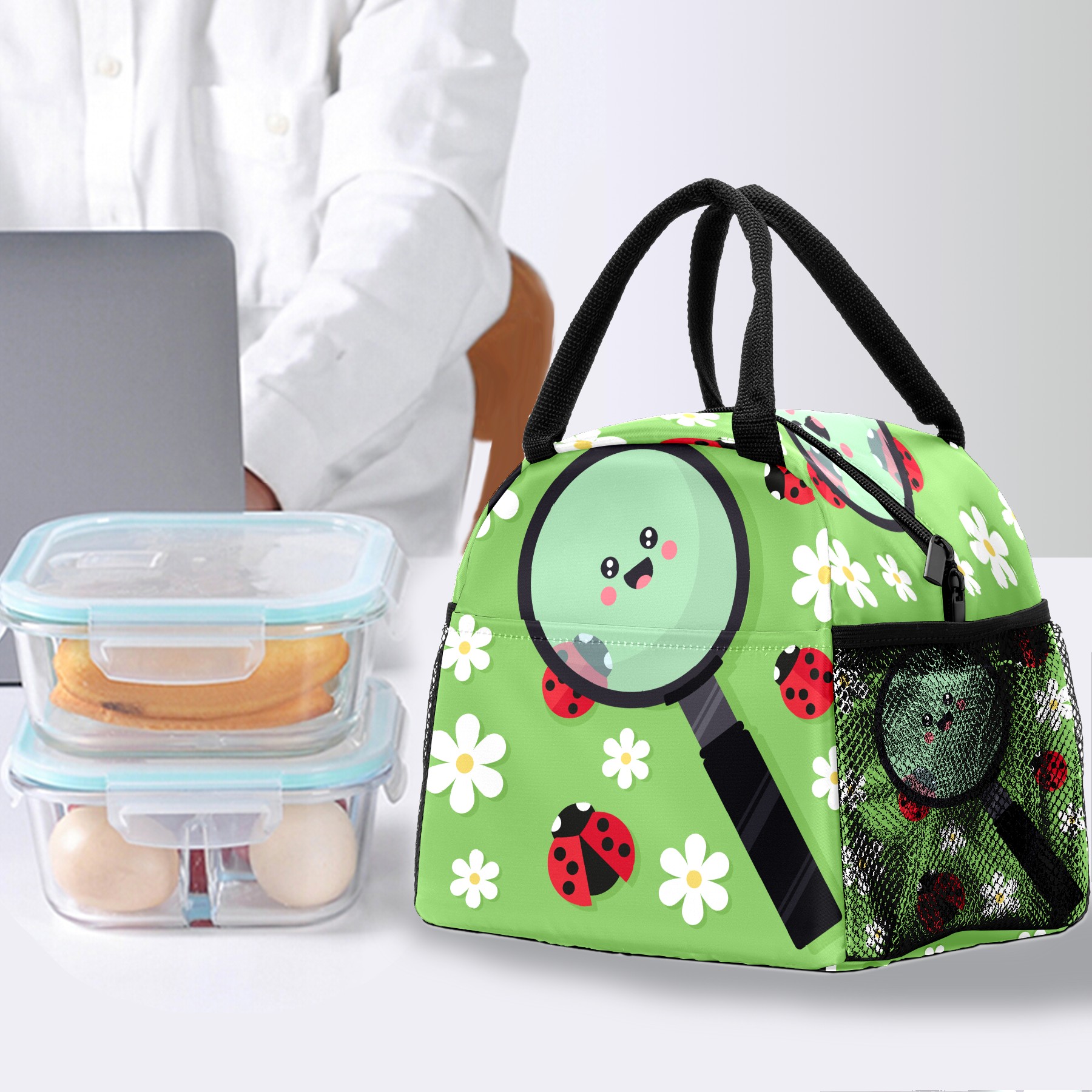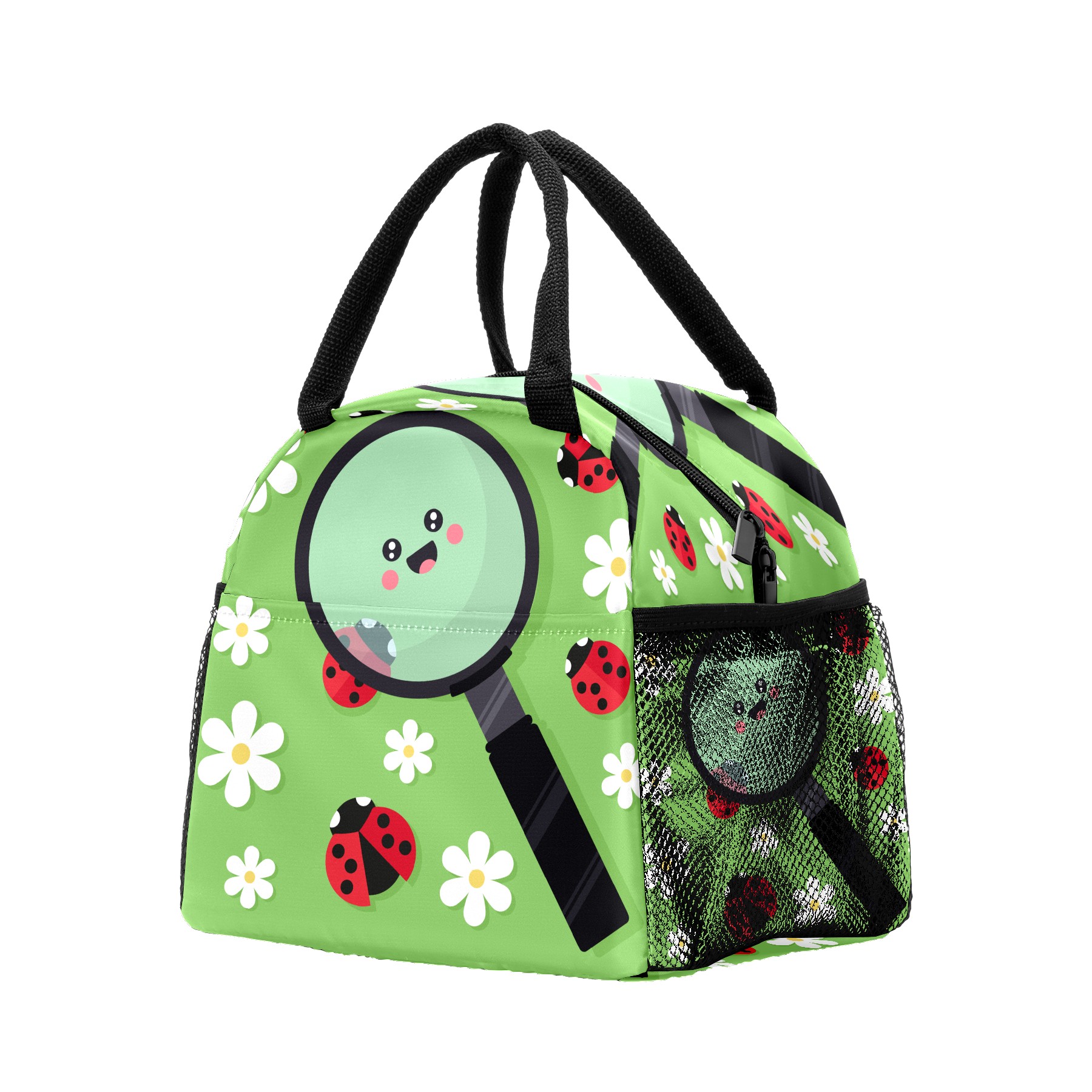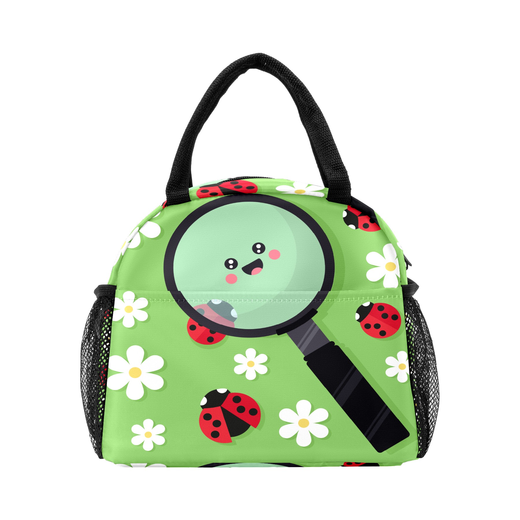 Lunch Bag for Women Men, Cute Ladybird Ladybugs Floral Magnifier Insulated Reusable Lunch Box Thermal Cooler Tote Bag for Work Picnic Hiking Travel Beach