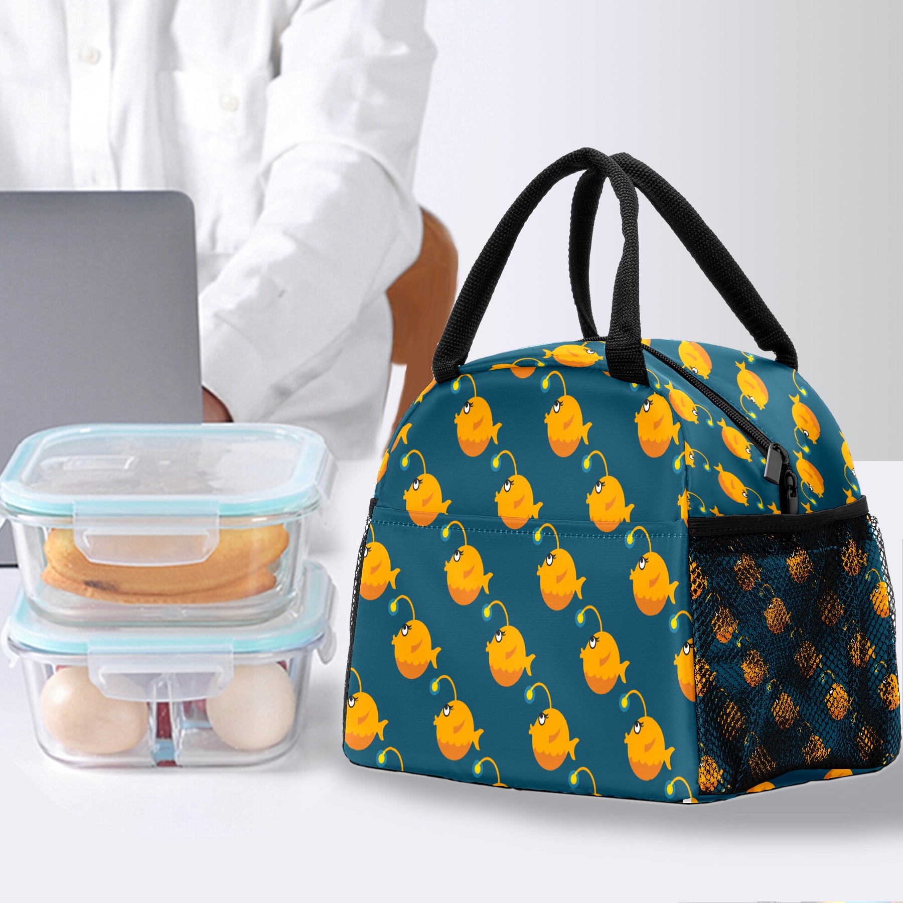 Lunch Bag for Women Men, Cute Cartoon Fish Pattern Insulated Reusable Lunch Box Thermal Cooler Tote Bag for Work Picnic Hiking Travel Beach