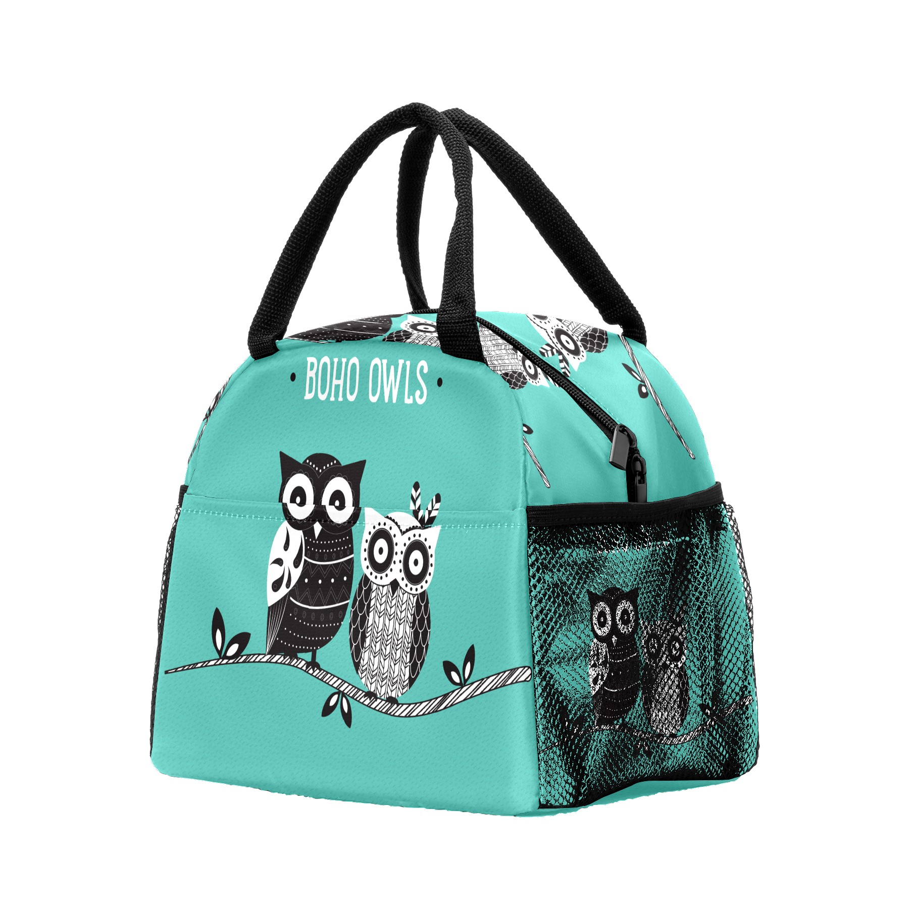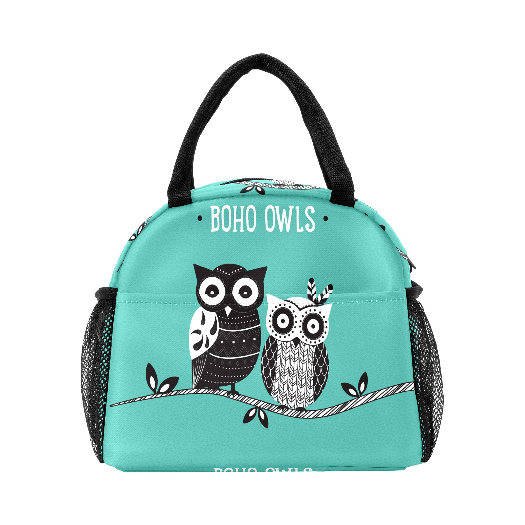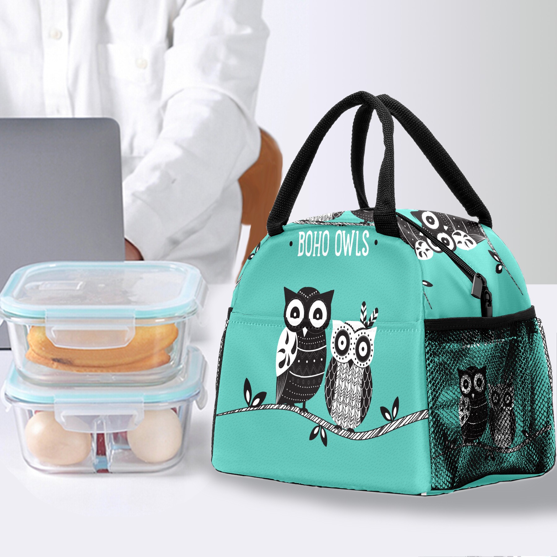 Lunch Bag for Women Men, Cute Boho Animal Owls Insulated Reusable Lunch Box Thermal Cooler Tote Bag for Work Picnic Hiking Travel Beach
