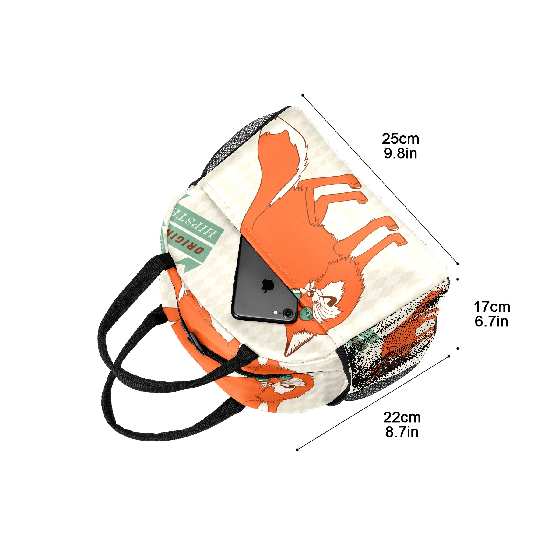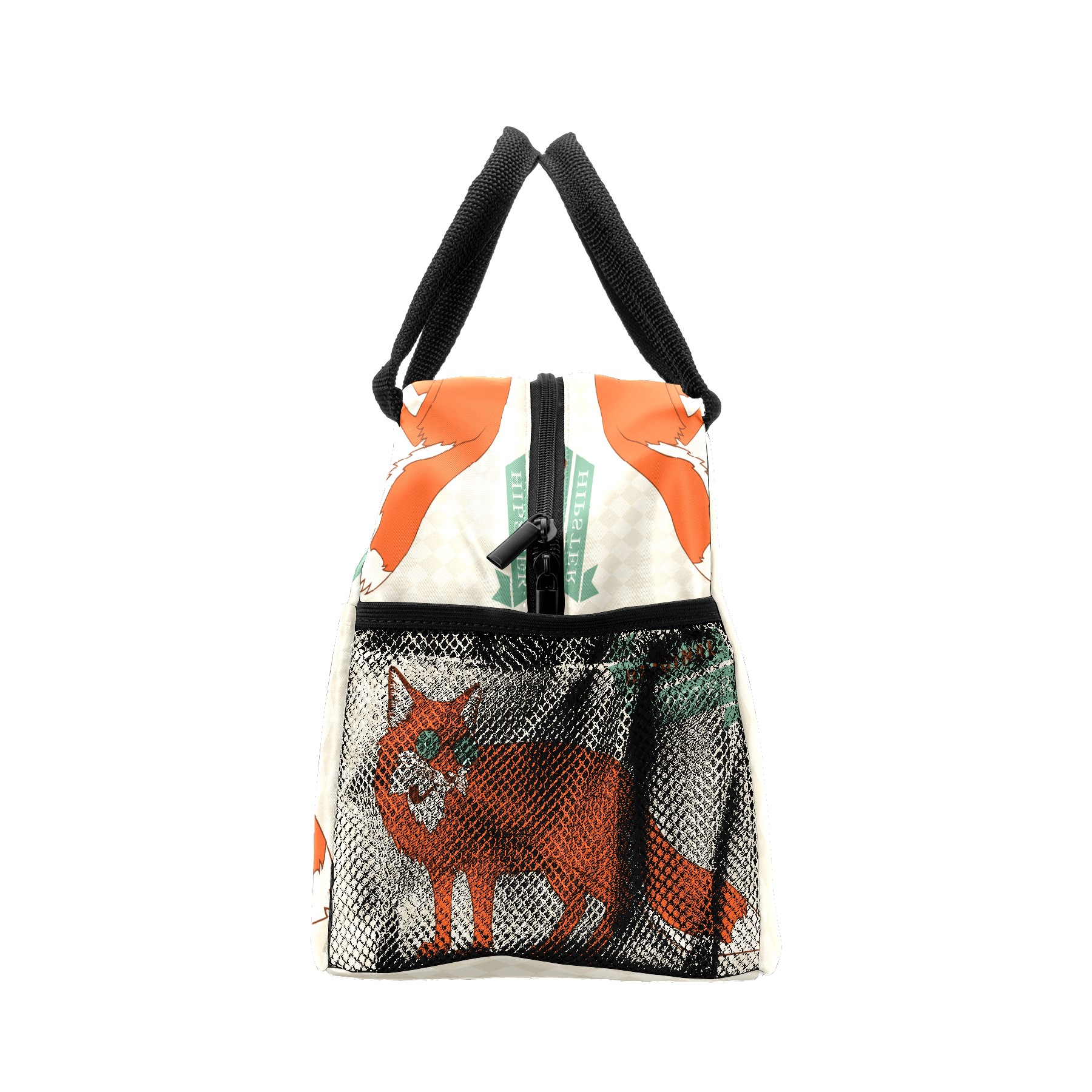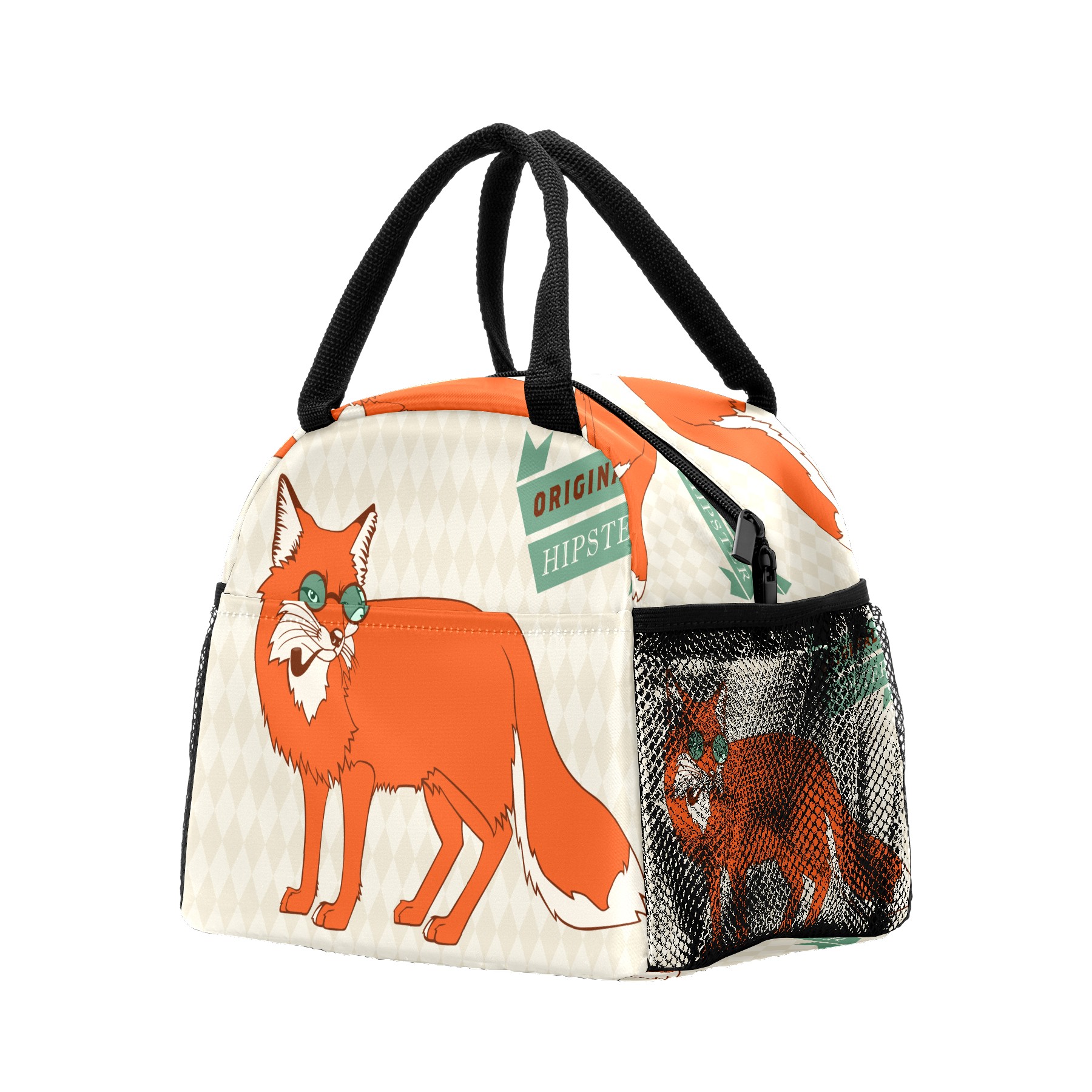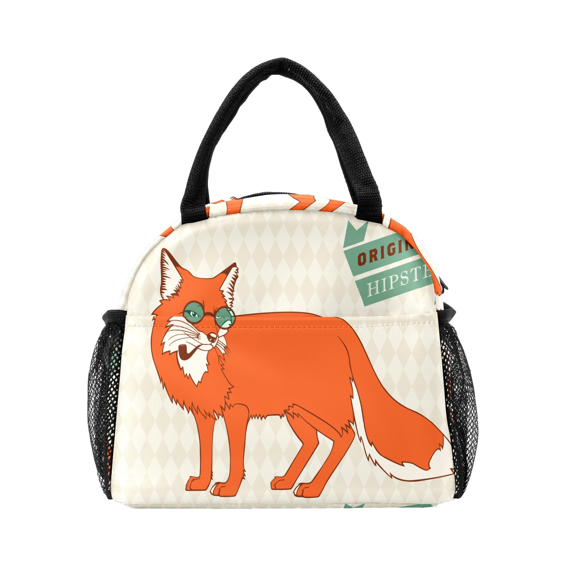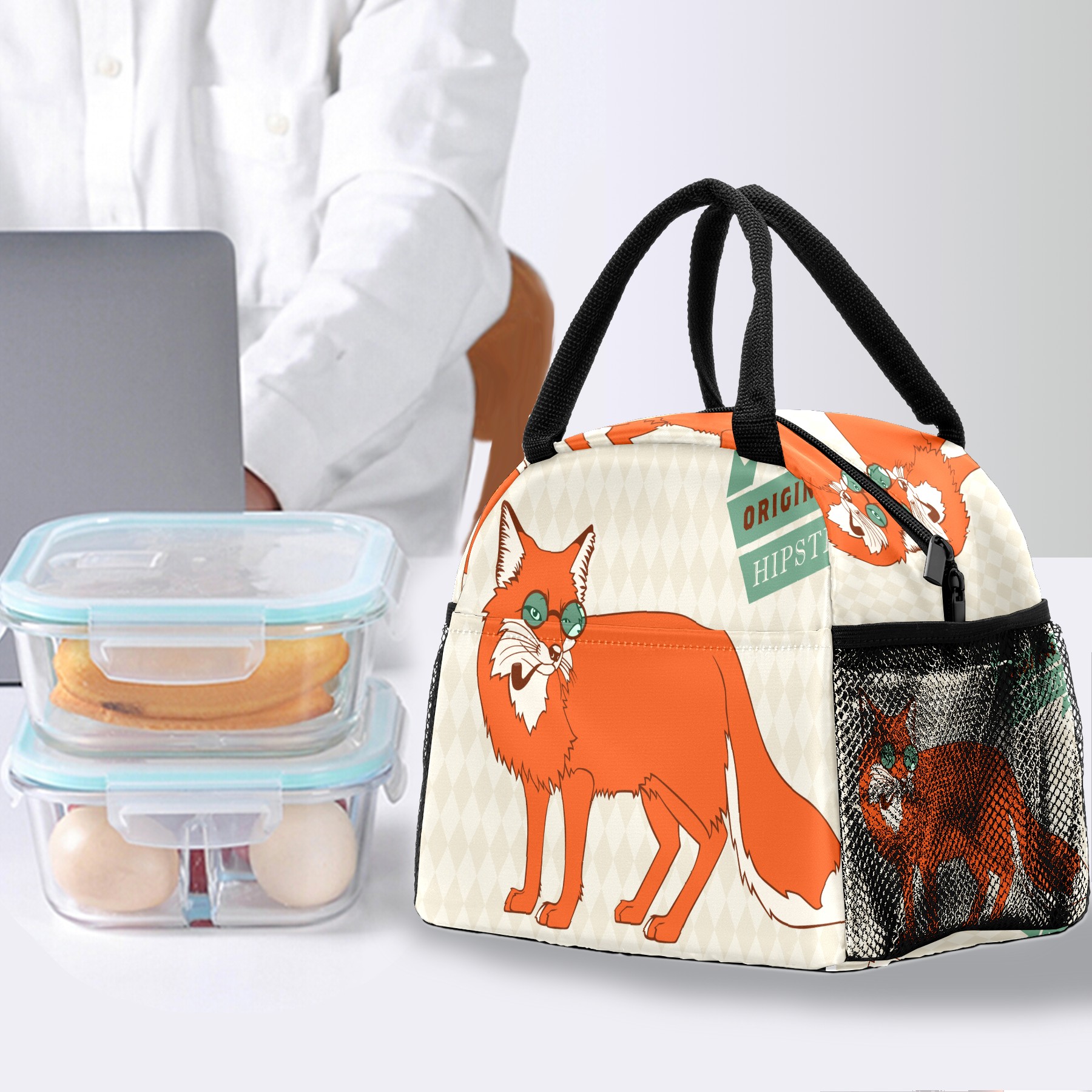 Lunch Bag for Women Men, Cute Animal Fox Hipster Insulated Reusable Lunch Box Thermal Cooler Tote Bag for Work Picnic Hiking Travel Beach