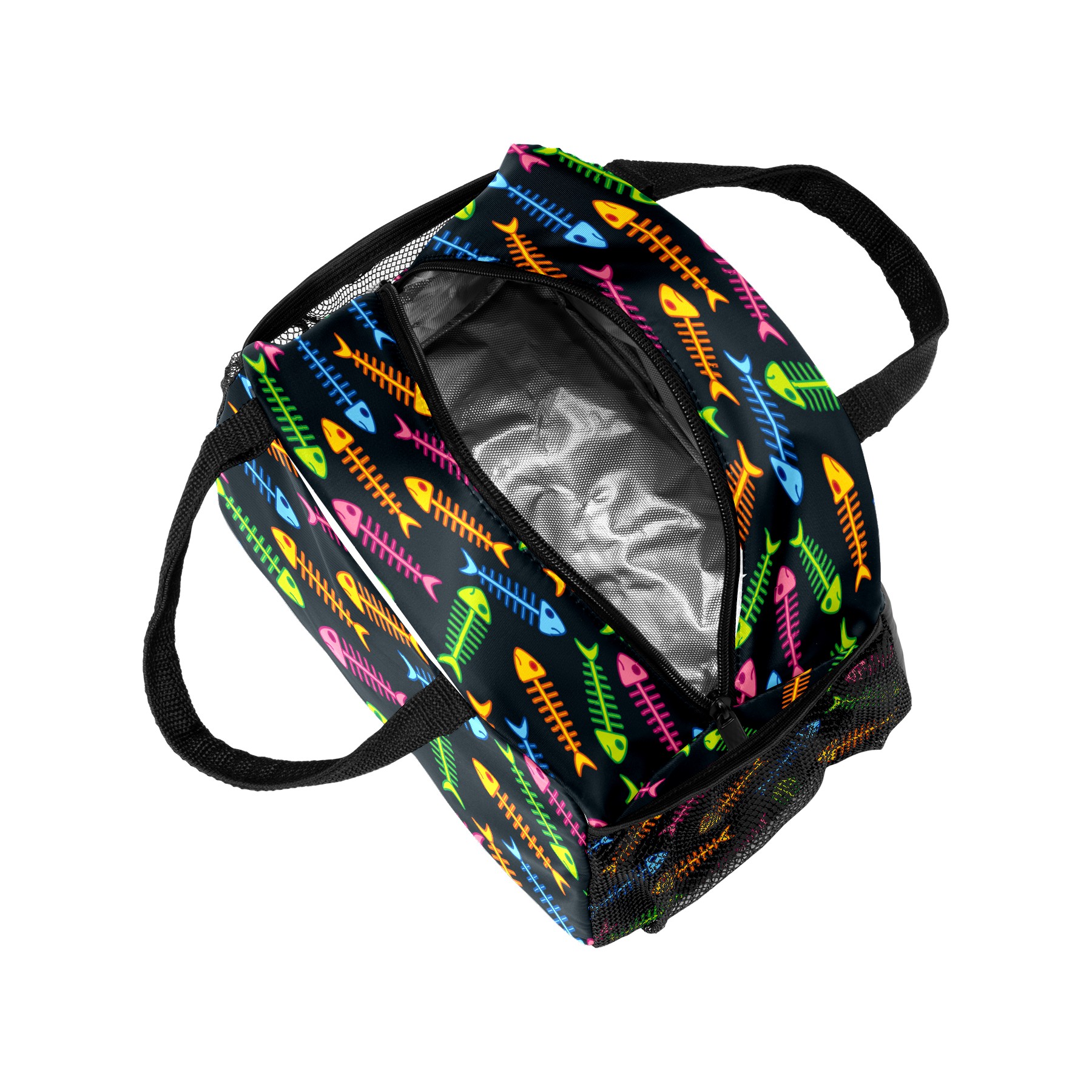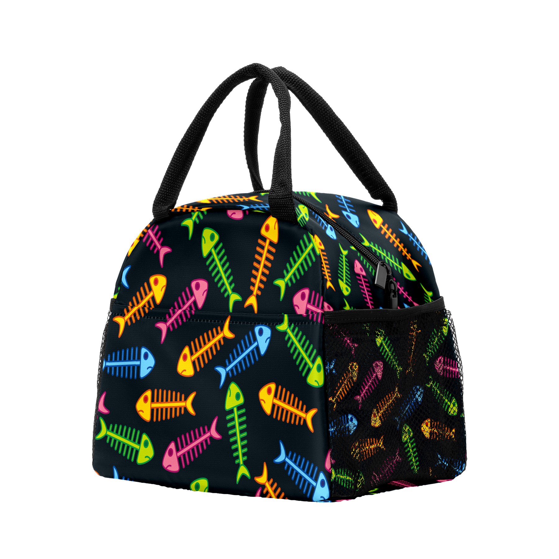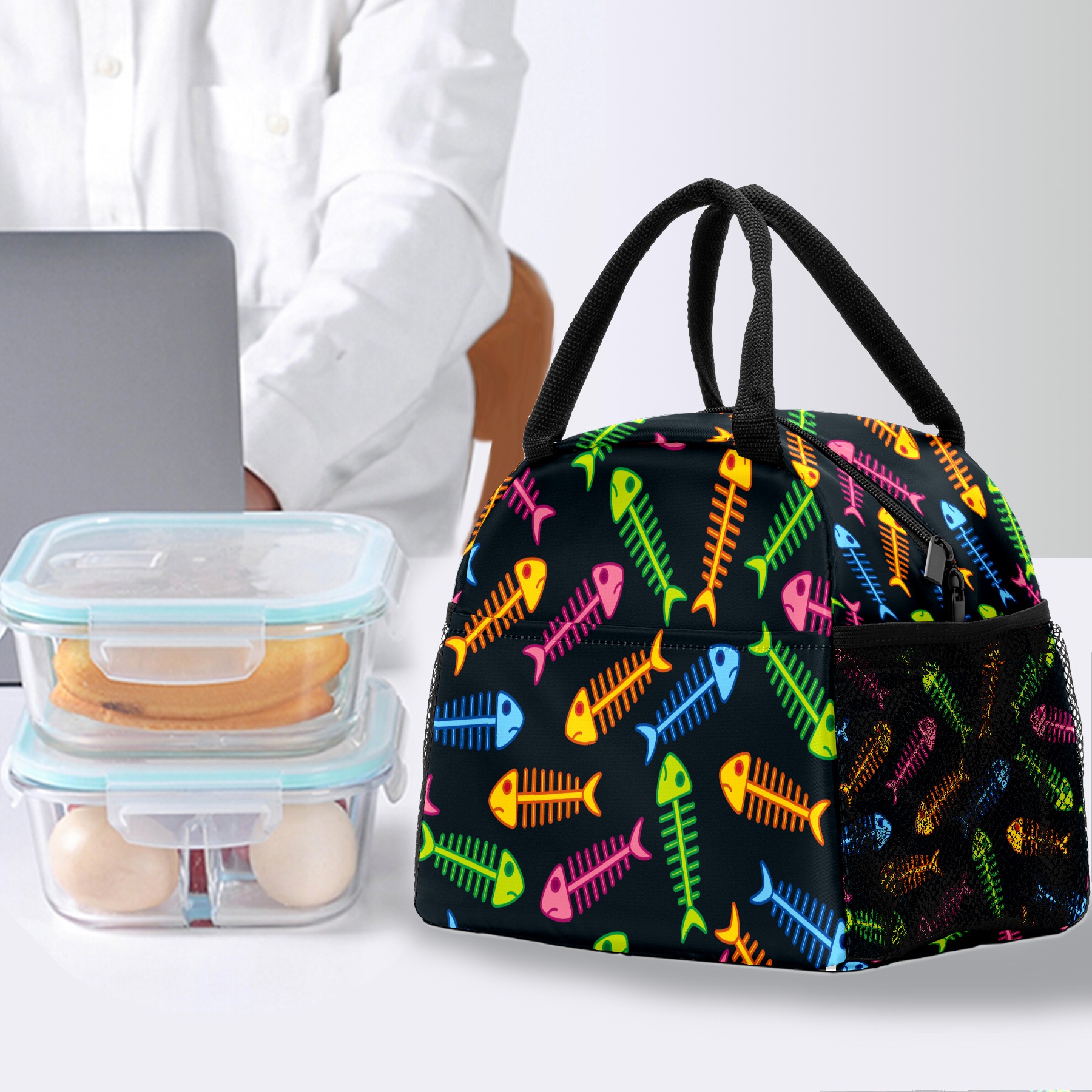 Lunch Bag for Women Men, Colorful Fish Bone Pattern Insulated Reusable Lunch Box Thermal Cooler Tote Bag for Work Picnic Hiking Travel Beach