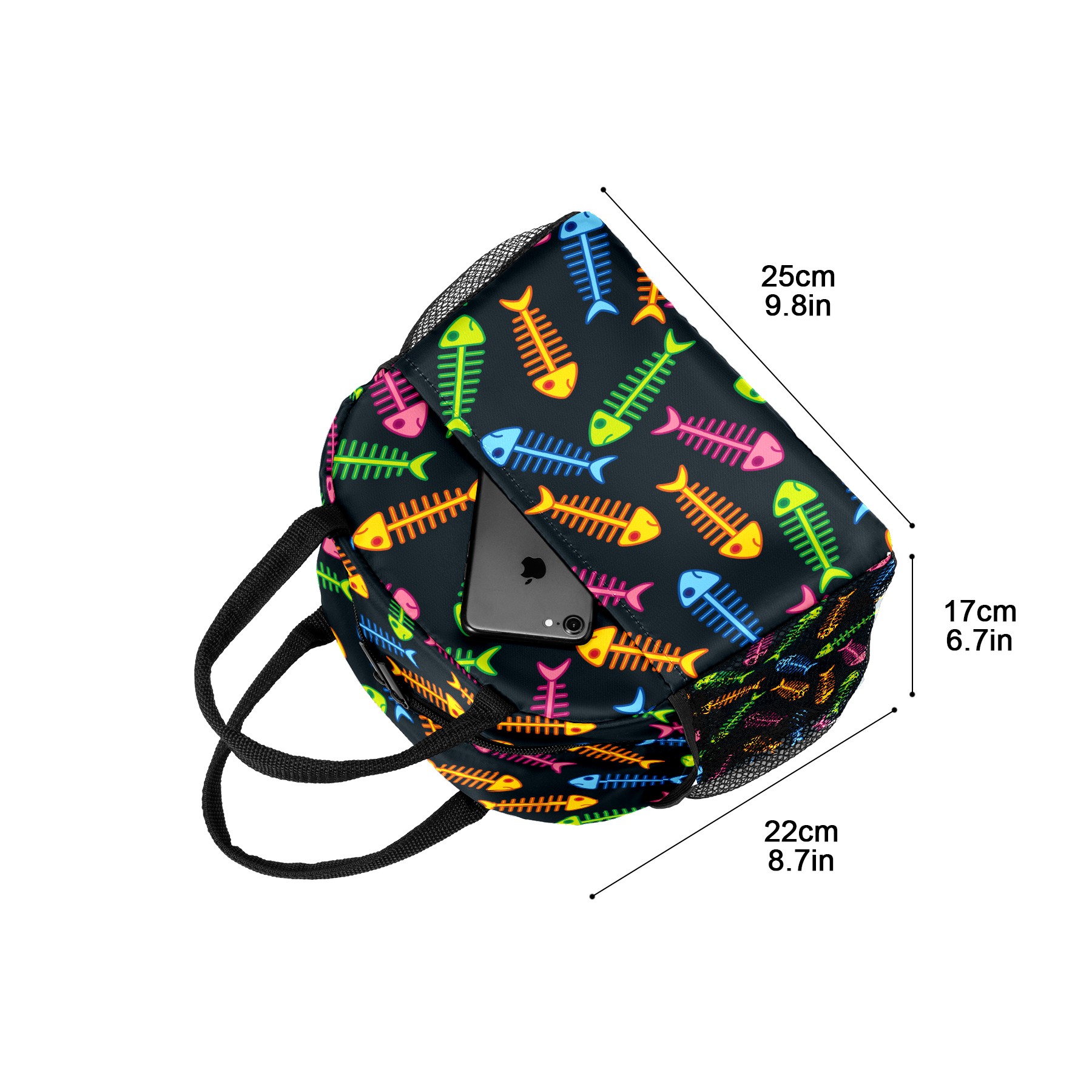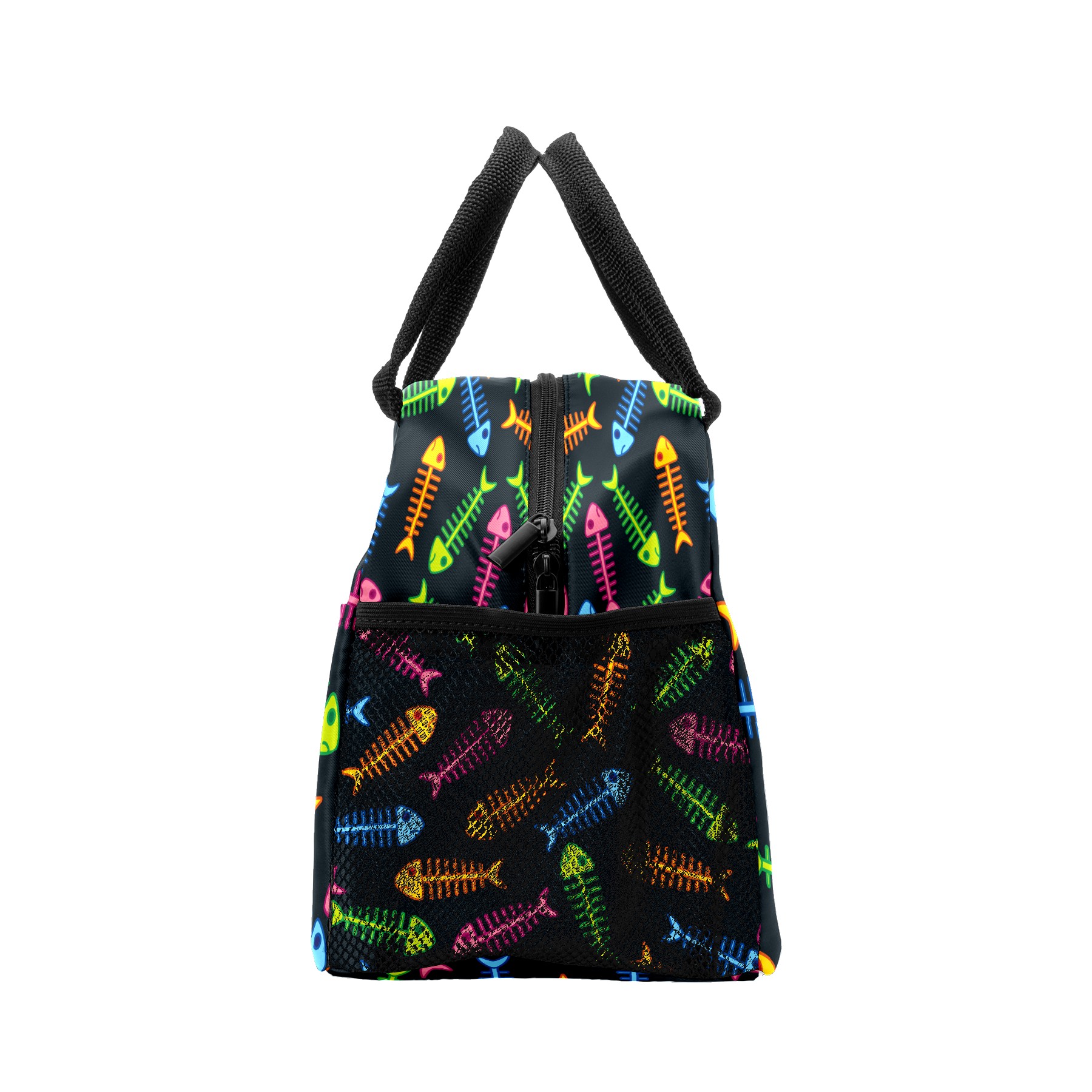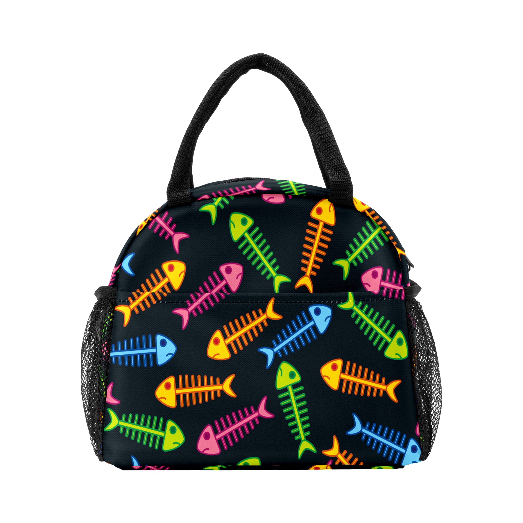 Lunch Bag for Women Men, Colorful Fish Bone Pattern Insulated Reusable Lunch Box Thermal Cooler Tote Bag for Work Picnic Hiking Travel Beach