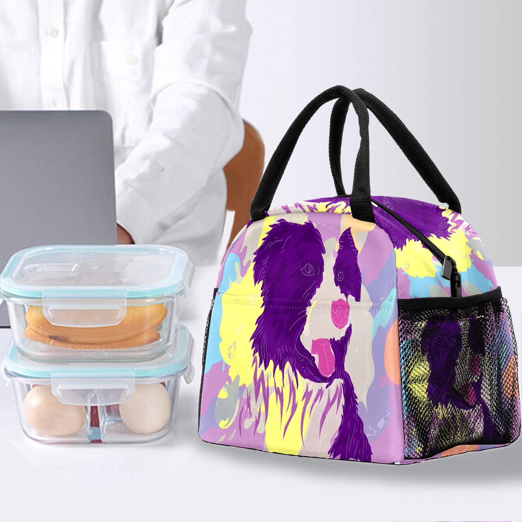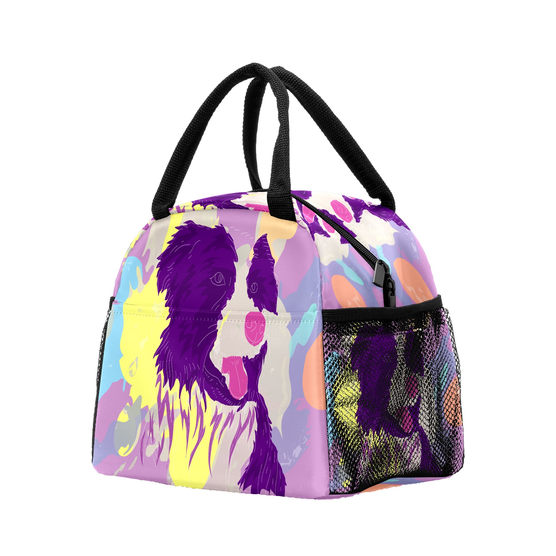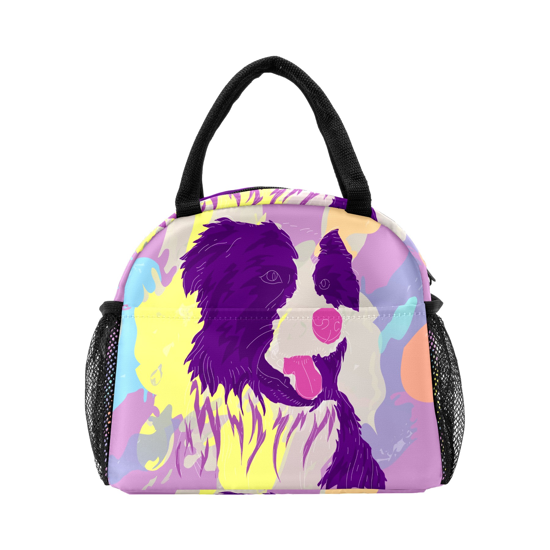 Lunch Bag for Women Men, Colorful Border Collie Dog Insulated Reusable Lunch Box Thermal Cooler Tote Bag for Work Picnic Hiking Travel Beach