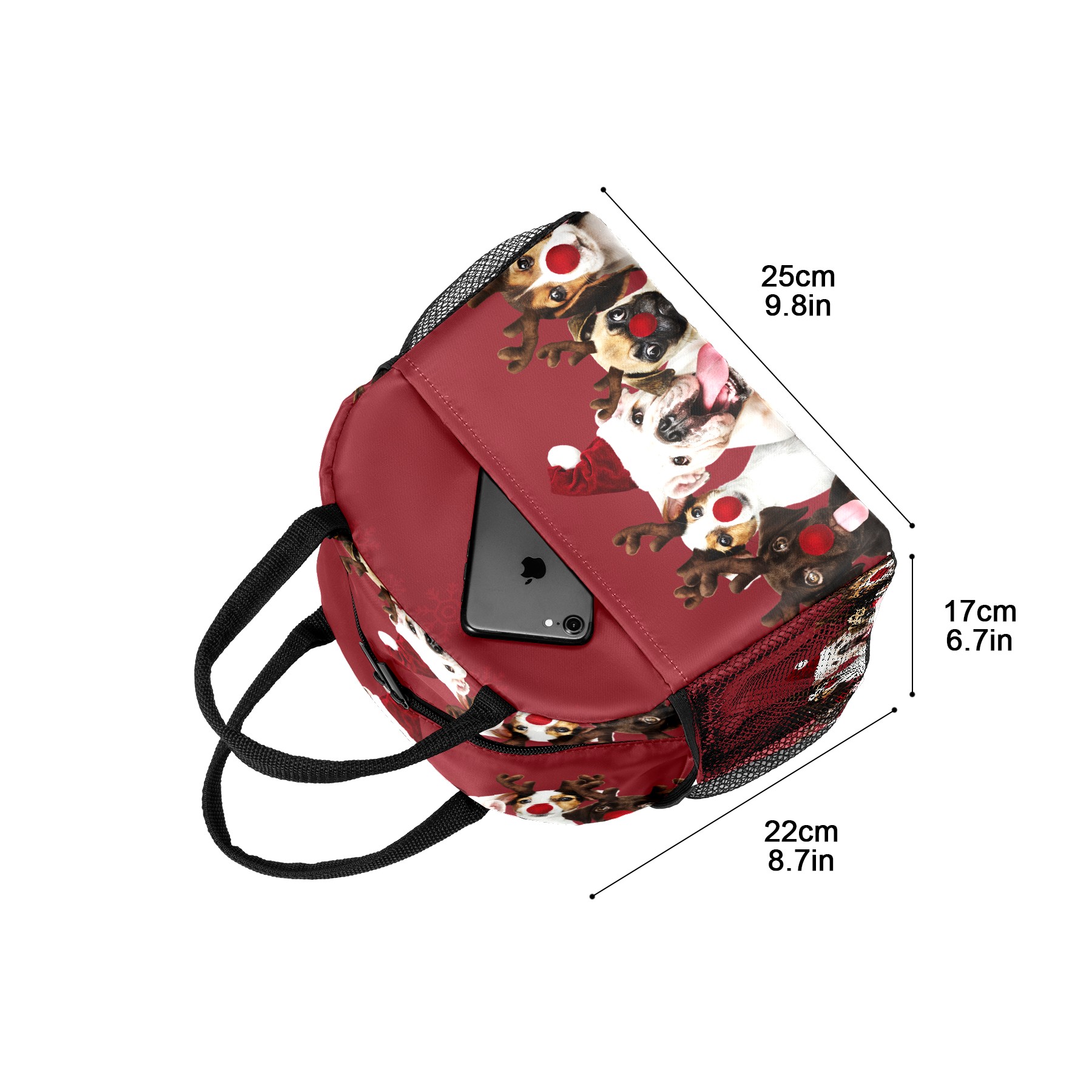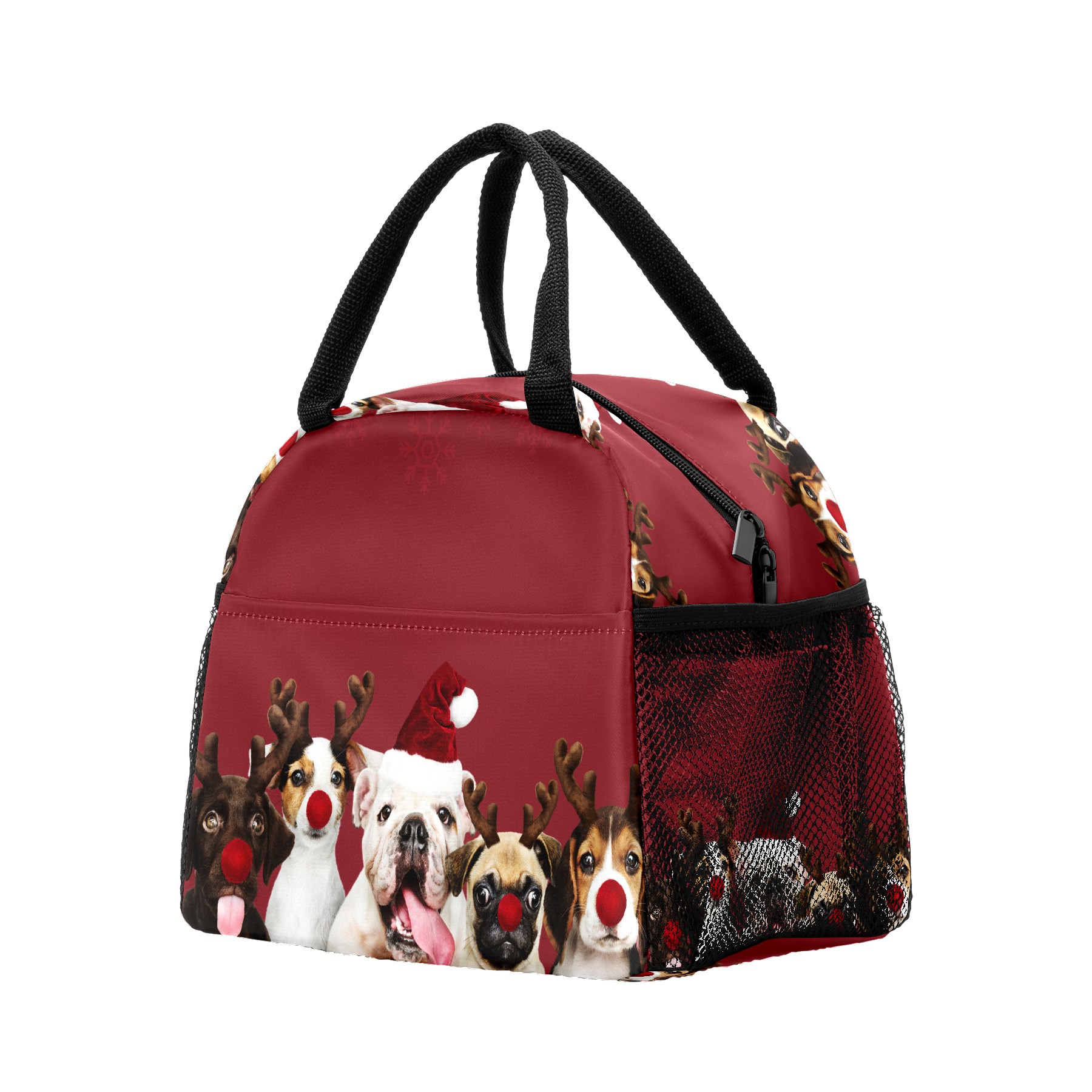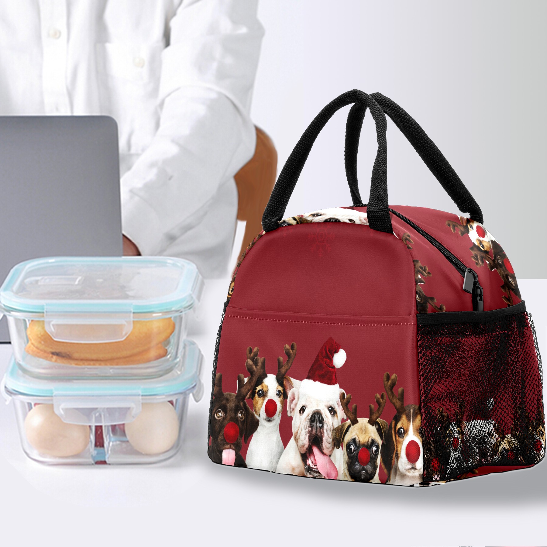 Lunch Bag for Women Men, Christmas Pug Dog Pet Antler Insulated Reusable Lunch Box Thermal Cooler Tote Bag for Work Picnic Hiking Travel Beach