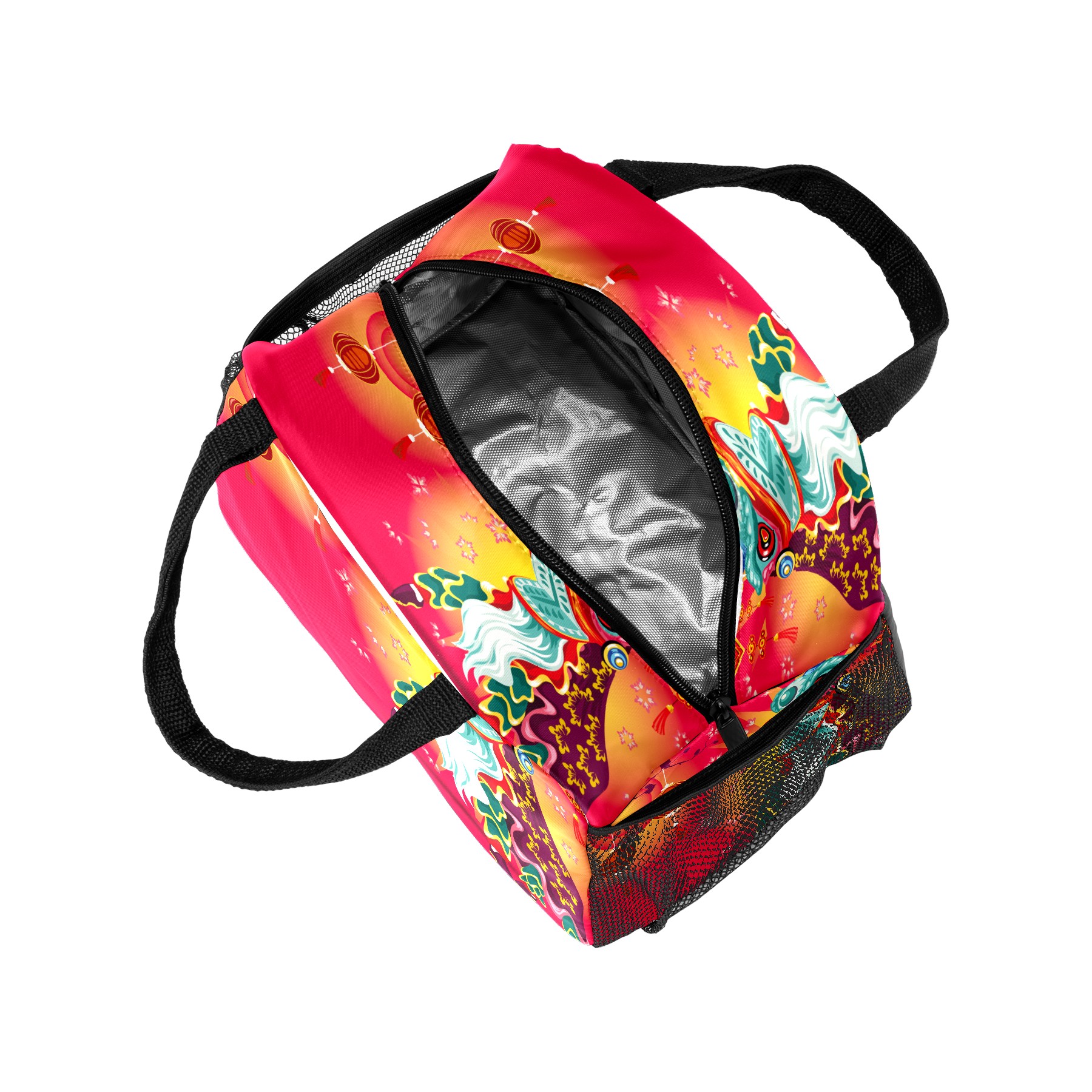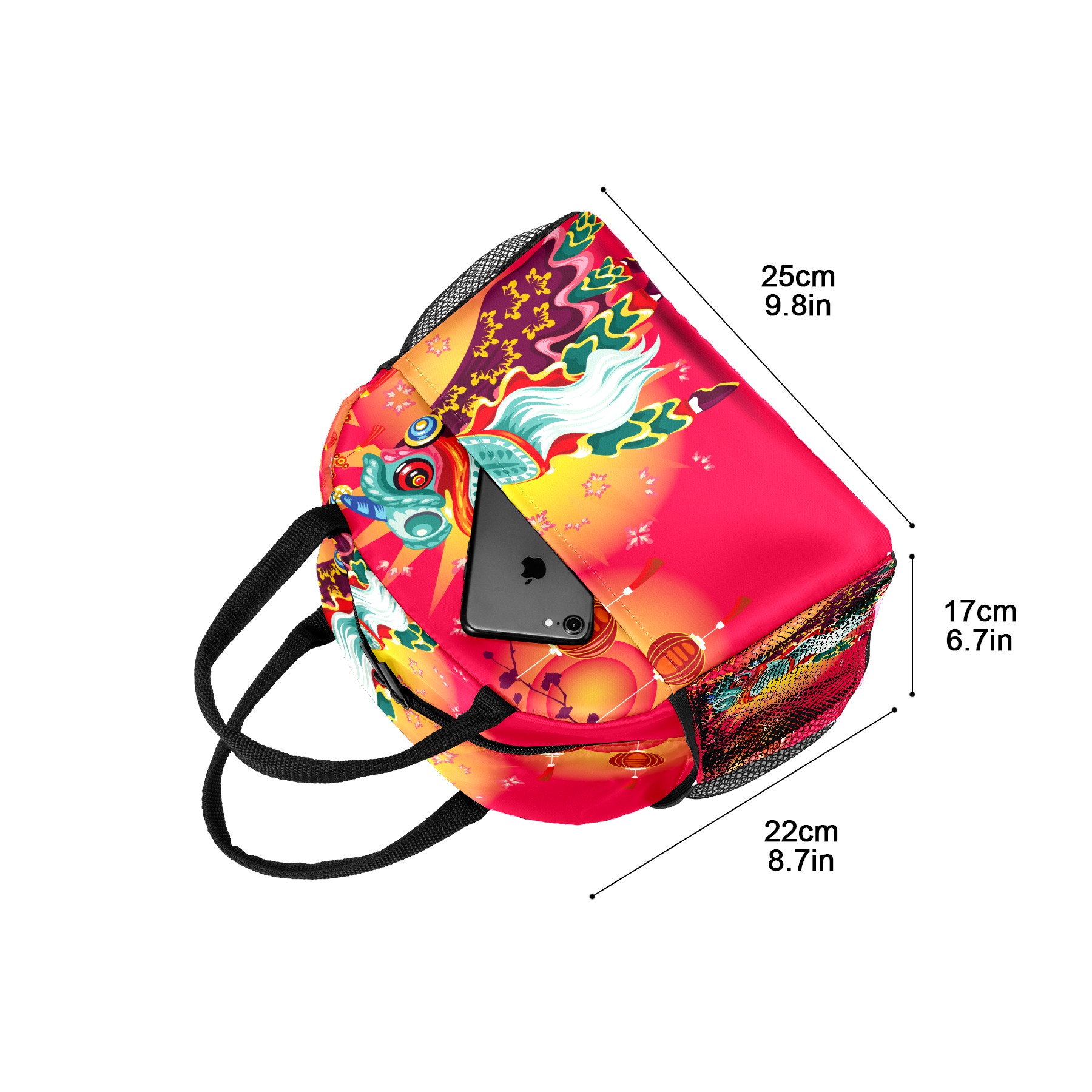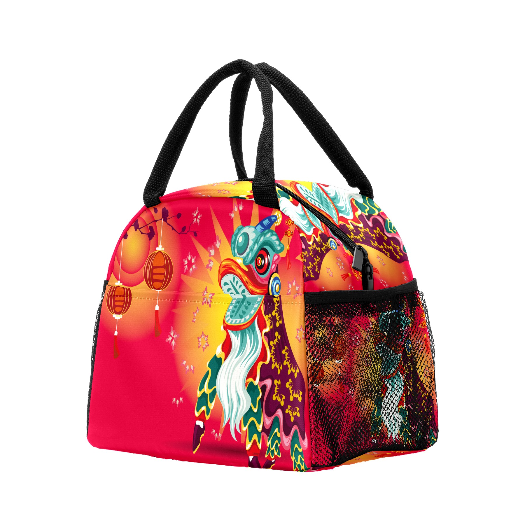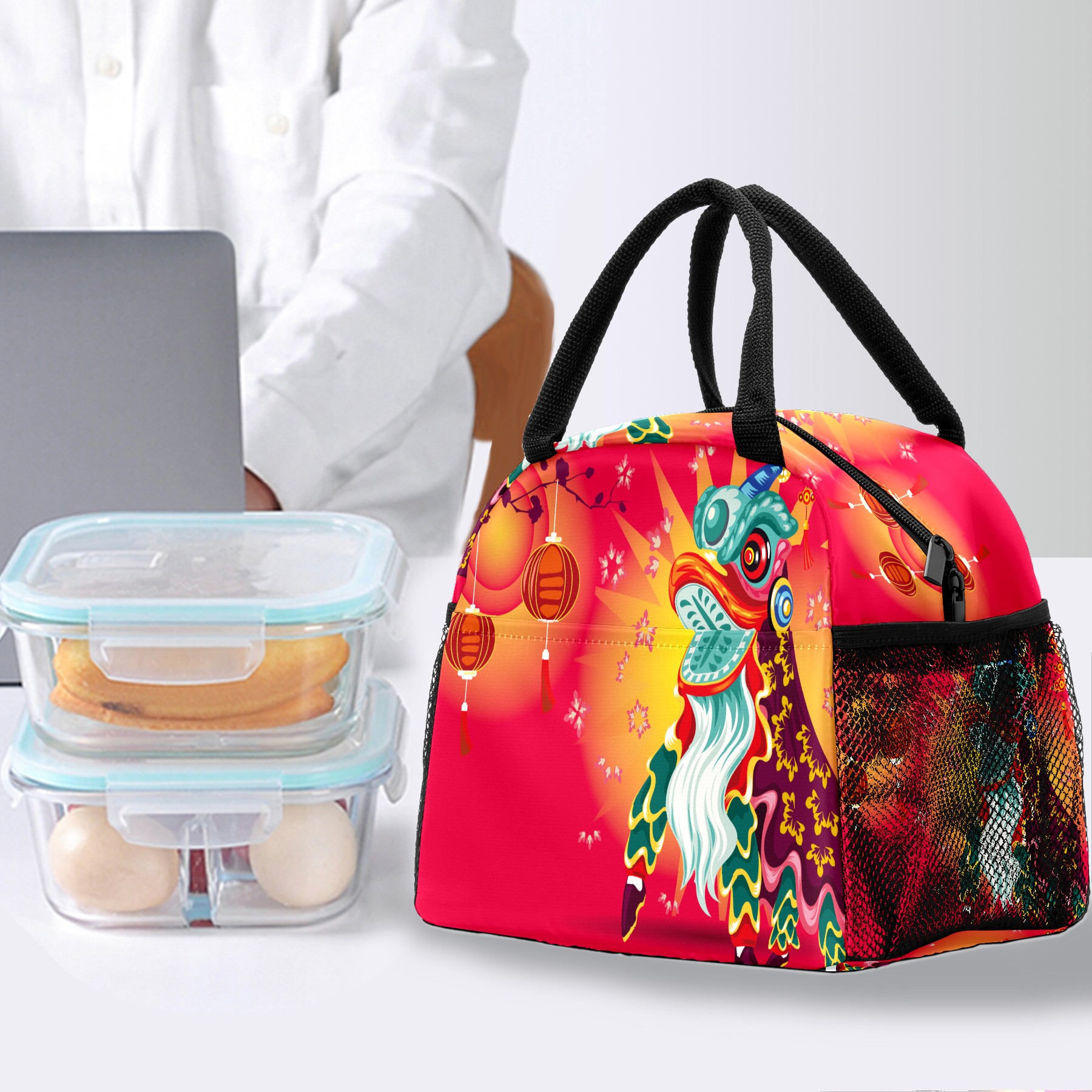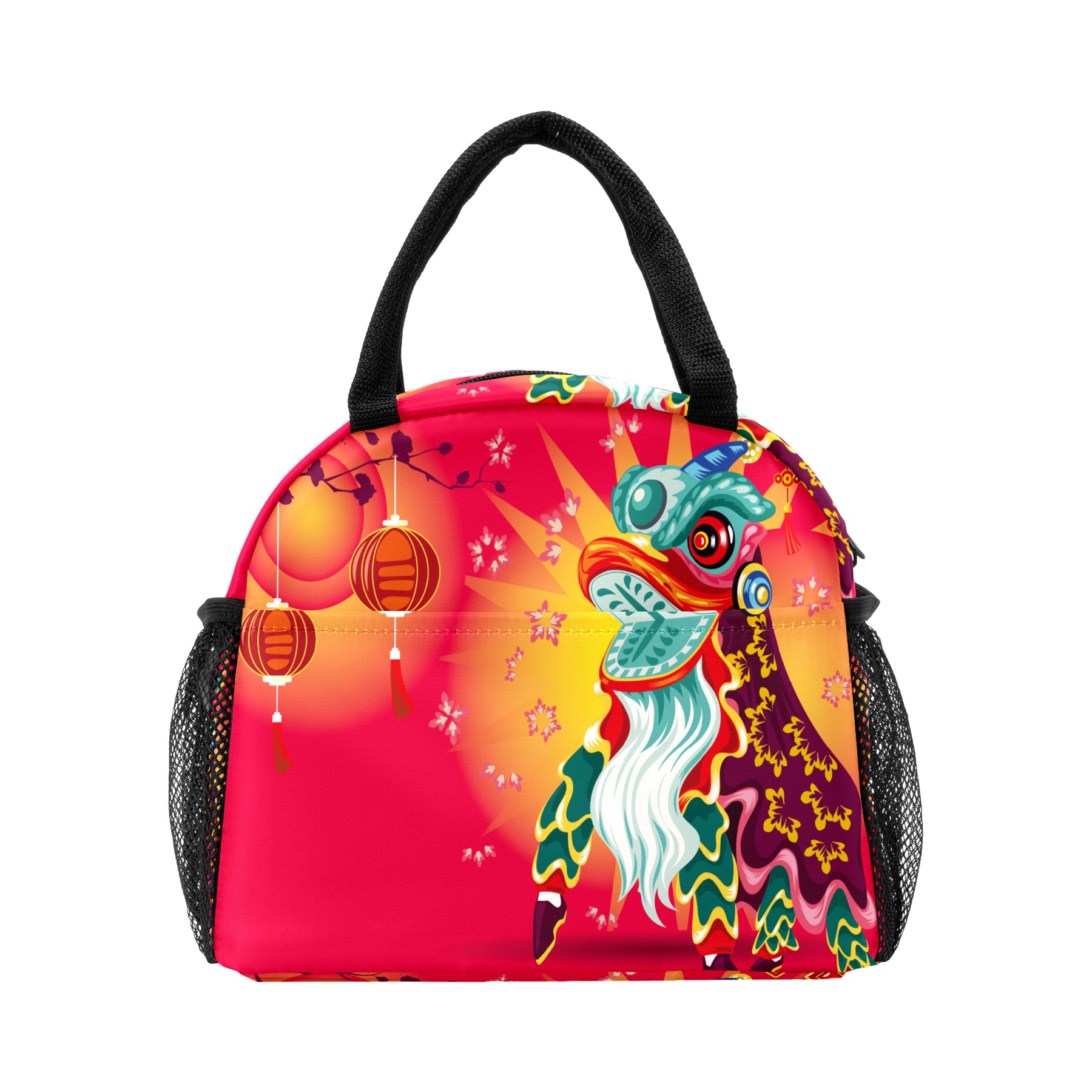 Lunch Bag for Women Men, Chinese Dragon Lion Dancing Insulated Reusable Lunch Box Thermal Cooler Tote Bag for Work Picnic Hiking Travel Beach