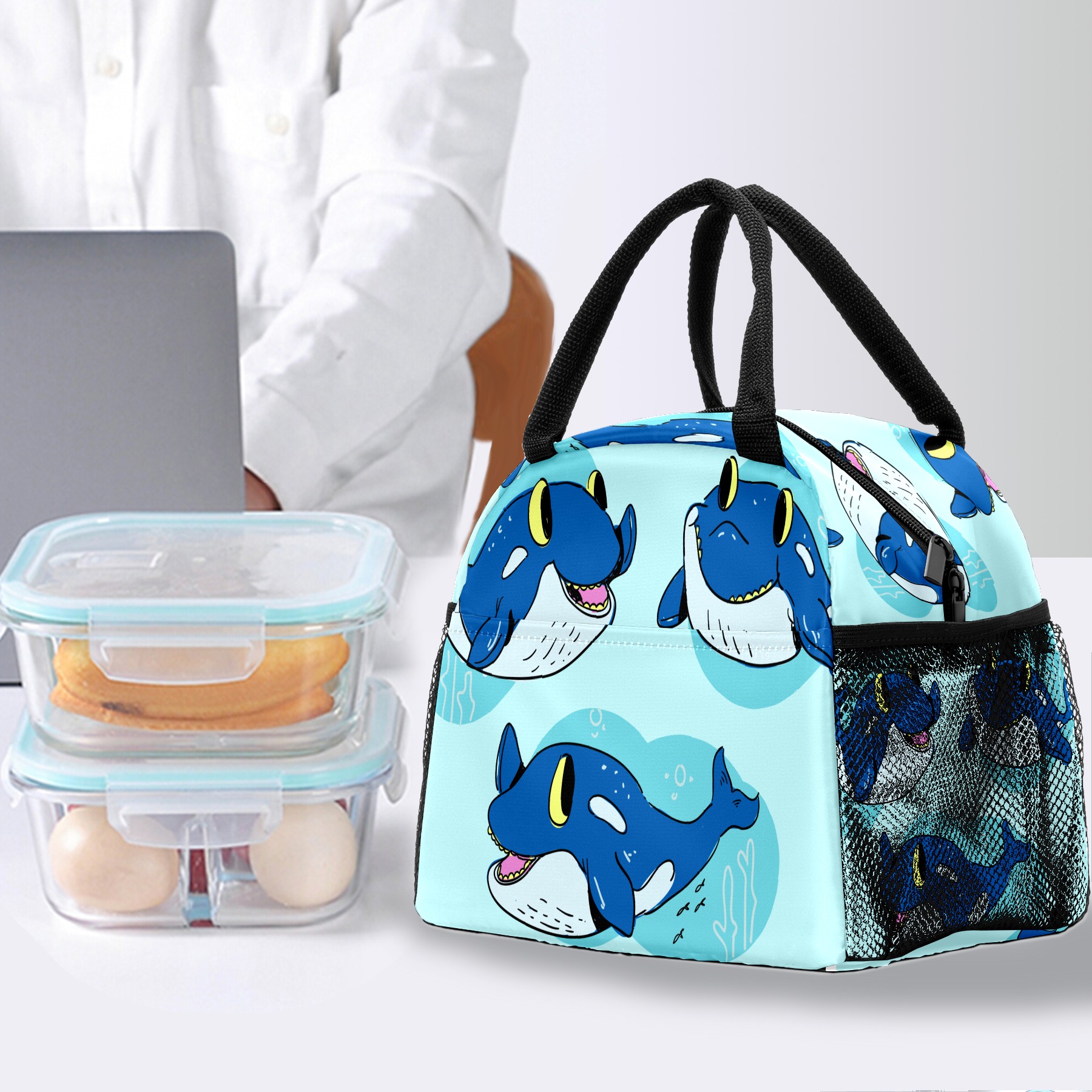 Lunch Bag for Women Men, Cartoon Killer Whale Insulated Reusable Lunch Box Thermal Cooler Tote Bag for Work Picnic Hiking Travel Beach