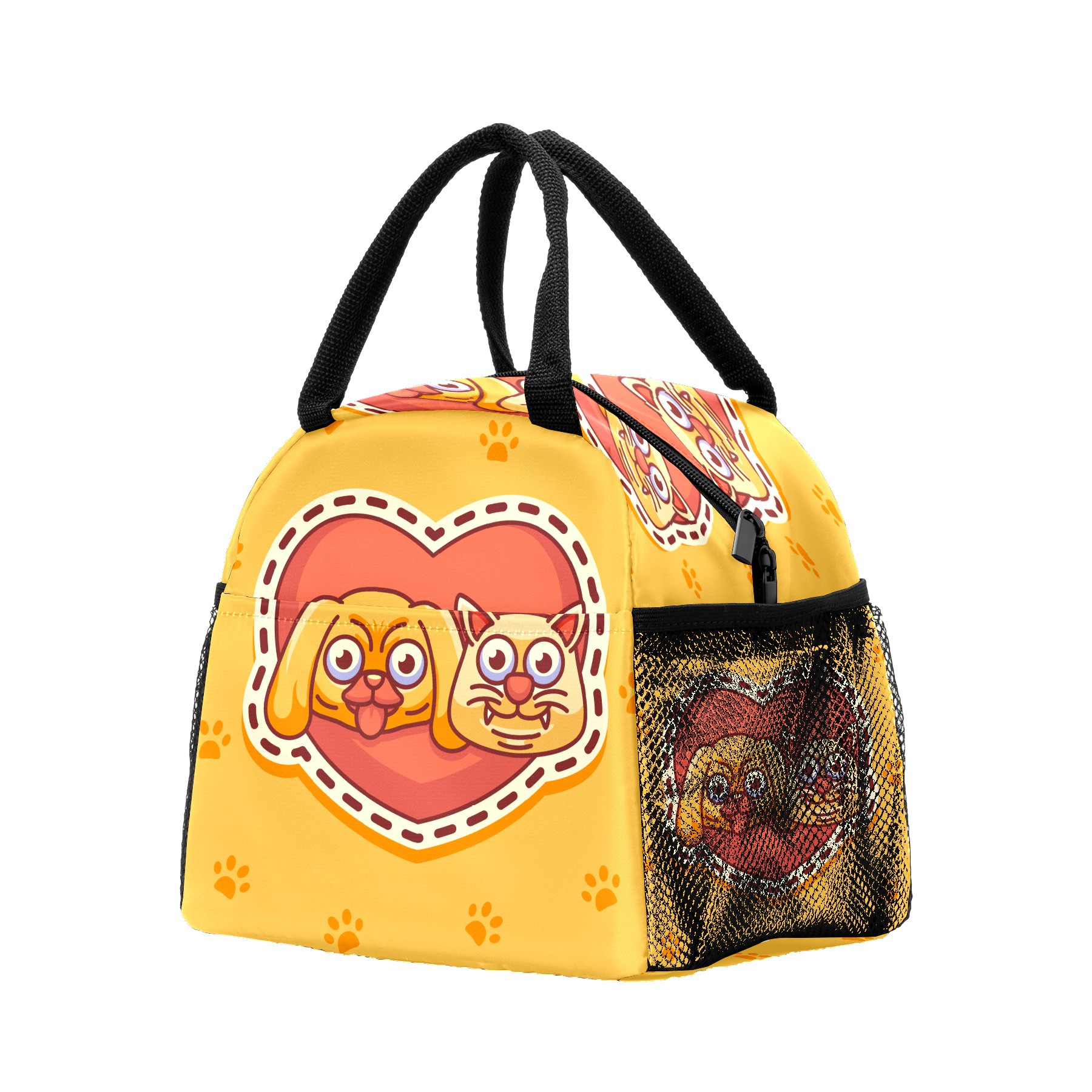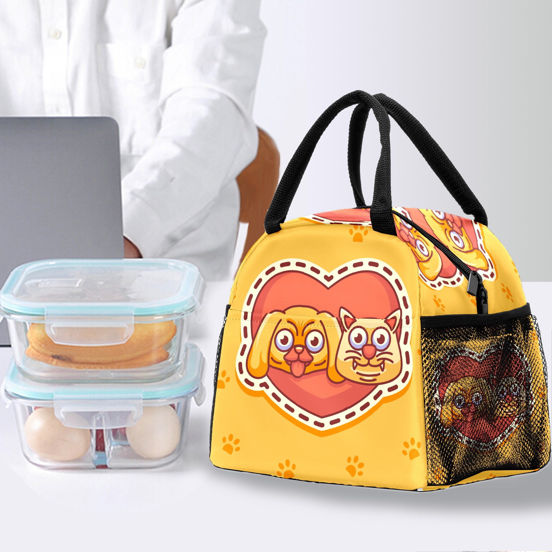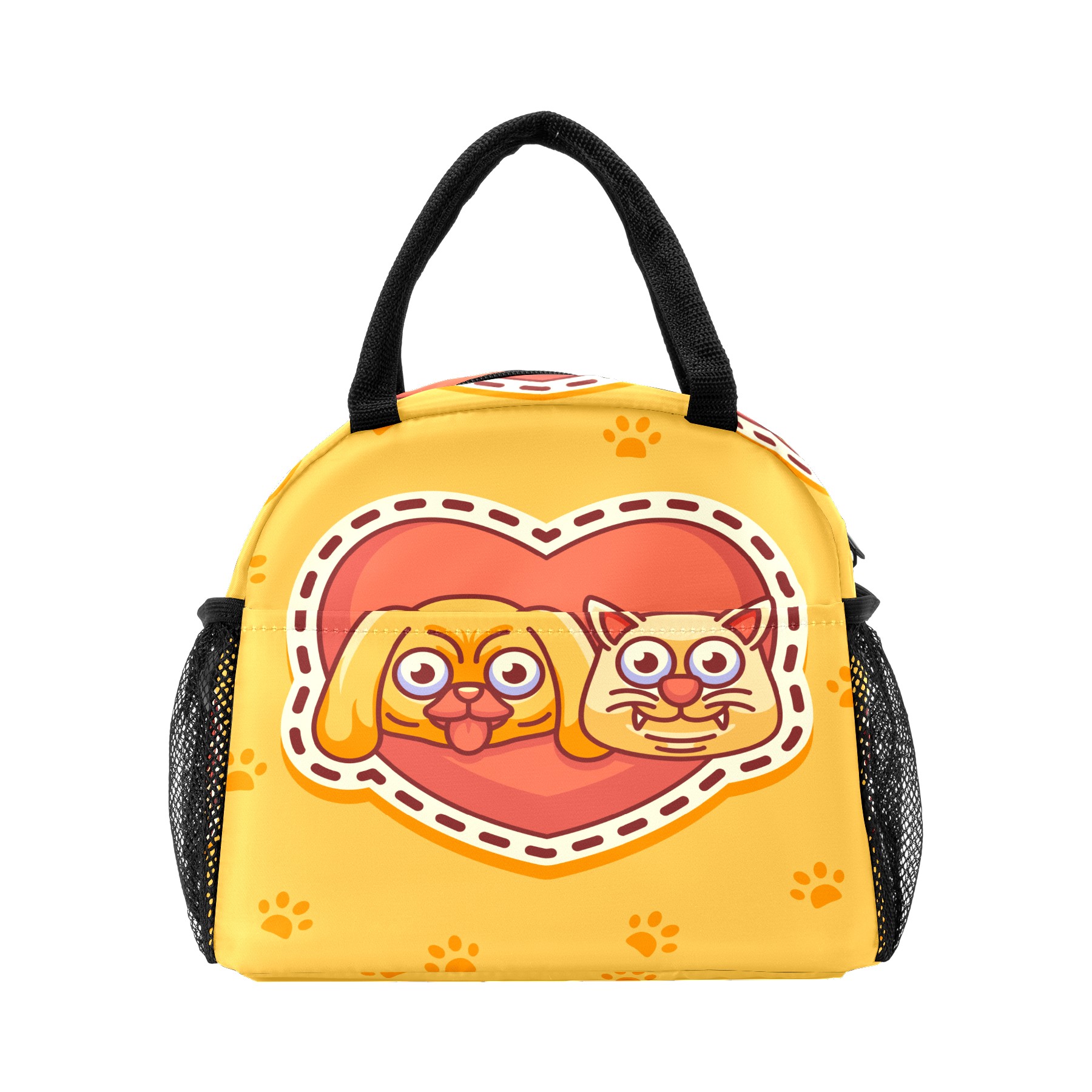 Lunch Bag for Women Men, Cartoon Dog With Cat Insulated Reusable Lunch Box Thermal Cooler Tote Bag for Work Picnic Hiking Travel Beach