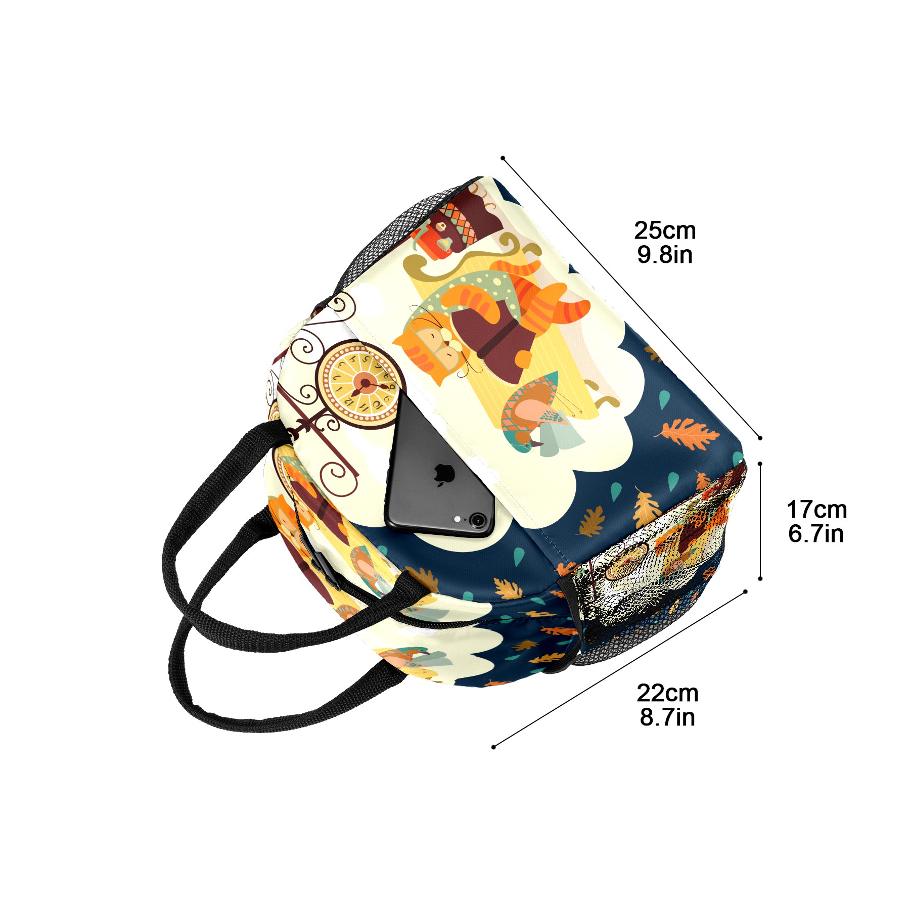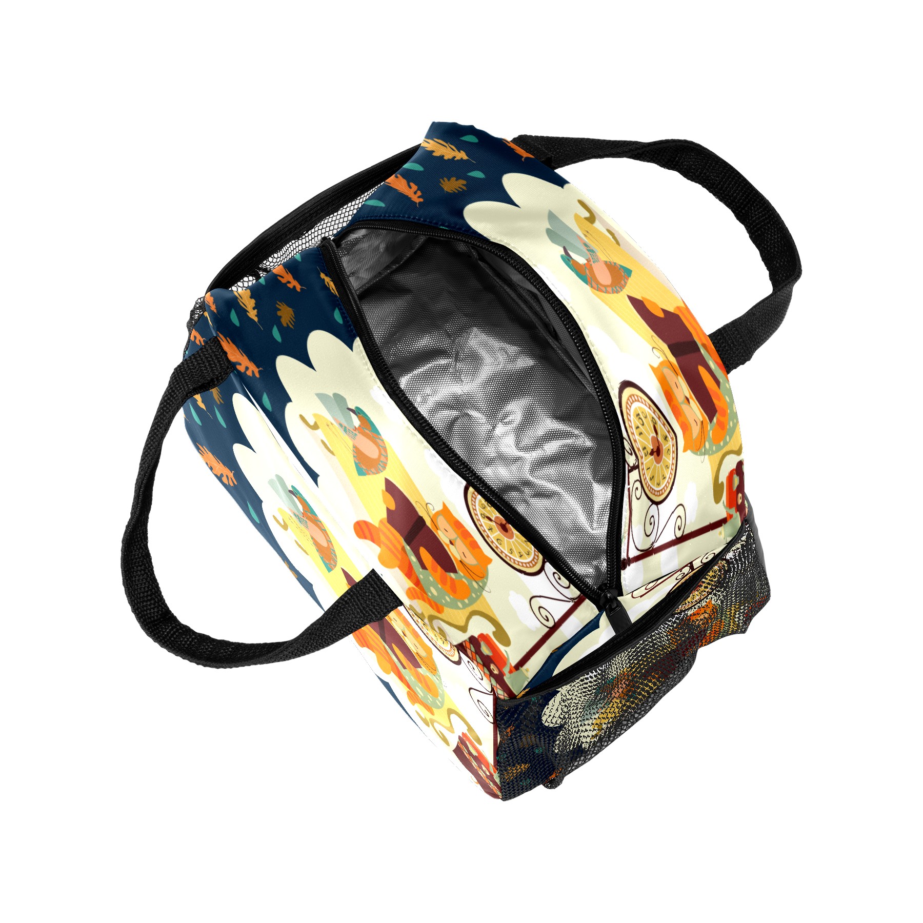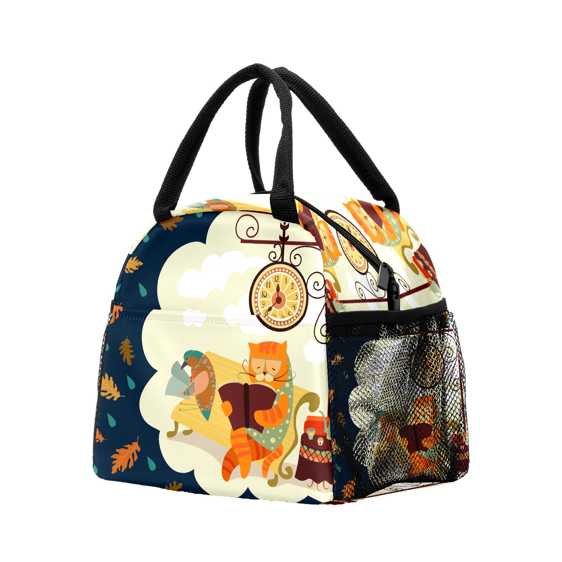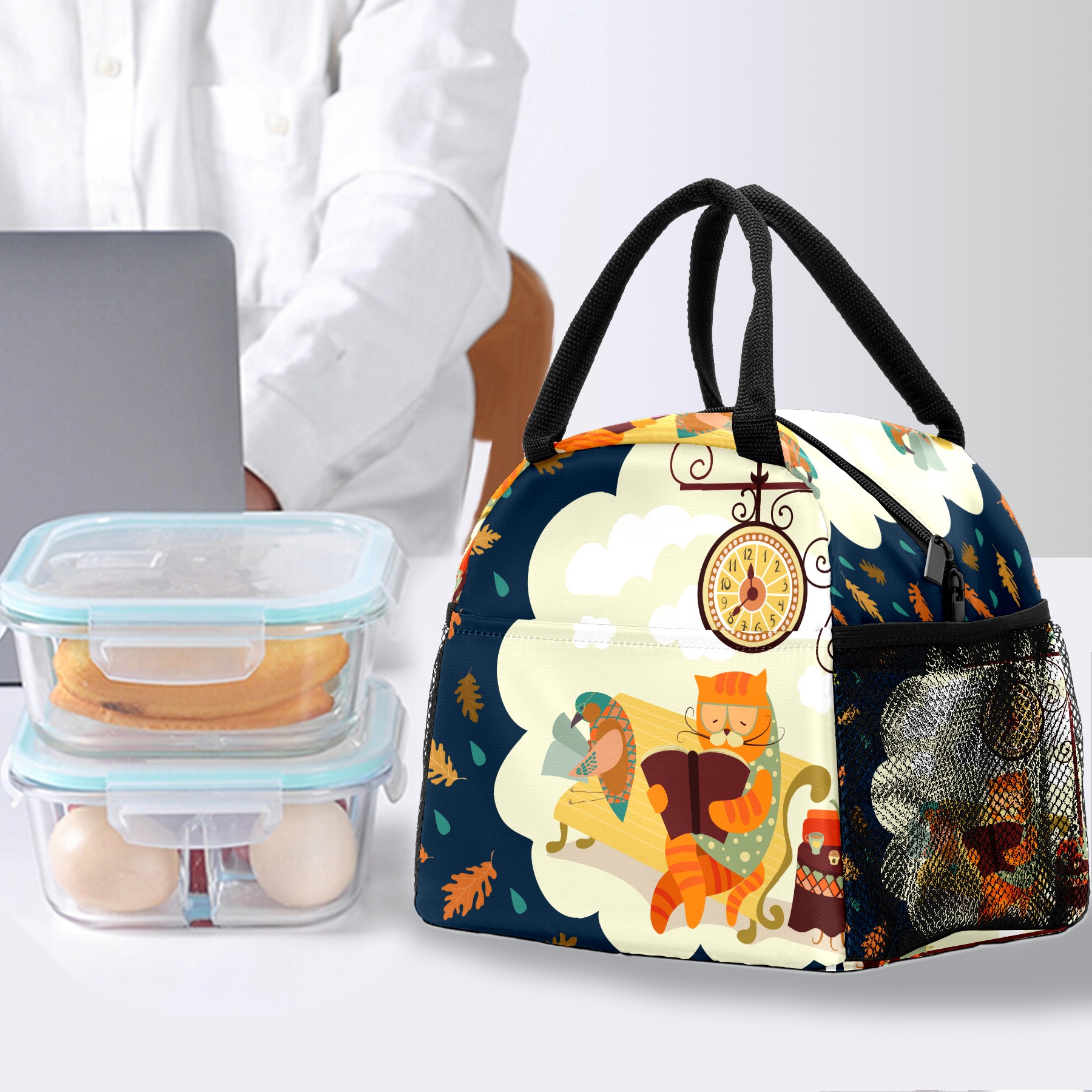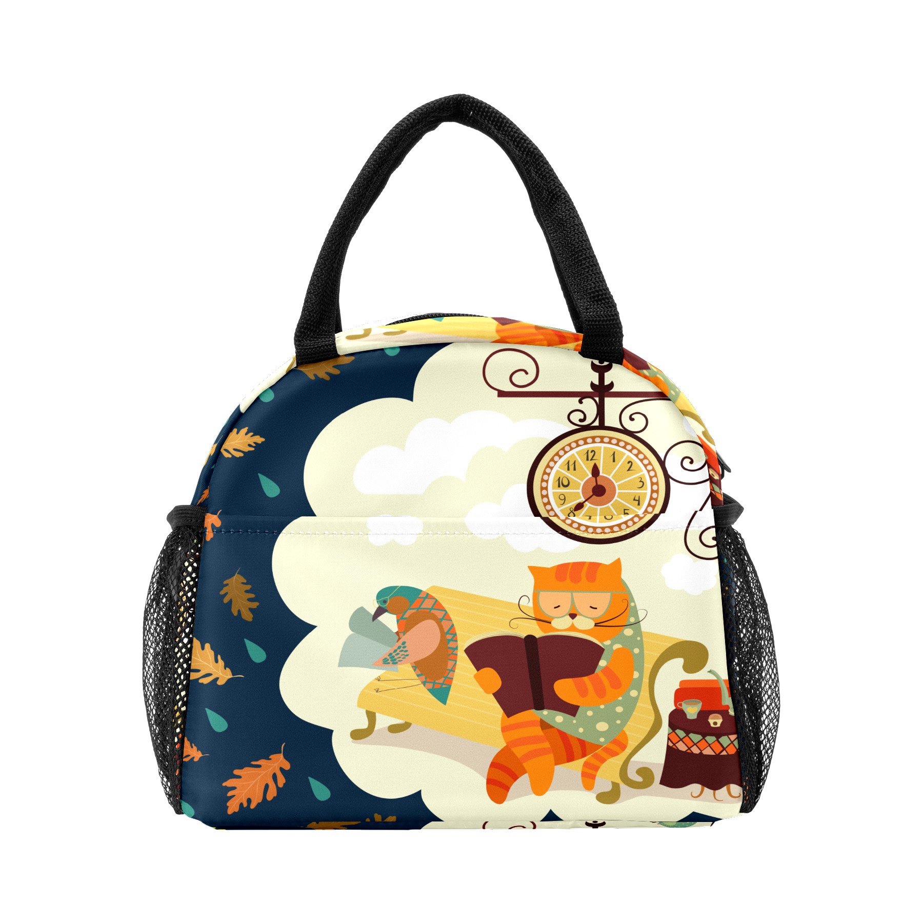 Lunch Bag for Women Men, Cartoon Cat Bird Reading Book Insulated Reusable Lunch Box Thermal Cooler Tote Bag for Work Picnic Hiking Travel Beach