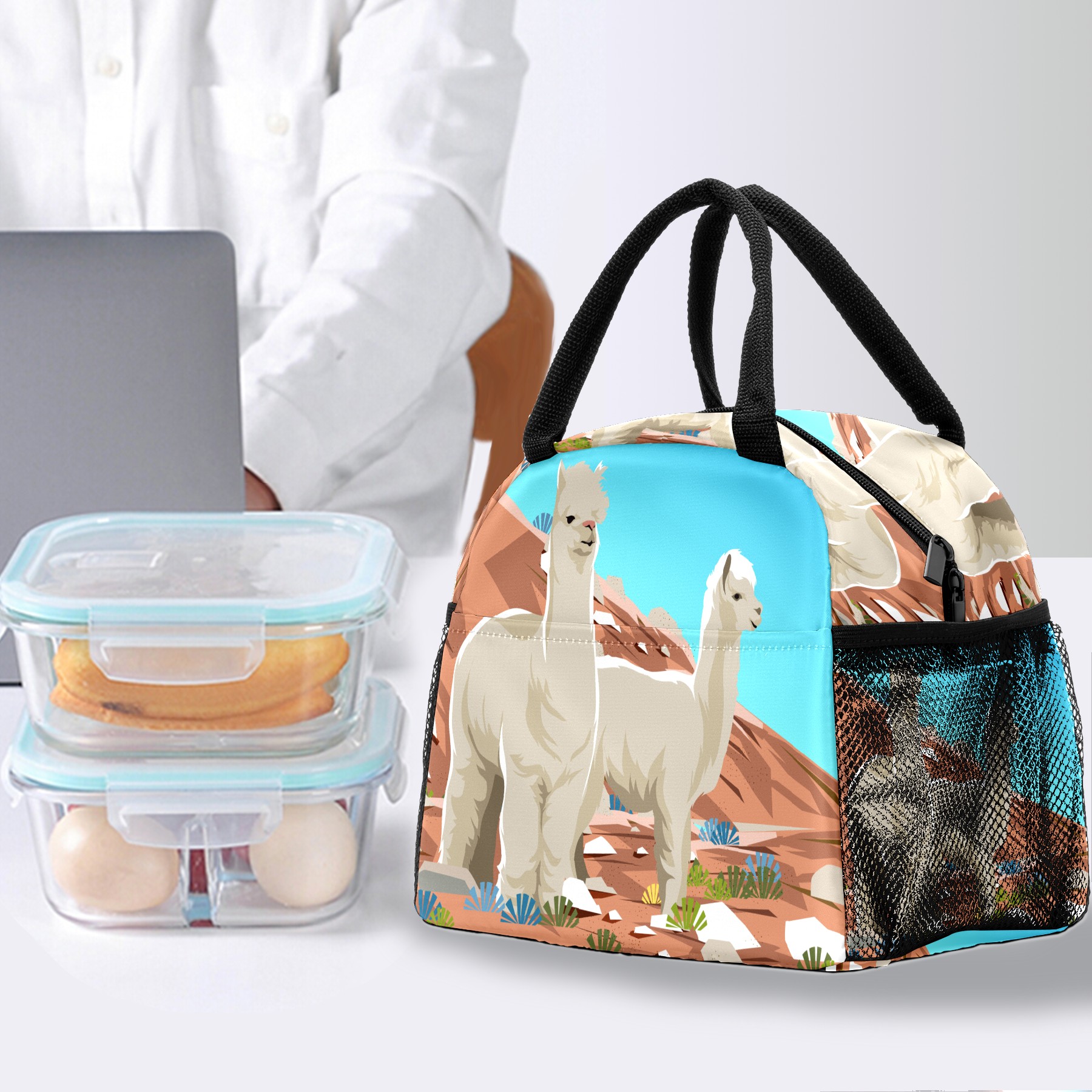 Lunch Bag for Women Men, Alpaca At The Desert Insulated Reusable Lunch Box Thermal Cooler Tote Bag for Work Picnic Hiking Travel Beach