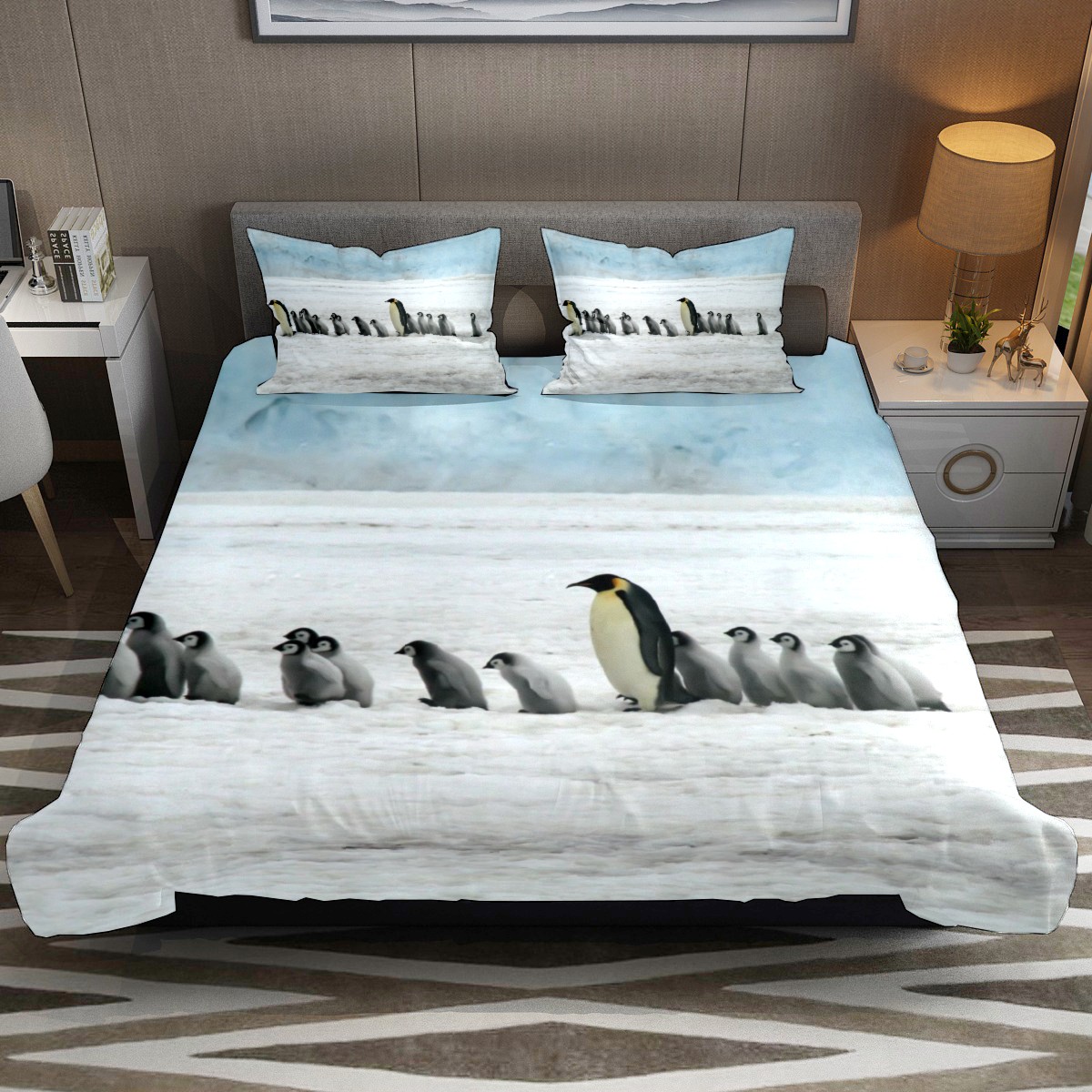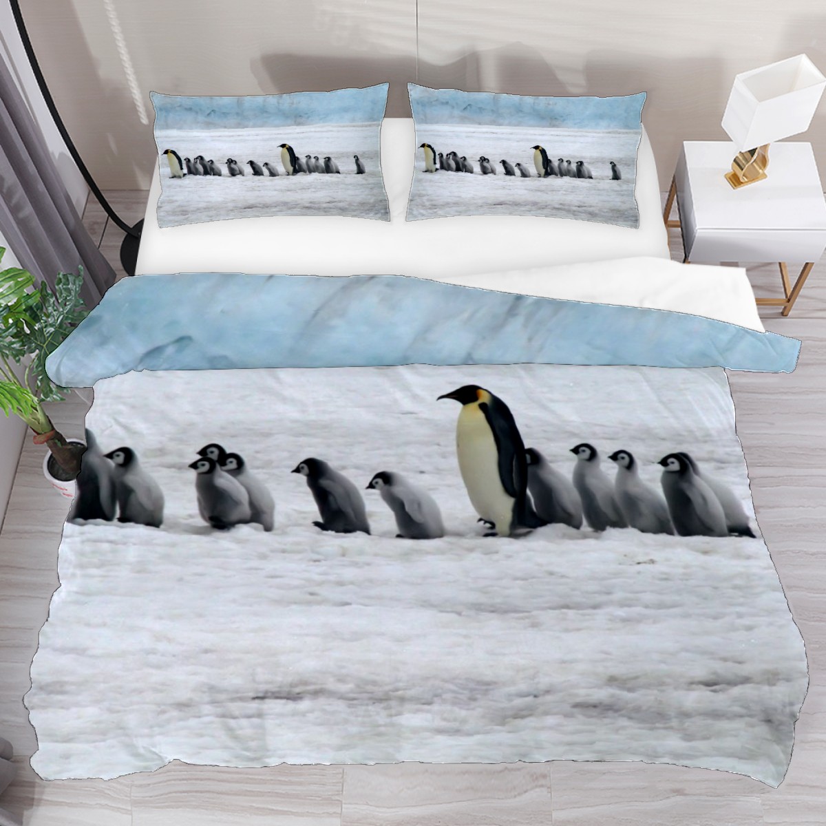 Bedsure Comforter Set Twin Size Bed Emperor Penguins Lightweight Solid Comforter Set 3 Piece 1 Comforter 55x79 Inches 2 Pillowcase 20x30 Inches