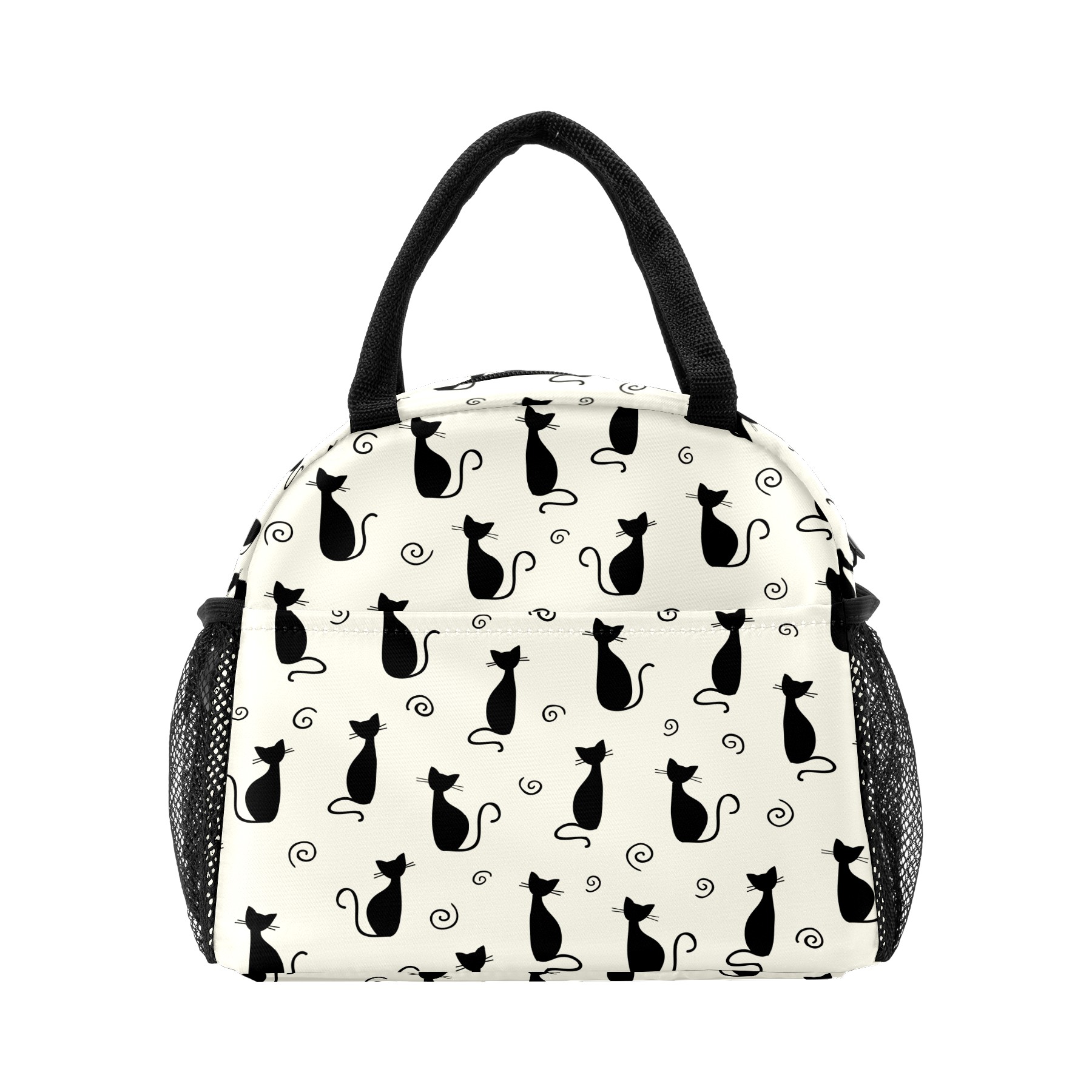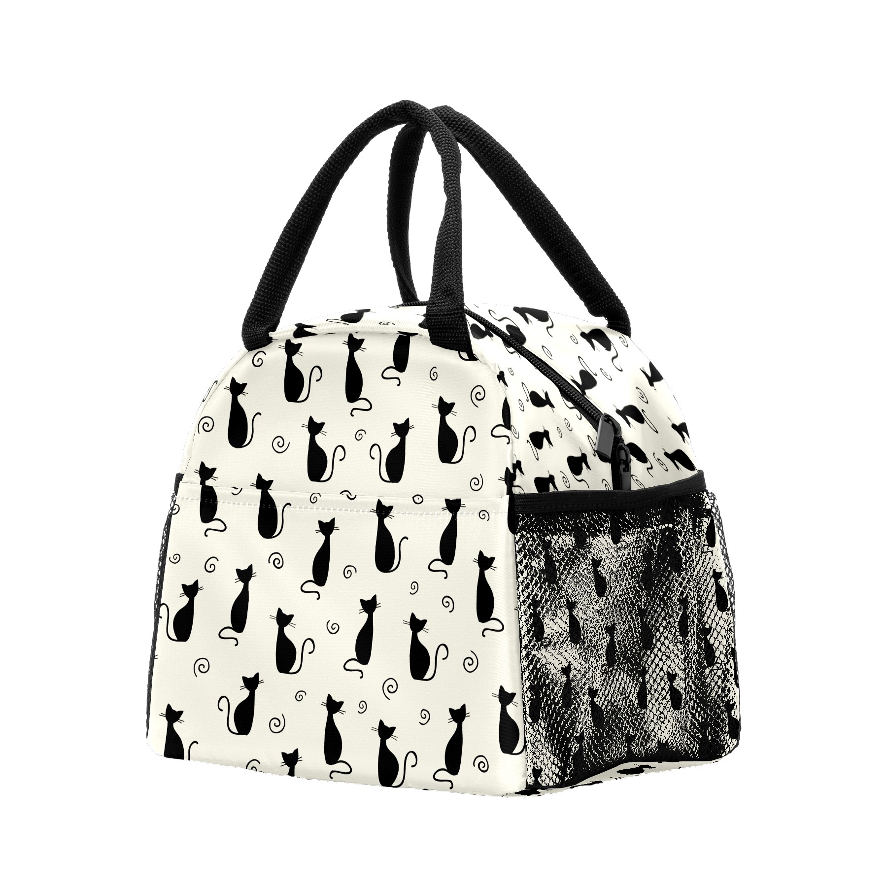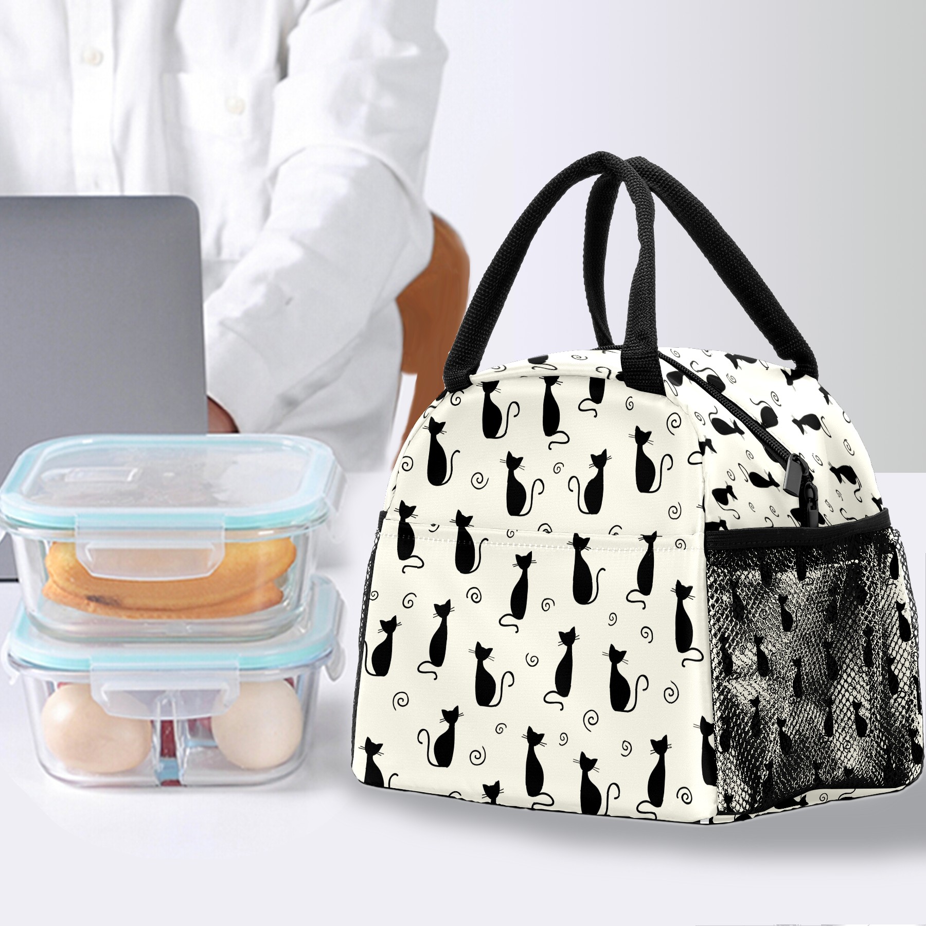 Lunch Bag for Women Men, Black Cat Pattern Insulated Reusable Lunch Box Thermal Cooler Tote Bag for Work Picnic Hiking Travel Beach