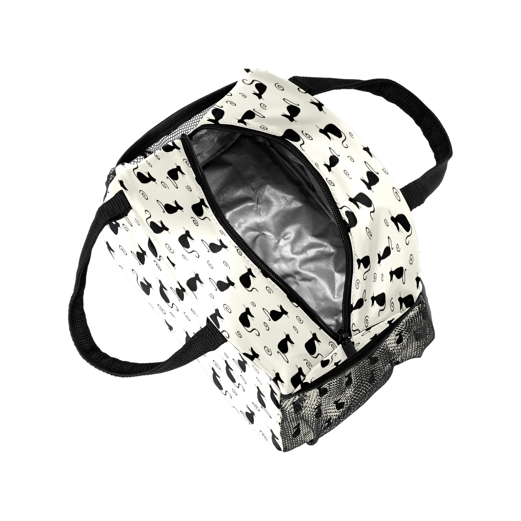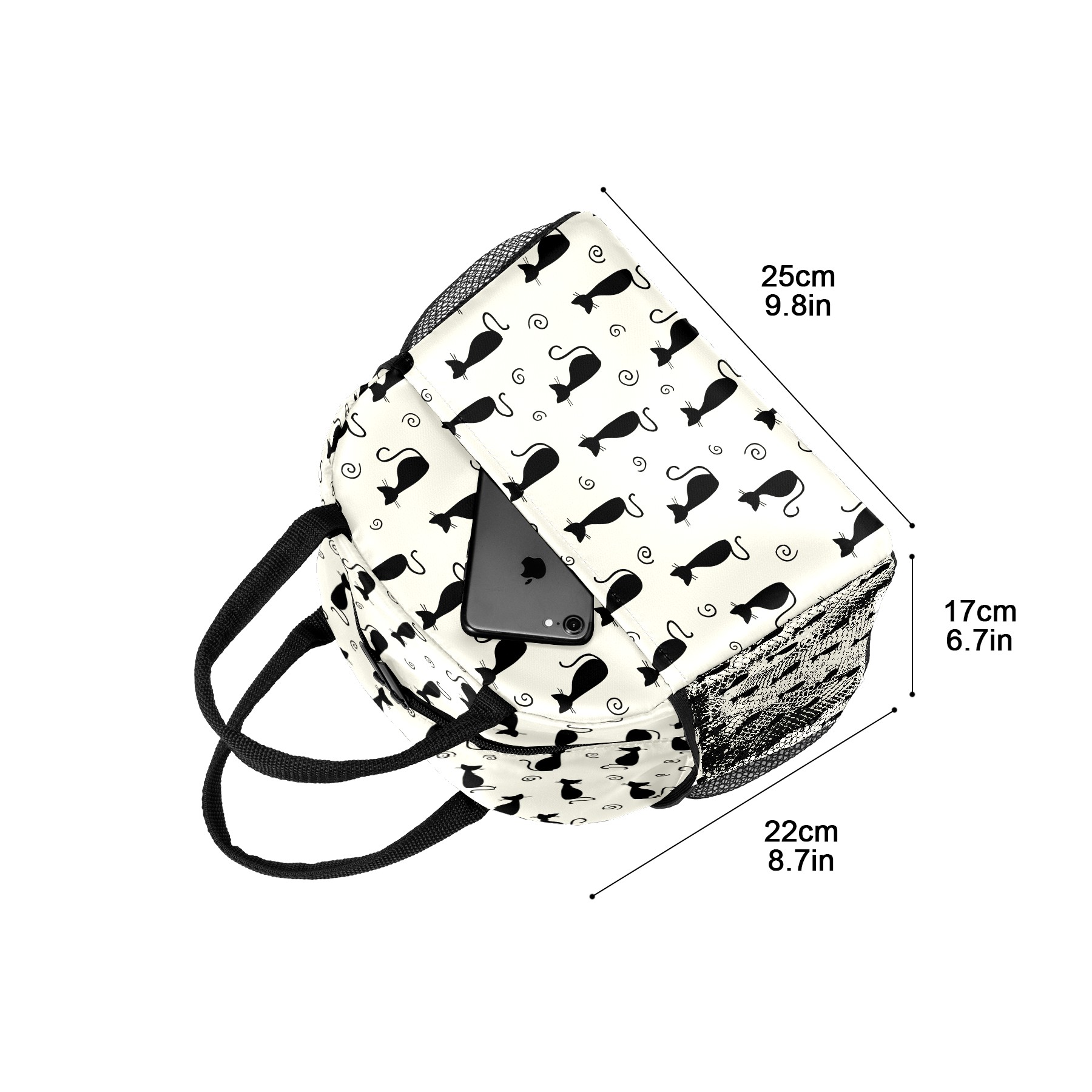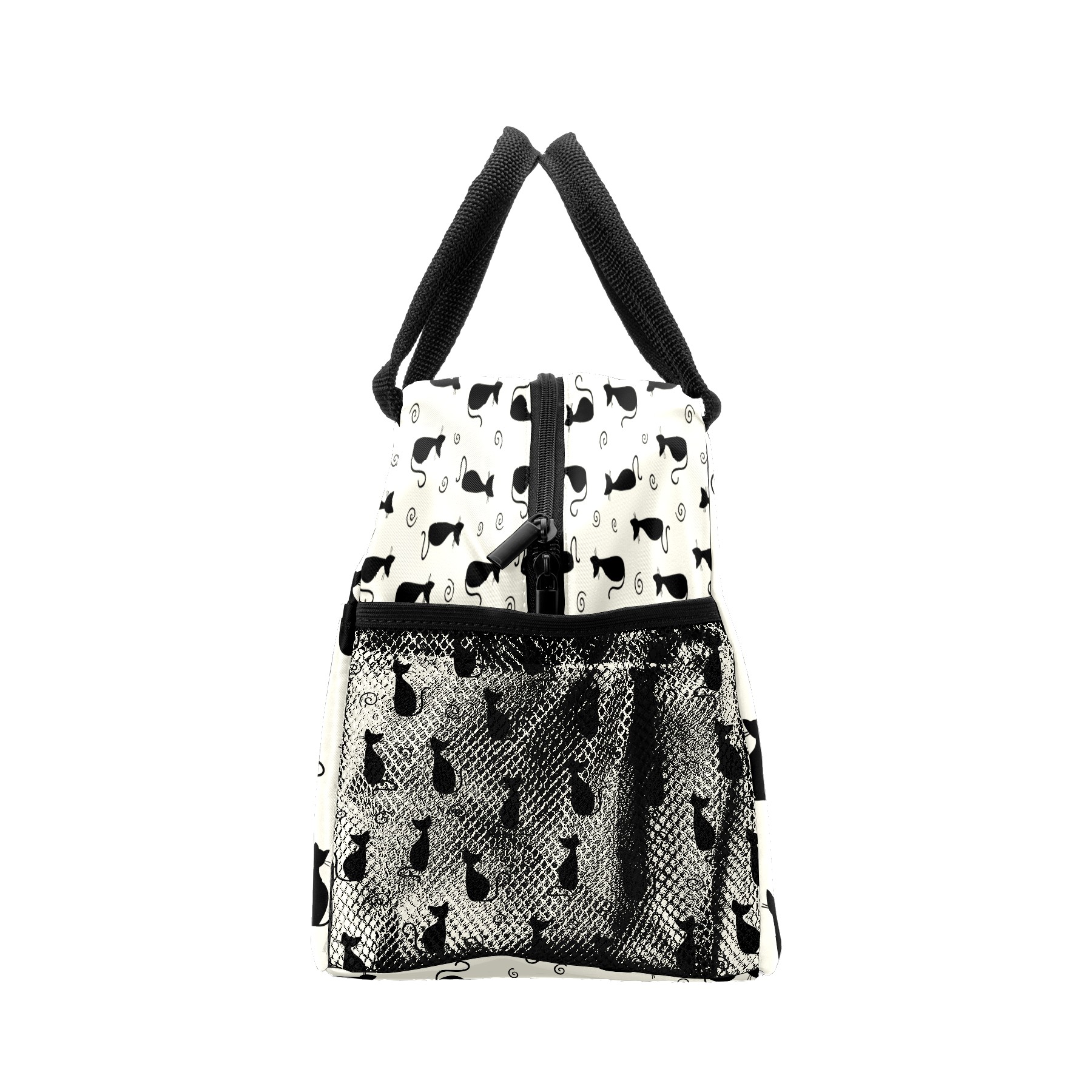 Lunch Bag for Women Men, Black Cat Pattern Insulated Reusable Lunch Box Thermal Cooler Tote Bag for Work Picnic Hiking Travel Beach