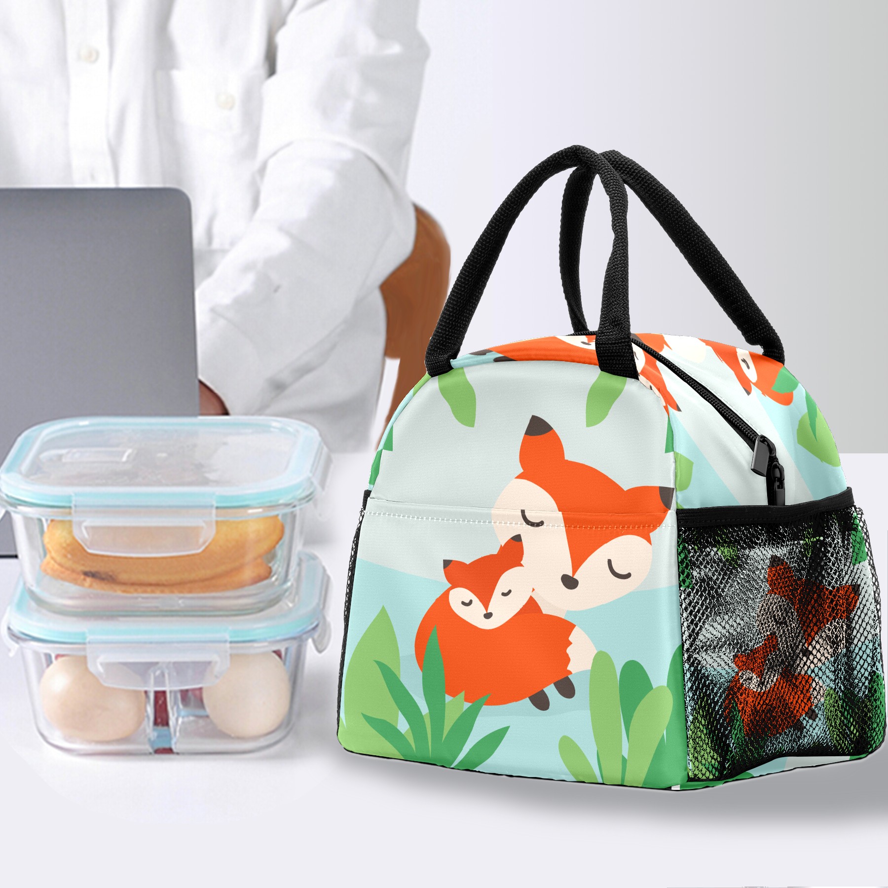 Lunch Bag for Women Men, Animal Fox Mom And Baby Insulated Reusable Lunch Box Thermal Cooler Tote Bag for Work Picnic Hiking Travel Beach