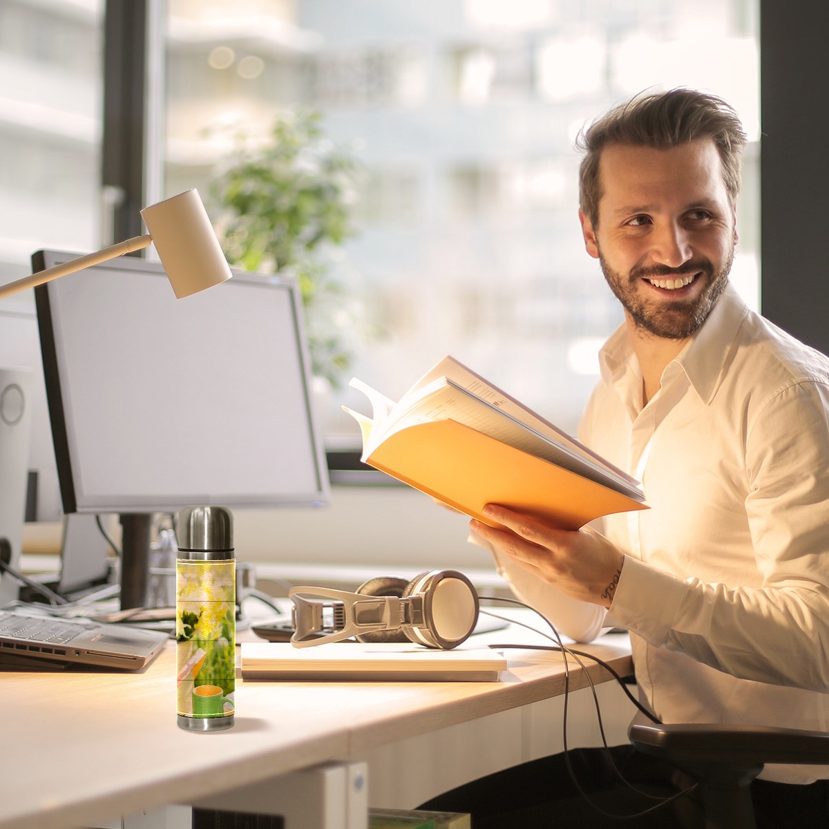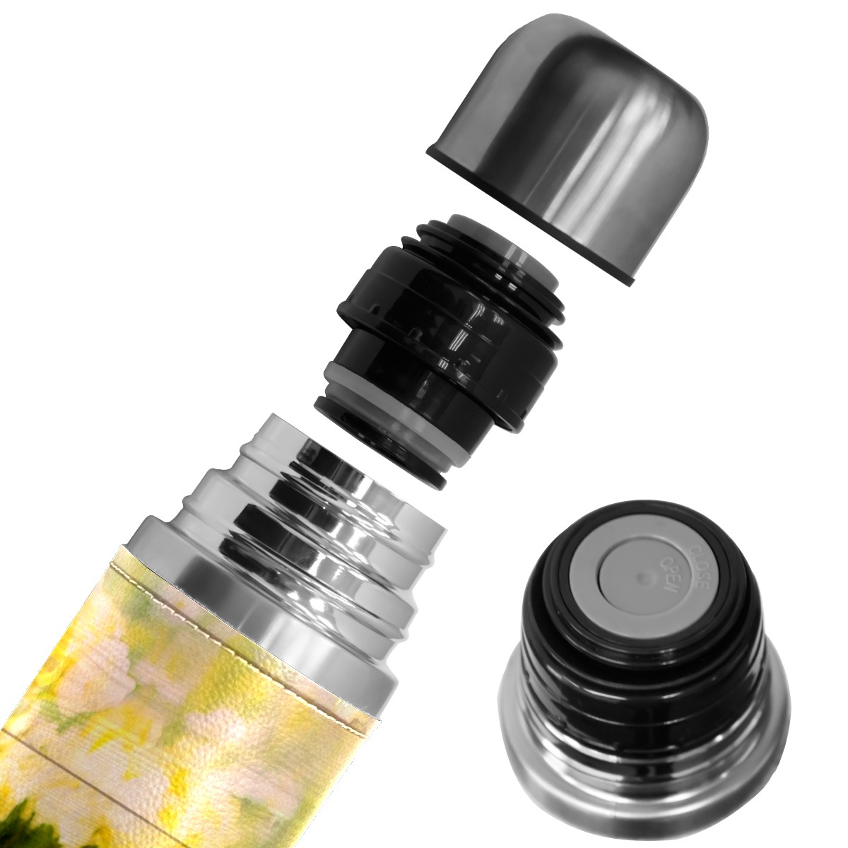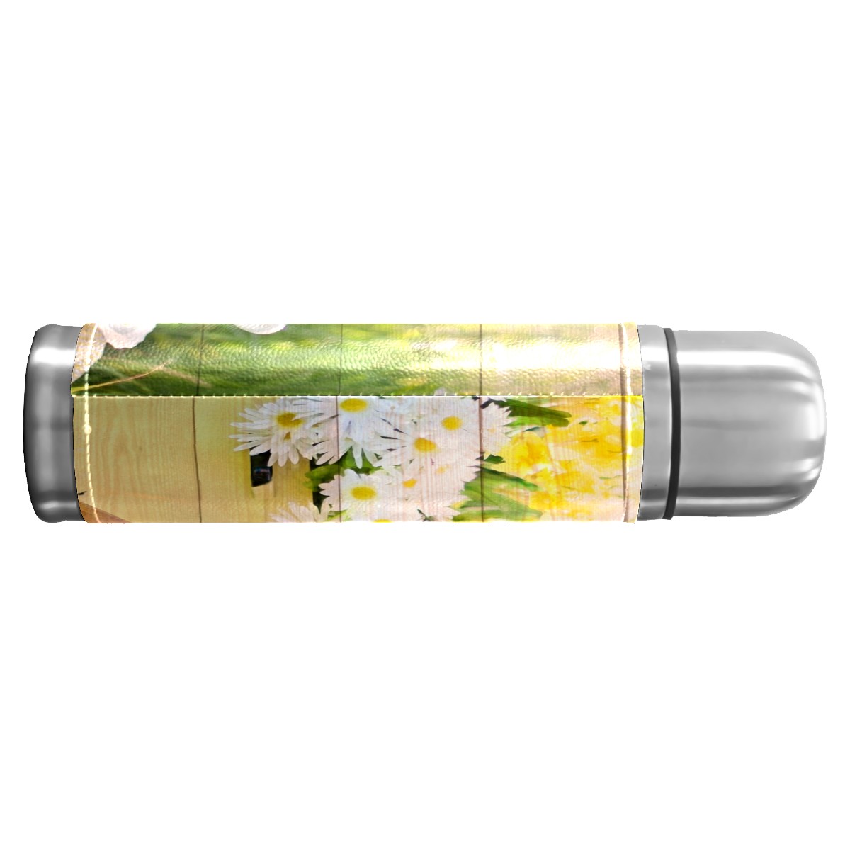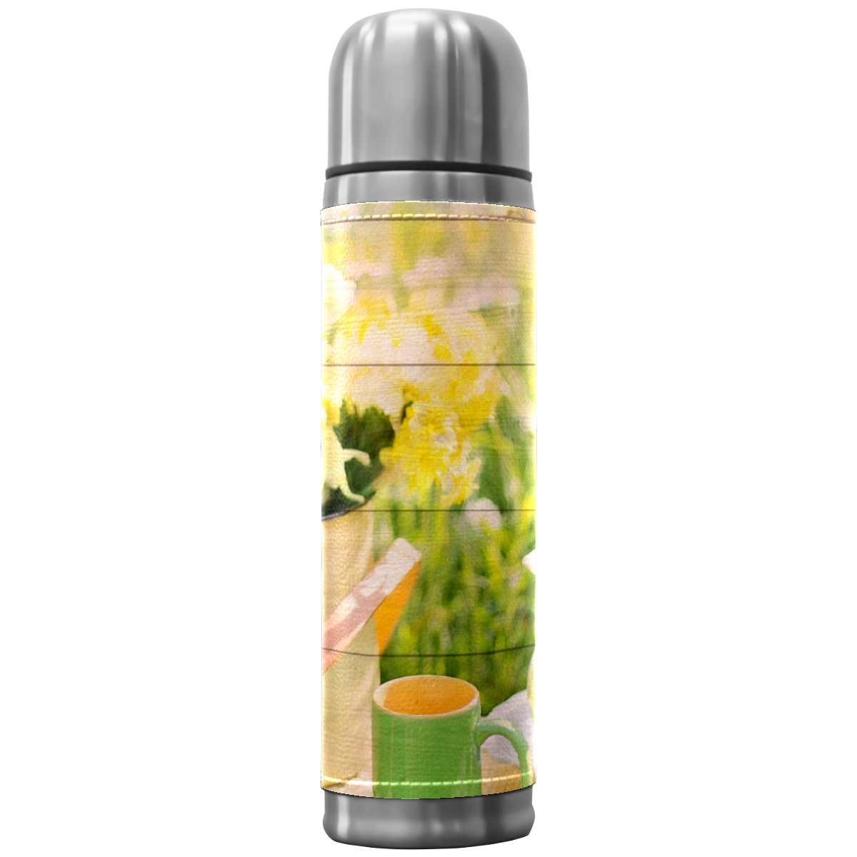 Water Bottle Wooden Floral Tea Picnic Afternoon Stainless Steel PU Leather Vacuum Insulated Travel Mug 17OZ Double Walled Coffee Cup Flask