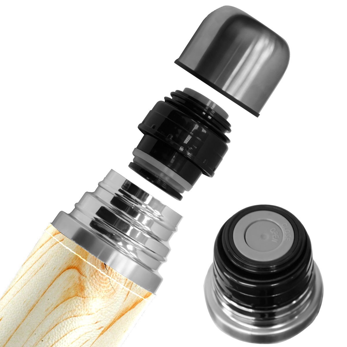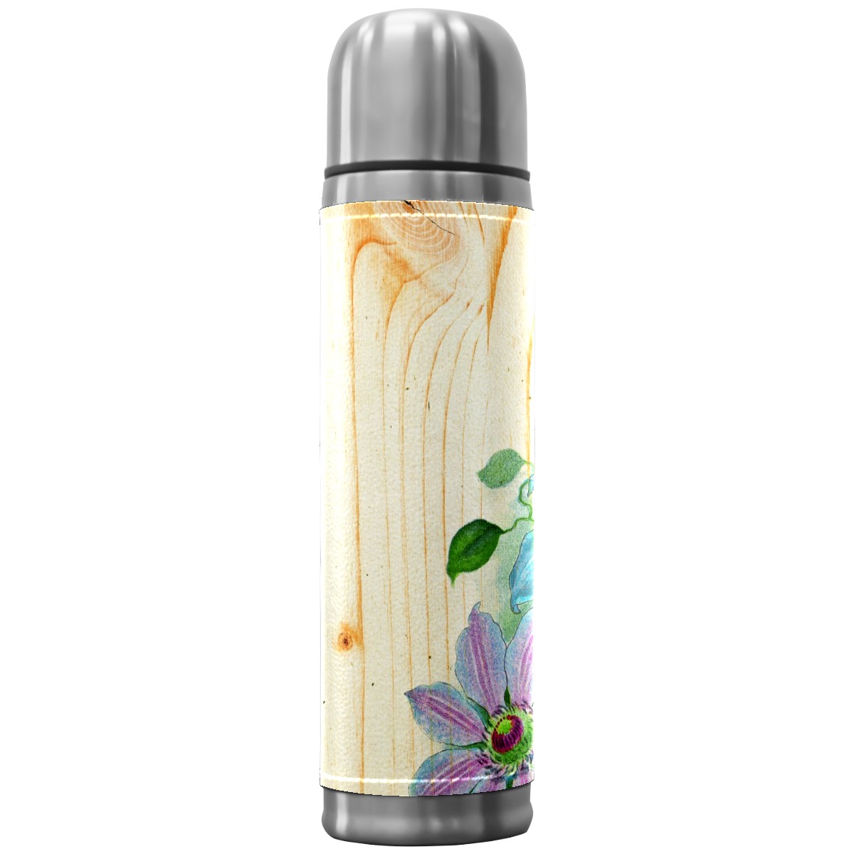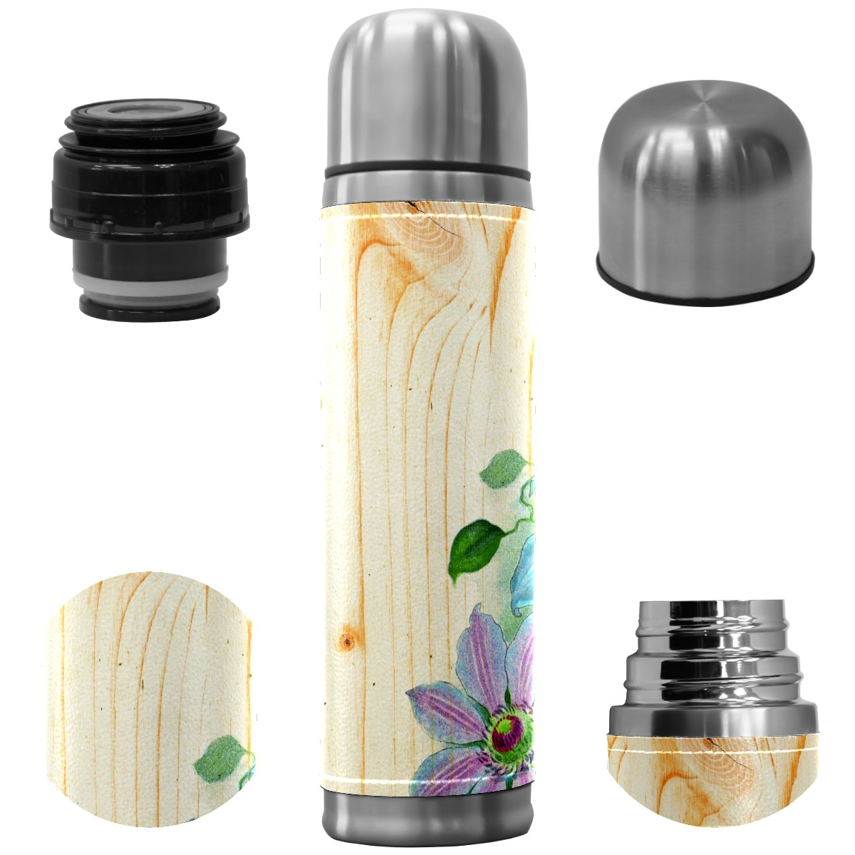 Water Bottle Shabby Tree Wooden Floral Corner Stainless Steel PU Leather Vacuum Insulated Travel Mug 17OZ Double Walled Coffee Cup Flask