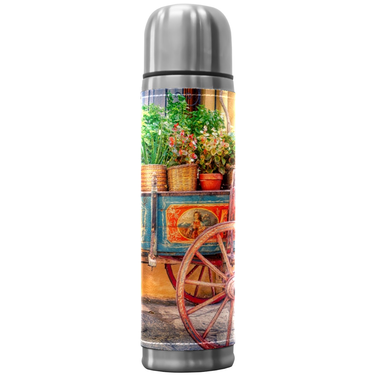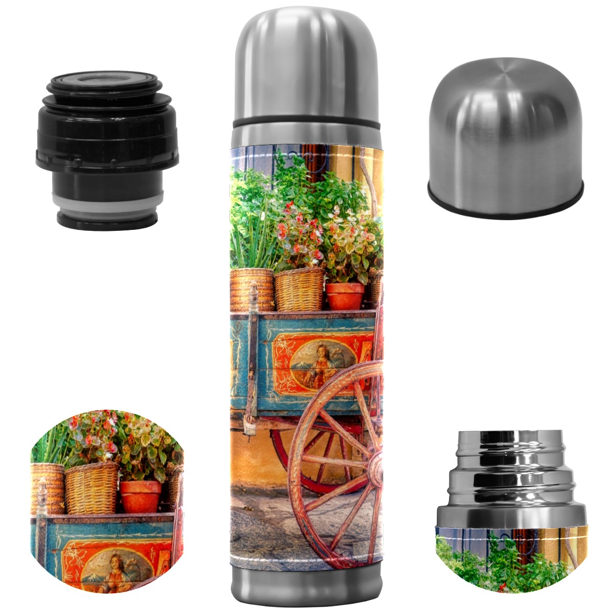 Water Bottle Potted Plants Cart Rustic Cabin Stainless Steel PU Leather Vacuum Insulated Travel Mug 17OZ Double Walled Coffee Cup Flask