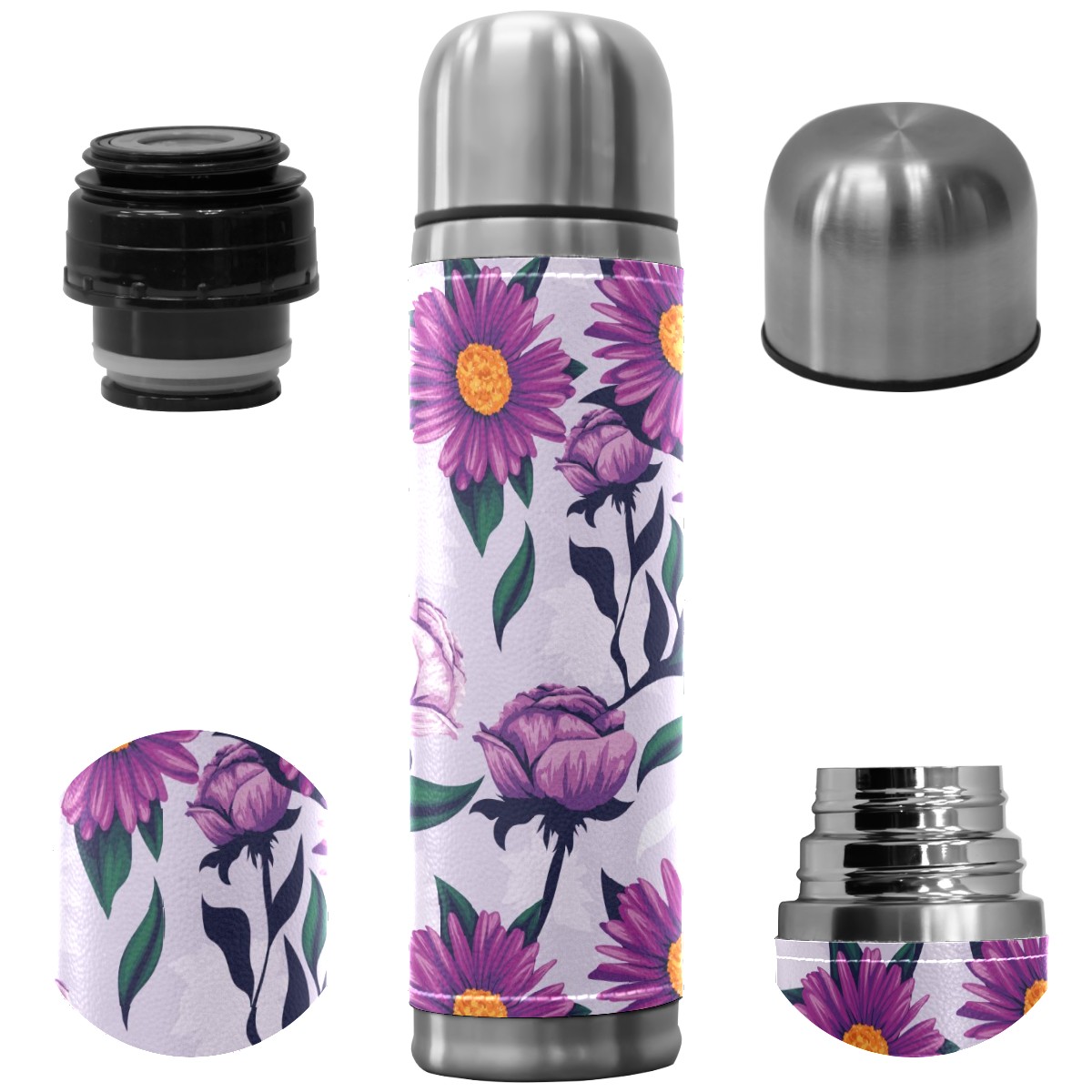 <b>FCZ Water Bottle Professional Print PU Leather Stainless Steel Vacuum Insulated Travel Mug Double Walled Coffee Cup</b><br> <b>Size:</b>10.23in x 2.63in.The height of the bottle is 10.24in(26cm),the diameter of the bottle is 2.36in(6cm).<br> The size is not too big but can hold enough water.It is convenient to carry out.Won't take up too much room.<br> You can put it in yout bag,backpack,or hold it in your hand.Leak proof, no spill, no sweat.<br> <b>Material:</b>Stainless steel+copper plating+Two layers of cowhide.(insulated,thermal)<br> The Full Bottle made of high quality Stainless Steel food grade,Durable double wall vacuum insulated stainless steel interior,without the inconvenience of contamination by chemicals substances<br> Assure that your liquid stays at a consistent temperature,can hold cold water or hot water.<br> The outer material is Two layers of cowhide,make the bottle more thermal.<br> <b>Printing:</b>Professional NM Printing Tech,no faded,make your water bottle more unique.<br> <b>Volume:</b>17 ounce<br> <b>Thermal Age:</b>8 years.<br> <b>Occasion:</b>The fashion stainless steel thermos bottle suit for office,home,school,travel,sports,fitness,hiking,running,shopping,work amd all the indoor outdoor activities.<br> <b>Perfect Gift:</b>Custom the unique stainless steel thermos bottle to a birthday,wedding,graduation,anniversary,christmas gift.Can send to your kids,girls,boys,friends,lovers,husband,wife,mom,dad,and etc<br> <b>Support Customize:</b>Send the picture you like to us,will own your unique stainless steel thermos bottle.