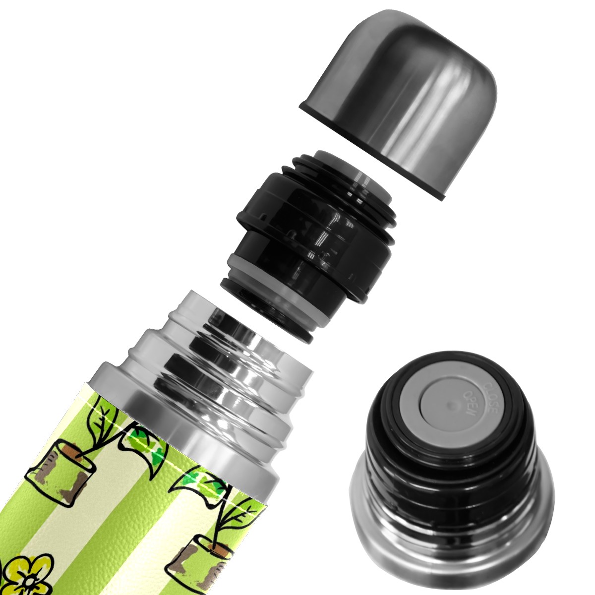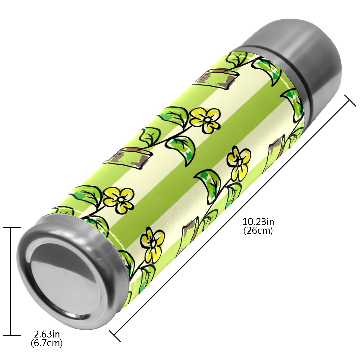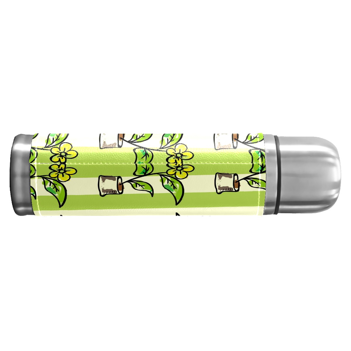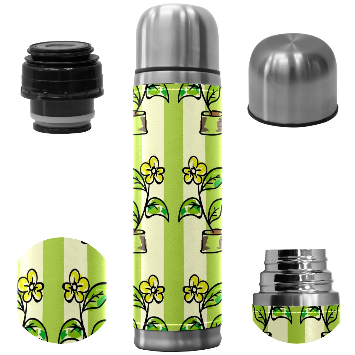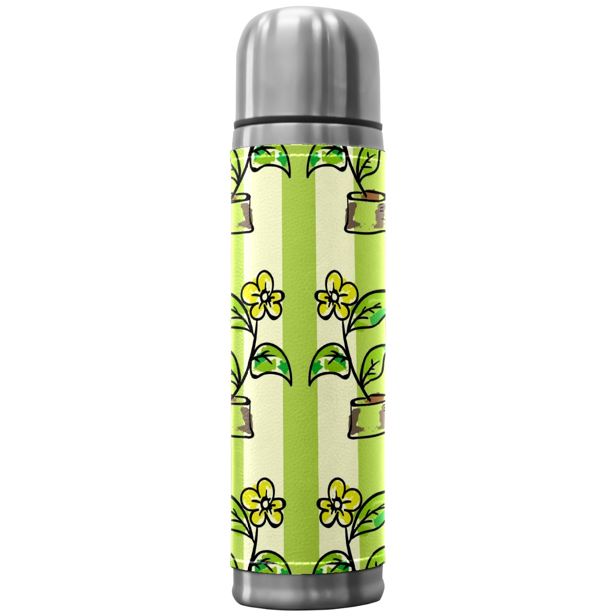 Water Bottle Potted Flowers Green Stripes Stainless Steel PU Leather Vacuum Insulated Travel Mug 17OZ Double Walled Coffee Cup Flask