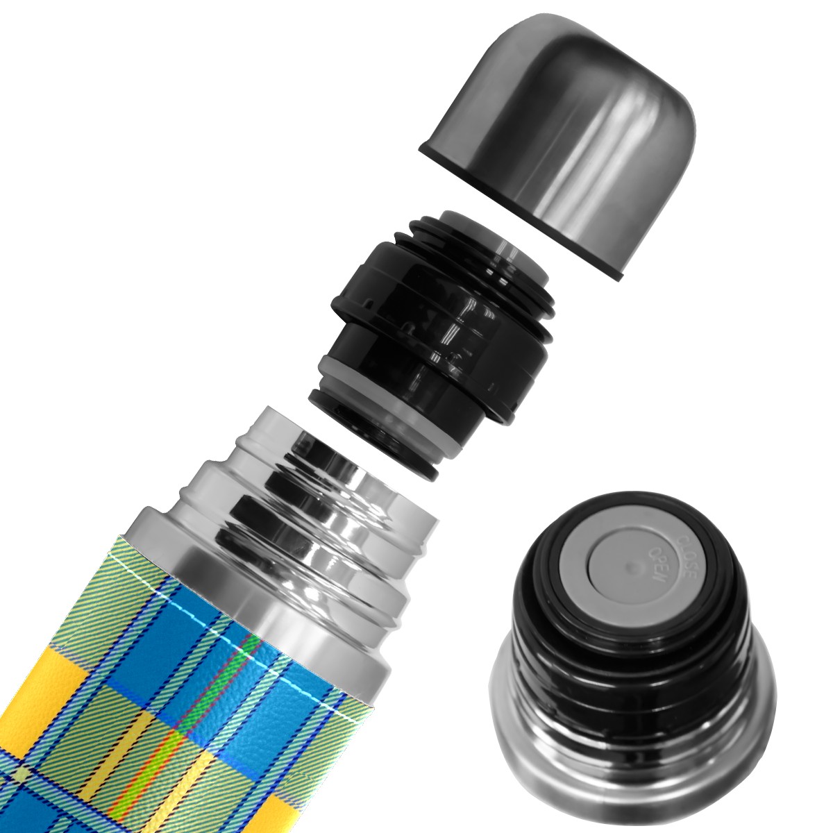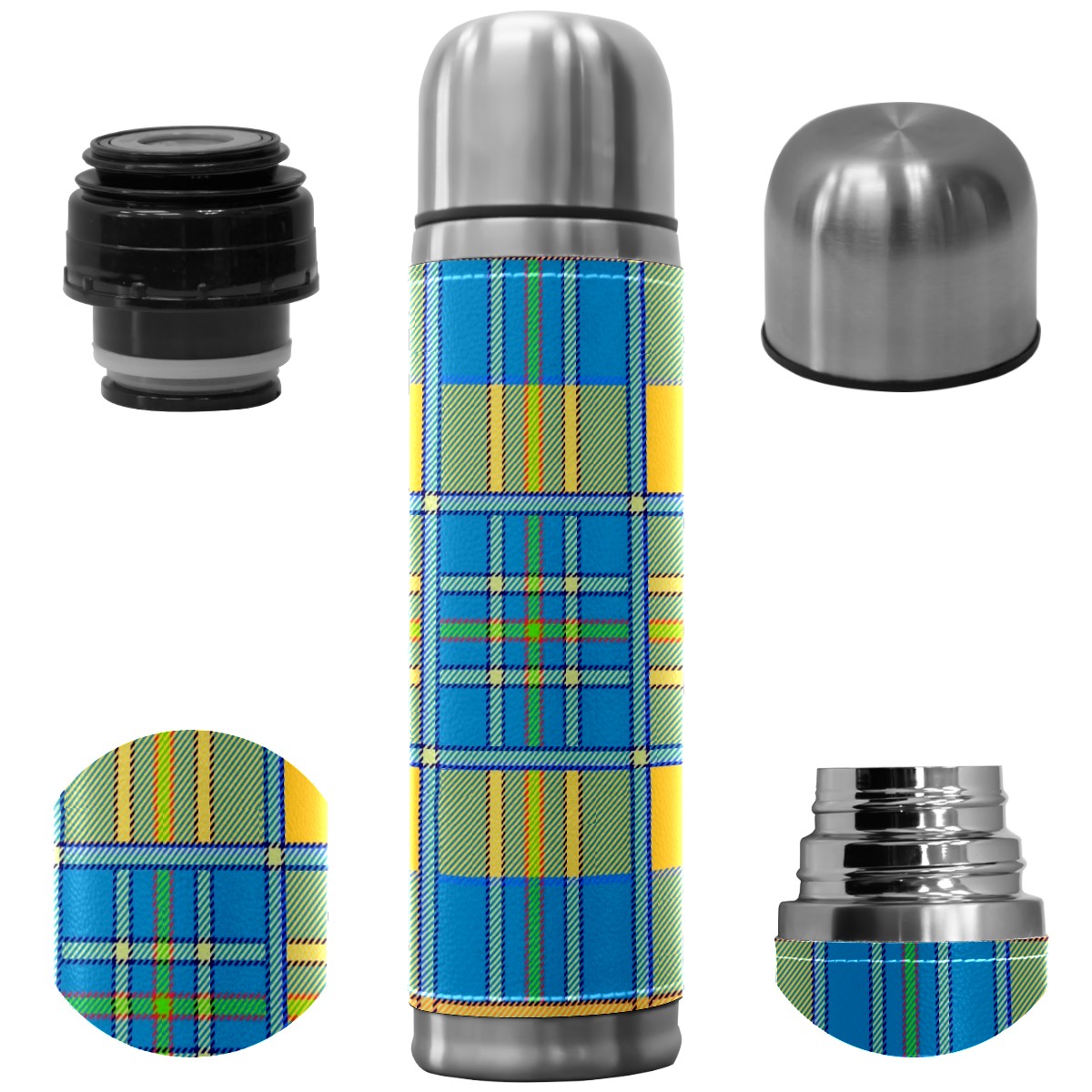 Water Bottle Plaid Tartan Scottish Blue Yellow Stainless Steel PU Leather Vacuum Insulated Travel Mug 17OZ Double Walled Coffee Cup Flask