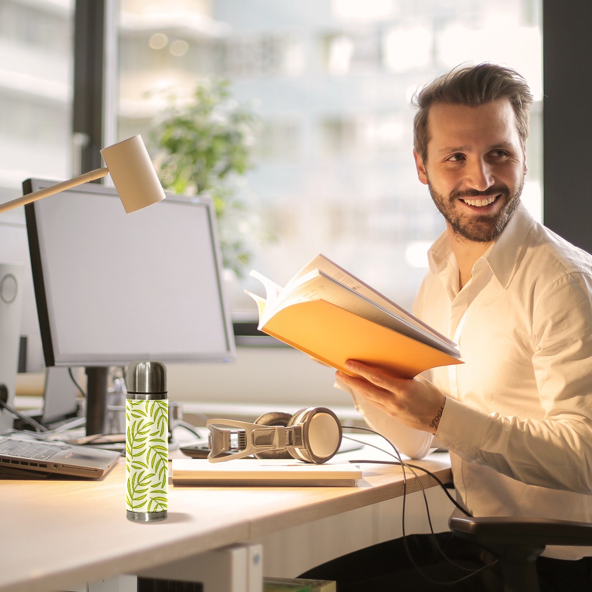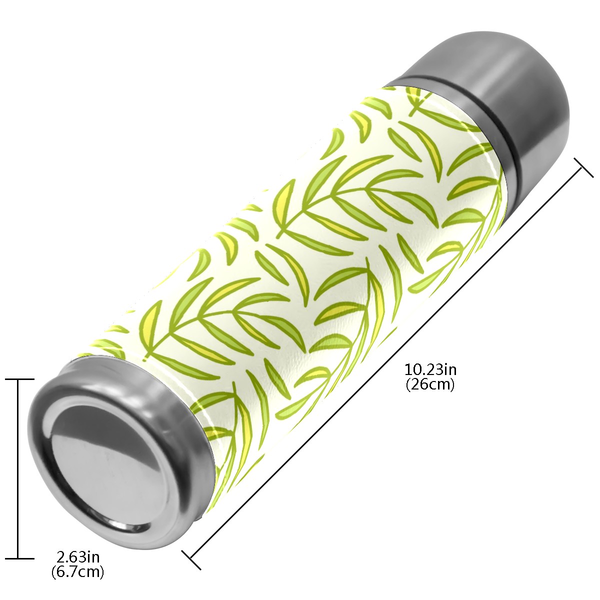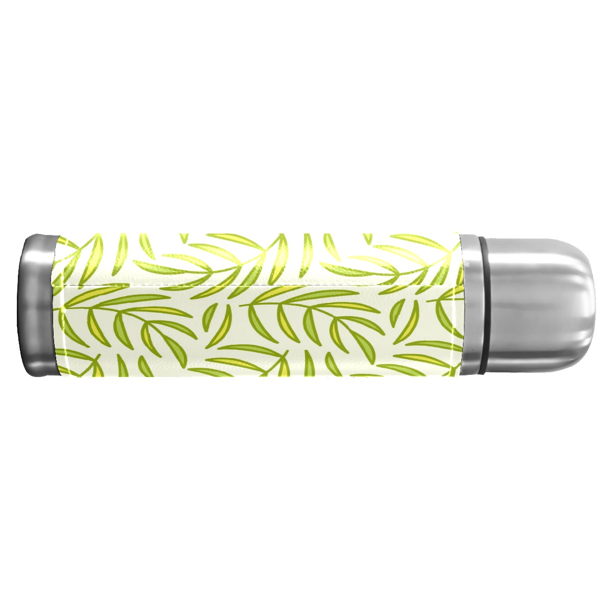 Water Bottle Green Leaves Pattern Seamless Stainless Steel PU Leather Vacuum Insulated Travel Mug 17OZ Double Walled Coffee Cup Flask