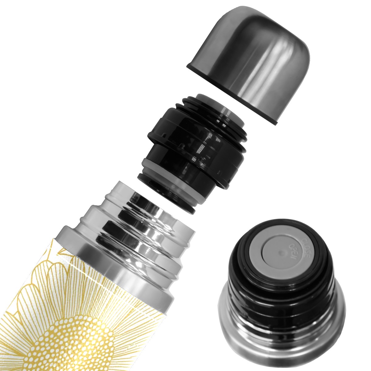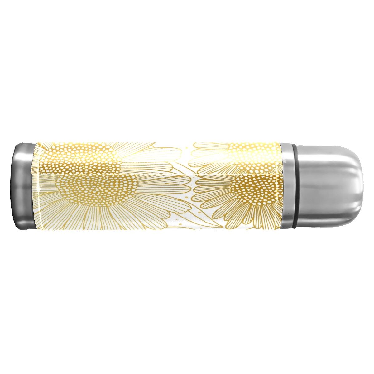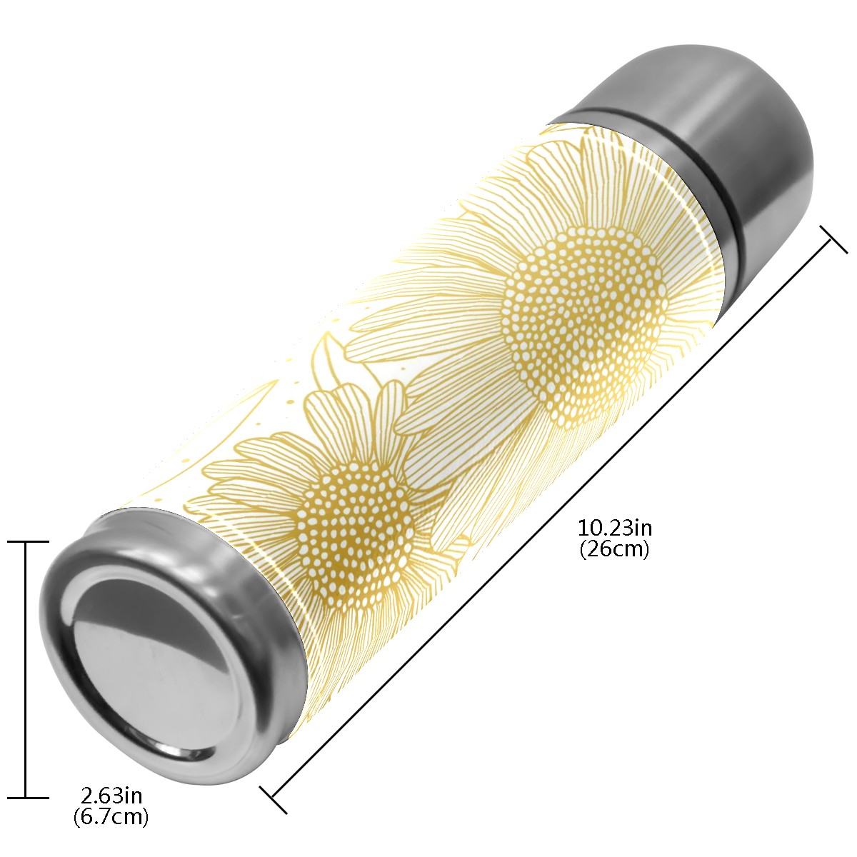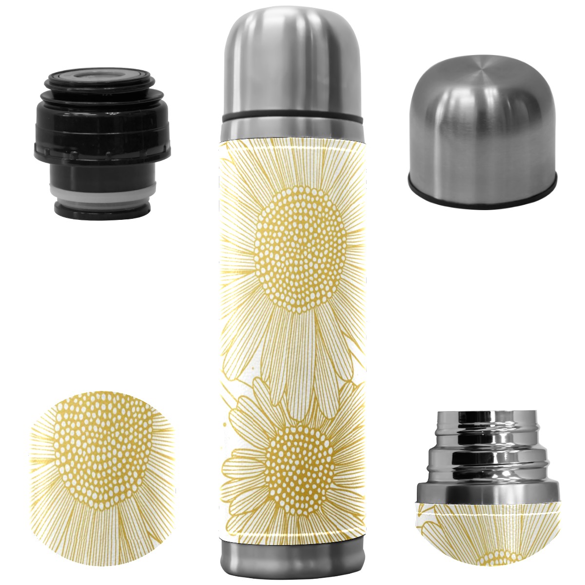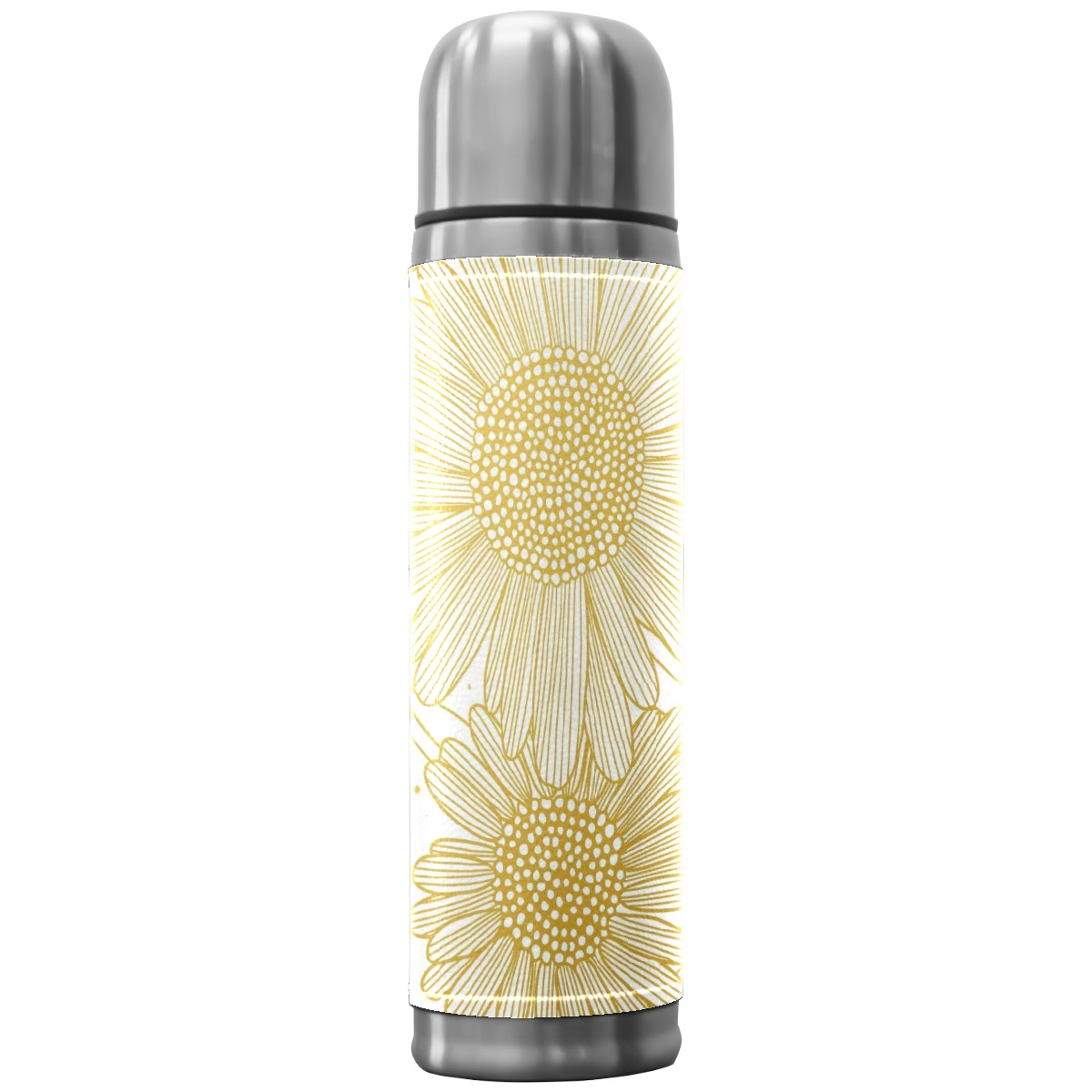 Water Bottle Golden Hand Drawn Sunflower Pattern Stainless Steel PU Leather Vacuum Insulated Travel Mug 17OZ Double Walled Coffee Cup Flask