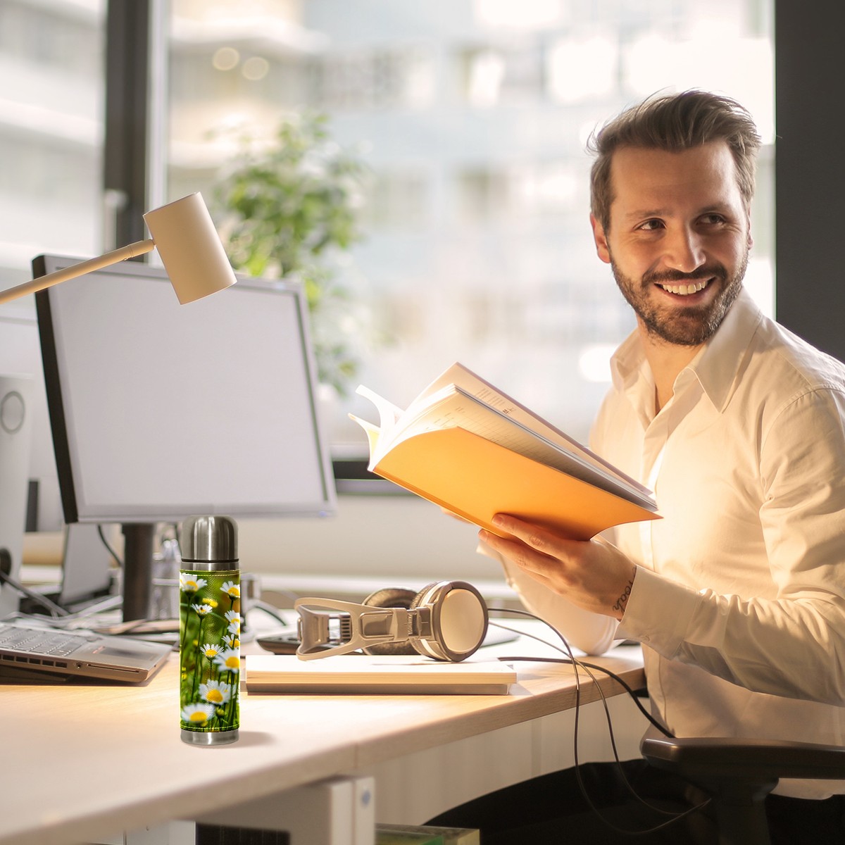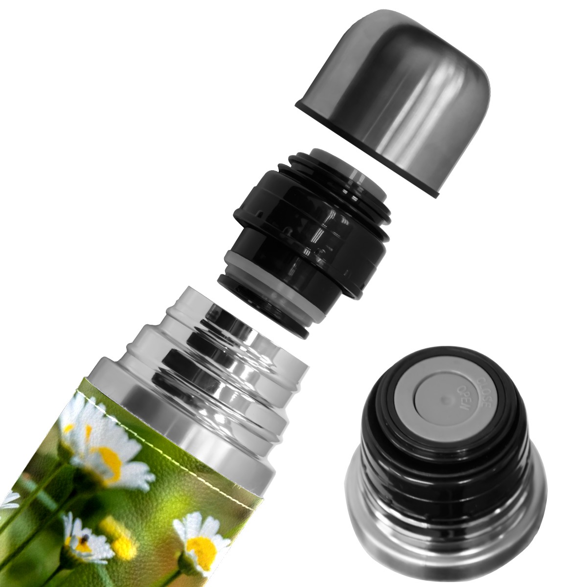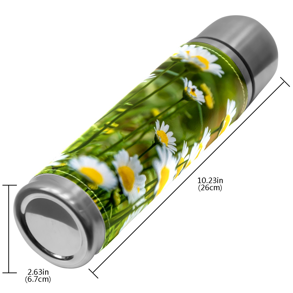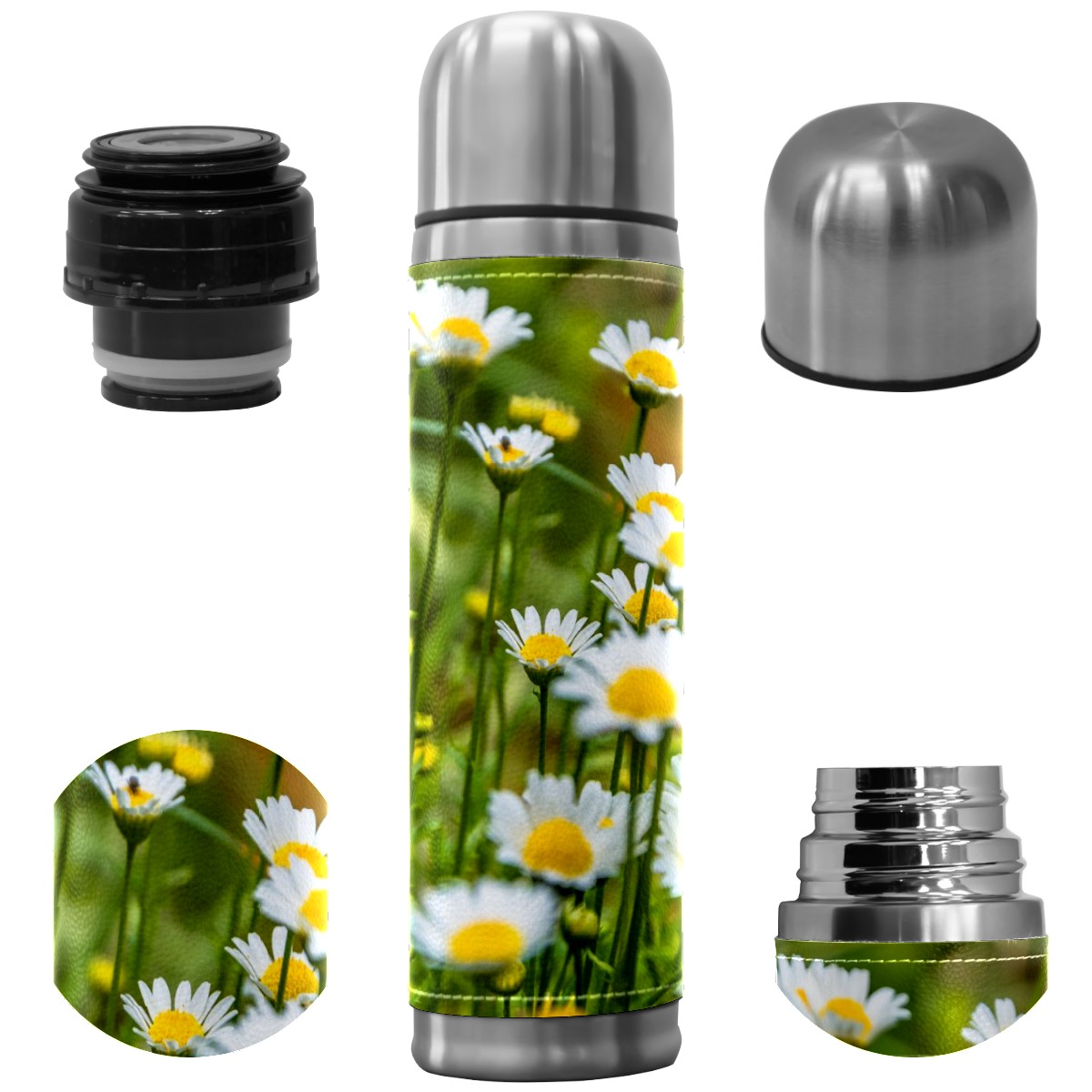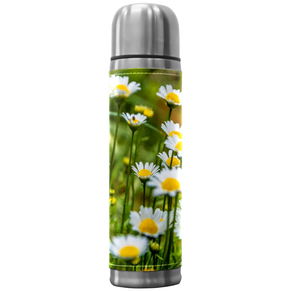 Water Bottle Field Full Daisies Plant Stainless Steel PU Leather Vacuum Insulated Travel Mug 17OZ Double Walled Coffee Cup Flask