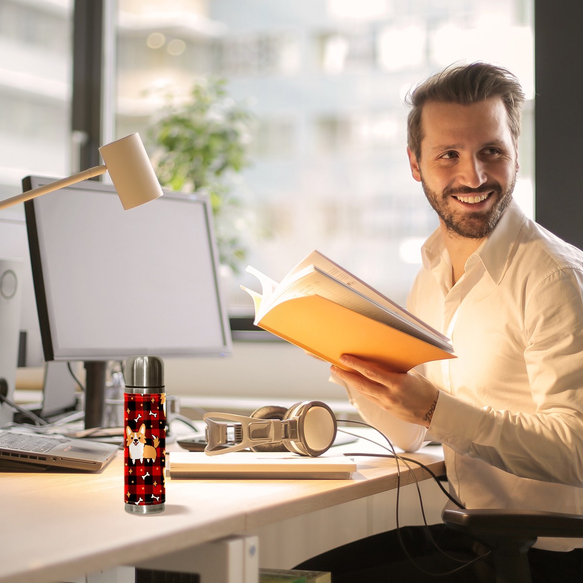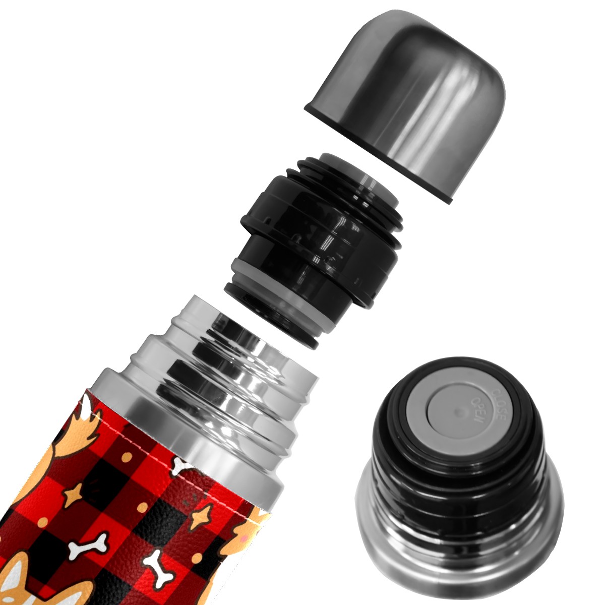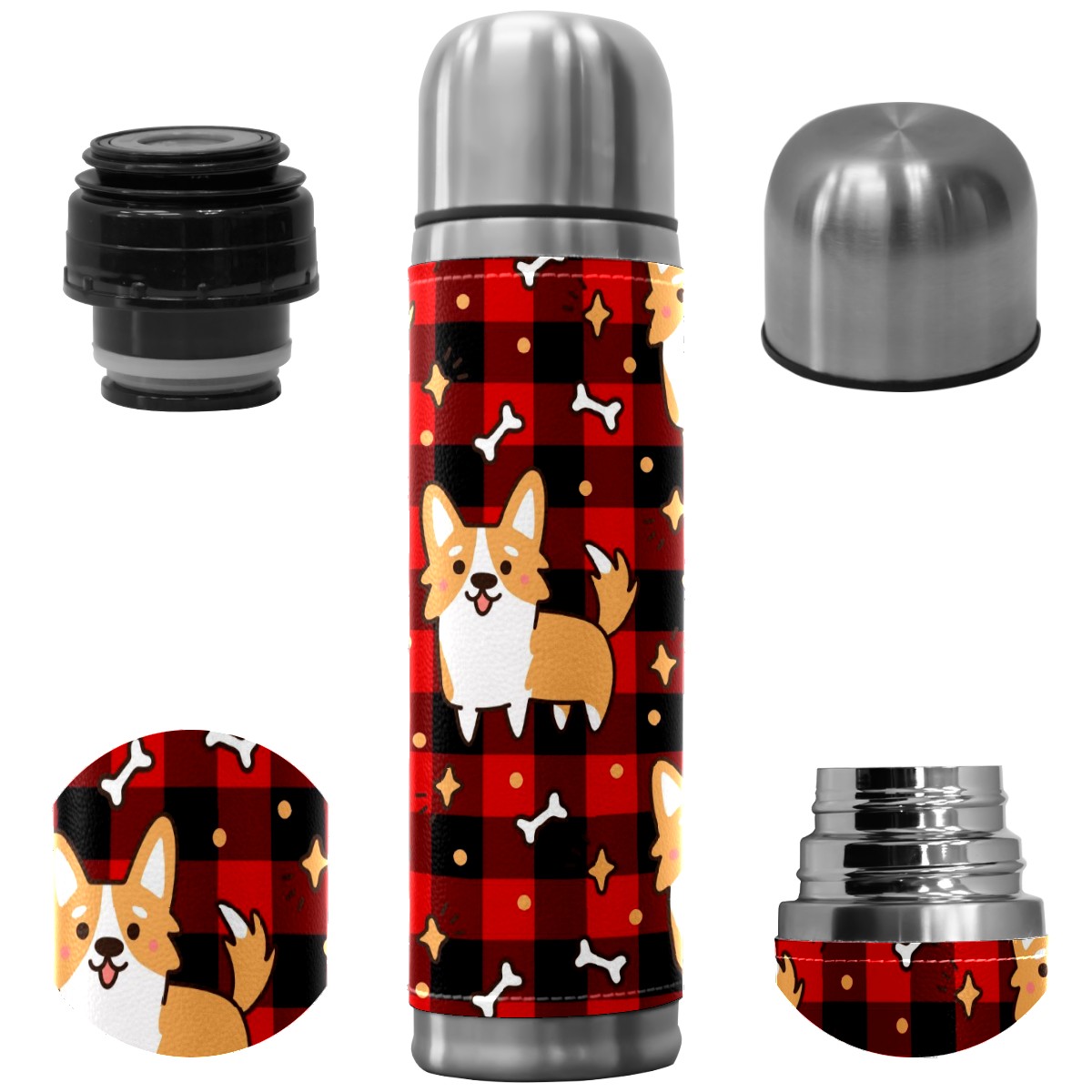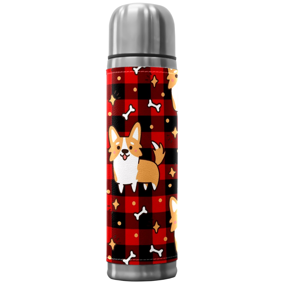 Water Bottle Cute Cirgi Dg Bone Star Red Black Plaid Stainless Steel PU Leather Vacuum Insulated Travel Mug 17OZ Double Walled Coffee Cup Flask