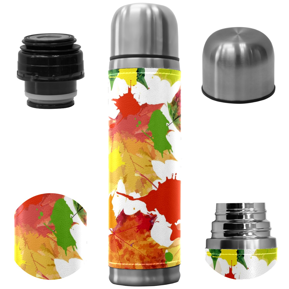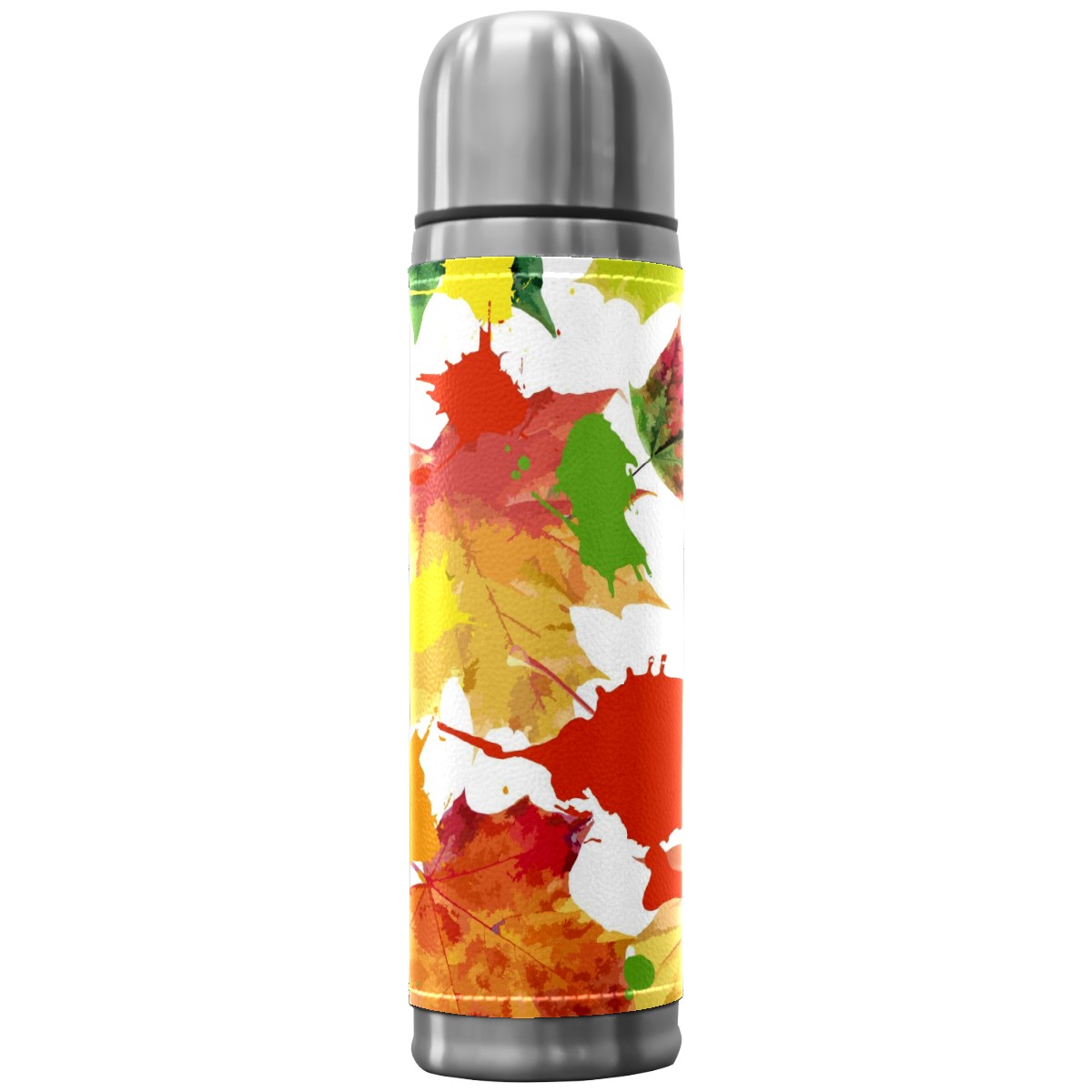 Water Bottle Doodle Autumn Maples Green Orange Stainless Steel PU Leather Vacuum Insulated Travel Mug 17OZ Double Walled Coffee Cup Flask