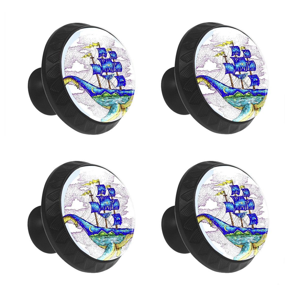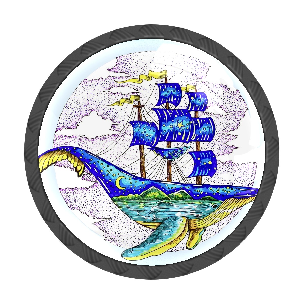 Round Cabinet Door Knobs Whale And Sailboat Decorative Pulls Handles Cupboard Wardrobe Furniture Handles