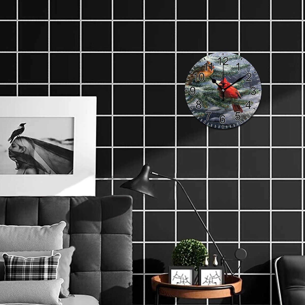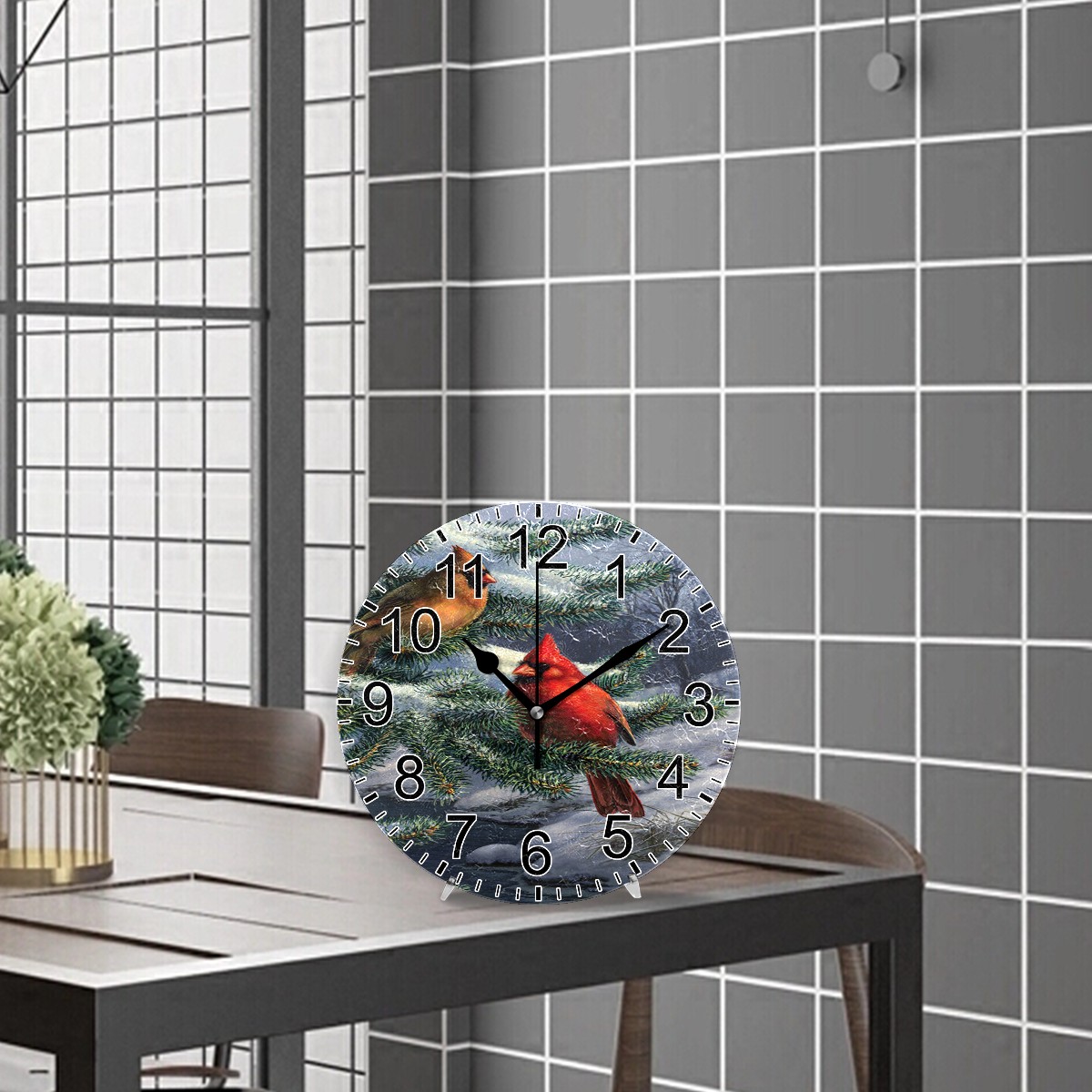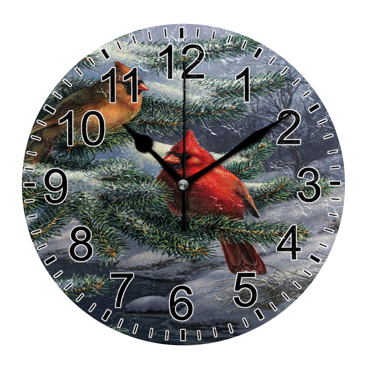 Wall Clock Home Decorative Winter Cardinal Birds Silent Non Ticking Acrylic 10 Inch Office School Round Clock Art