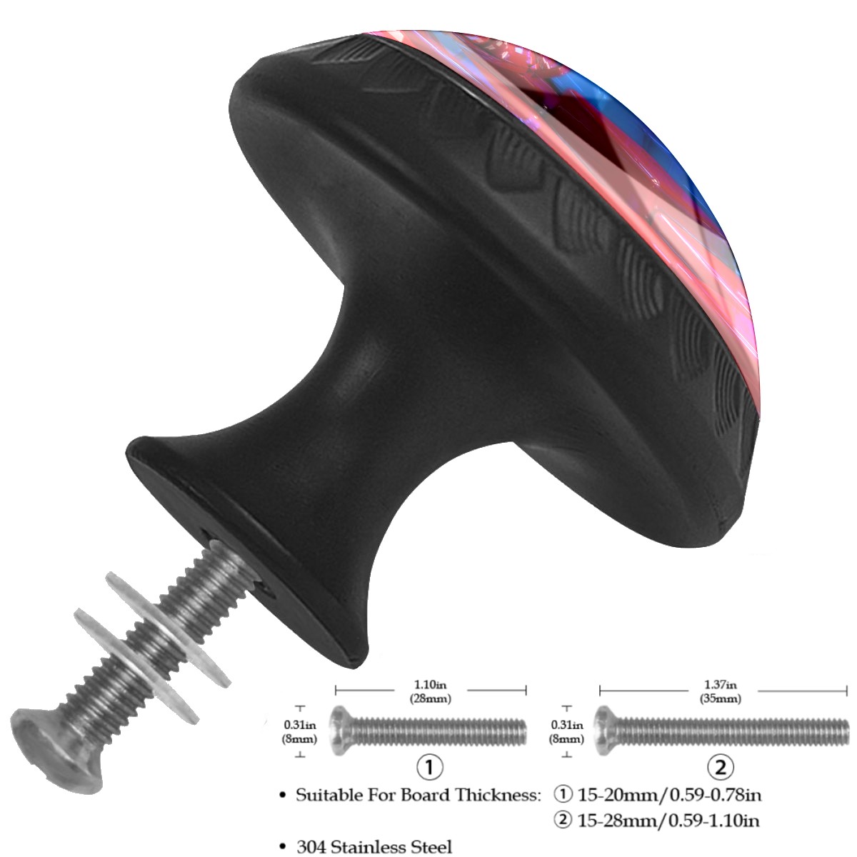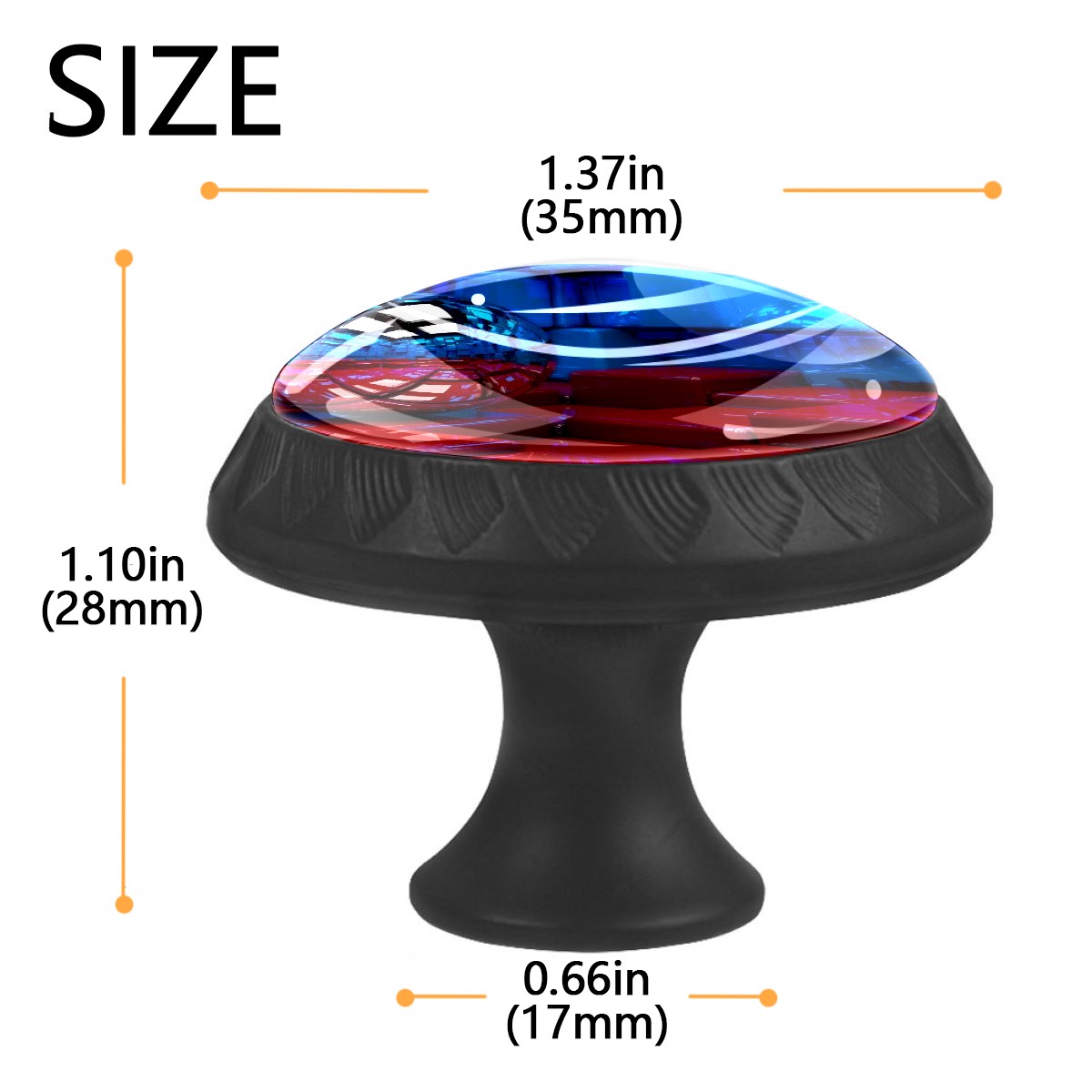 <p><b>Product Specification</b></p><p>Crystal Diameter: 30mm(1.18 inch)</p><p>Knob Height: 28mm(1.10 inch)</p><p>Base Diameter: 17mm(0.66 inch)</p><p>&nbsp;</p><p><b>Package Includes</b></p><p>4 Piece Drawer Pull Knob</p><p>4 Piece Screw</p><p>&nbsp;</p><p><b>Installation Steps</b></p><p>Find the position where you want to install on the board and drill a hole.Then pass through the screw from the back of board anf thread tight to the knob.</p>