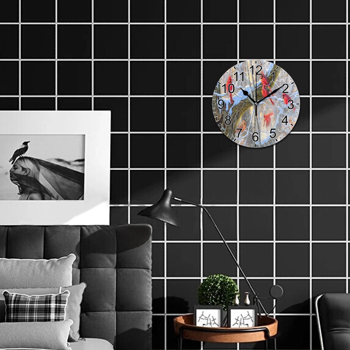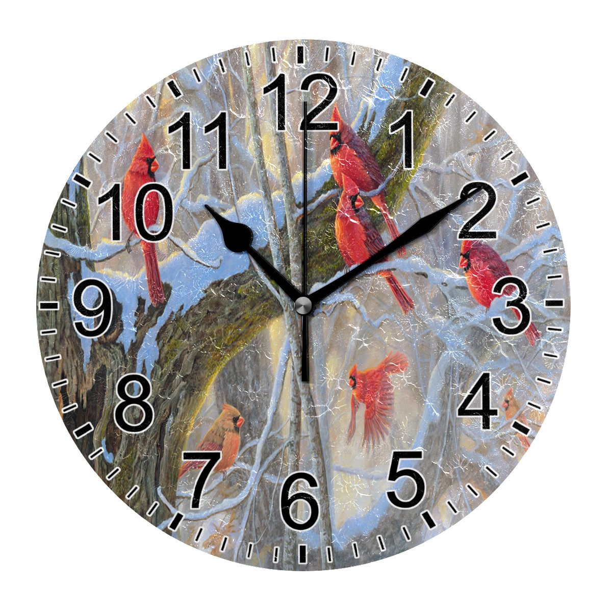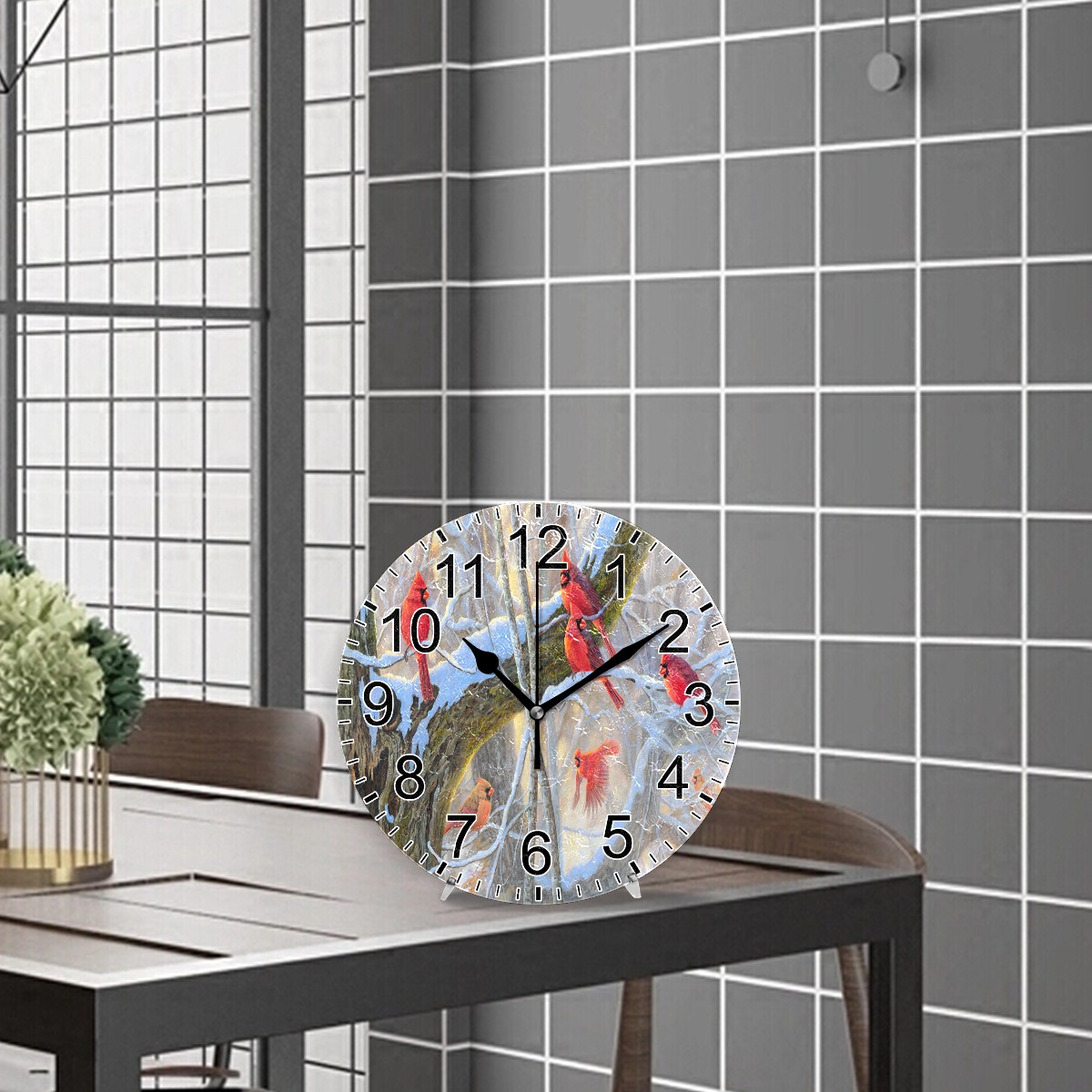 Wall Clock Home Decorative Winter Cardinal Bird On Tree Silent Non Ticking Acrylic 10 Inch Office School Round Clock Art