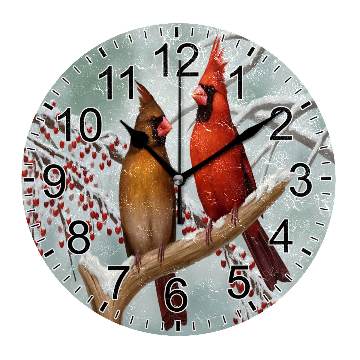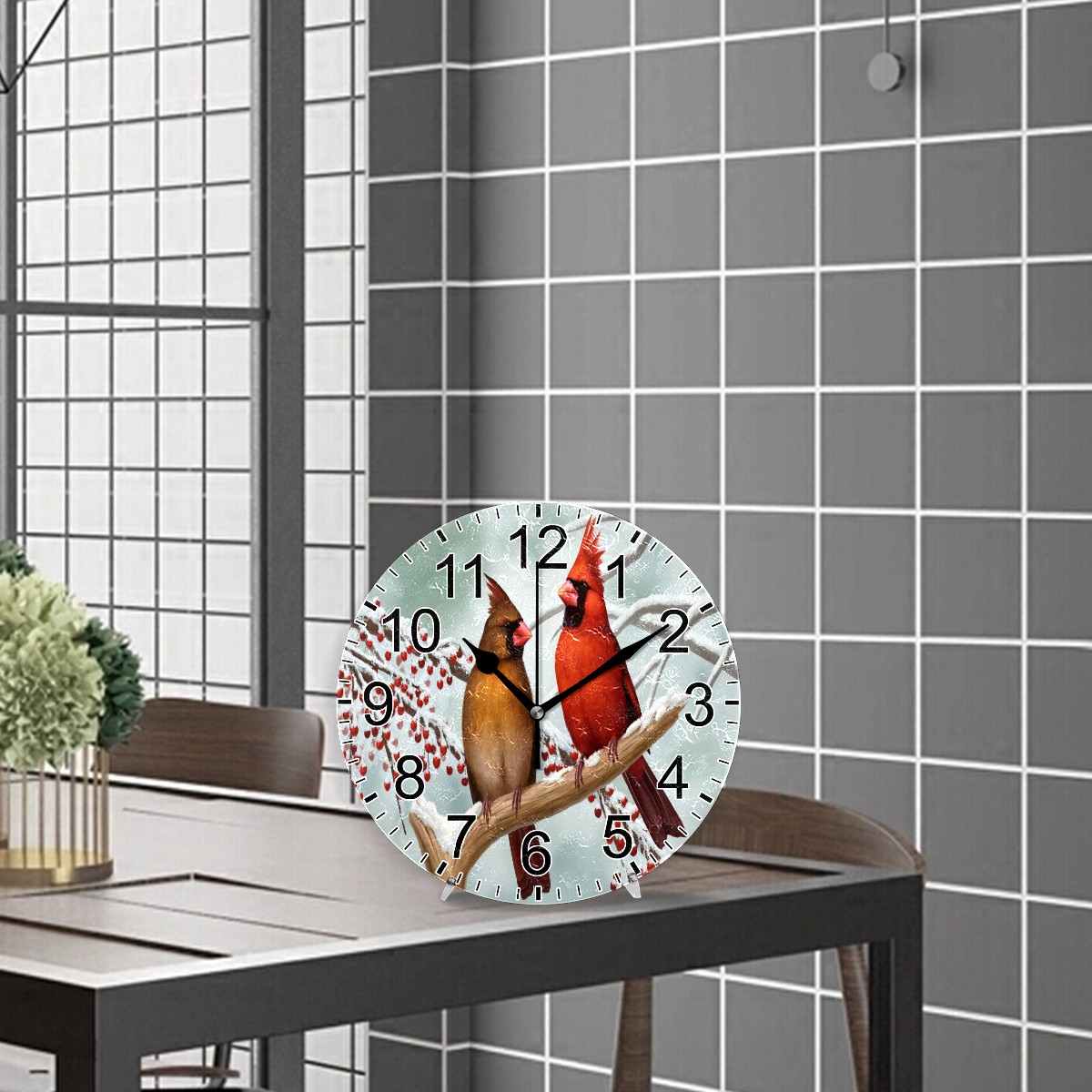 Wall Clock Home Decorative Winter Cardinal Bird Silent Non Ticking Acrylic 10 Inch Office School Round Clock Art