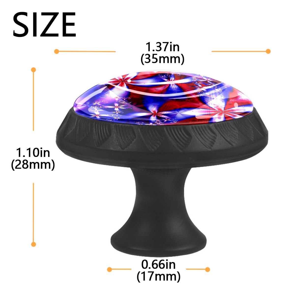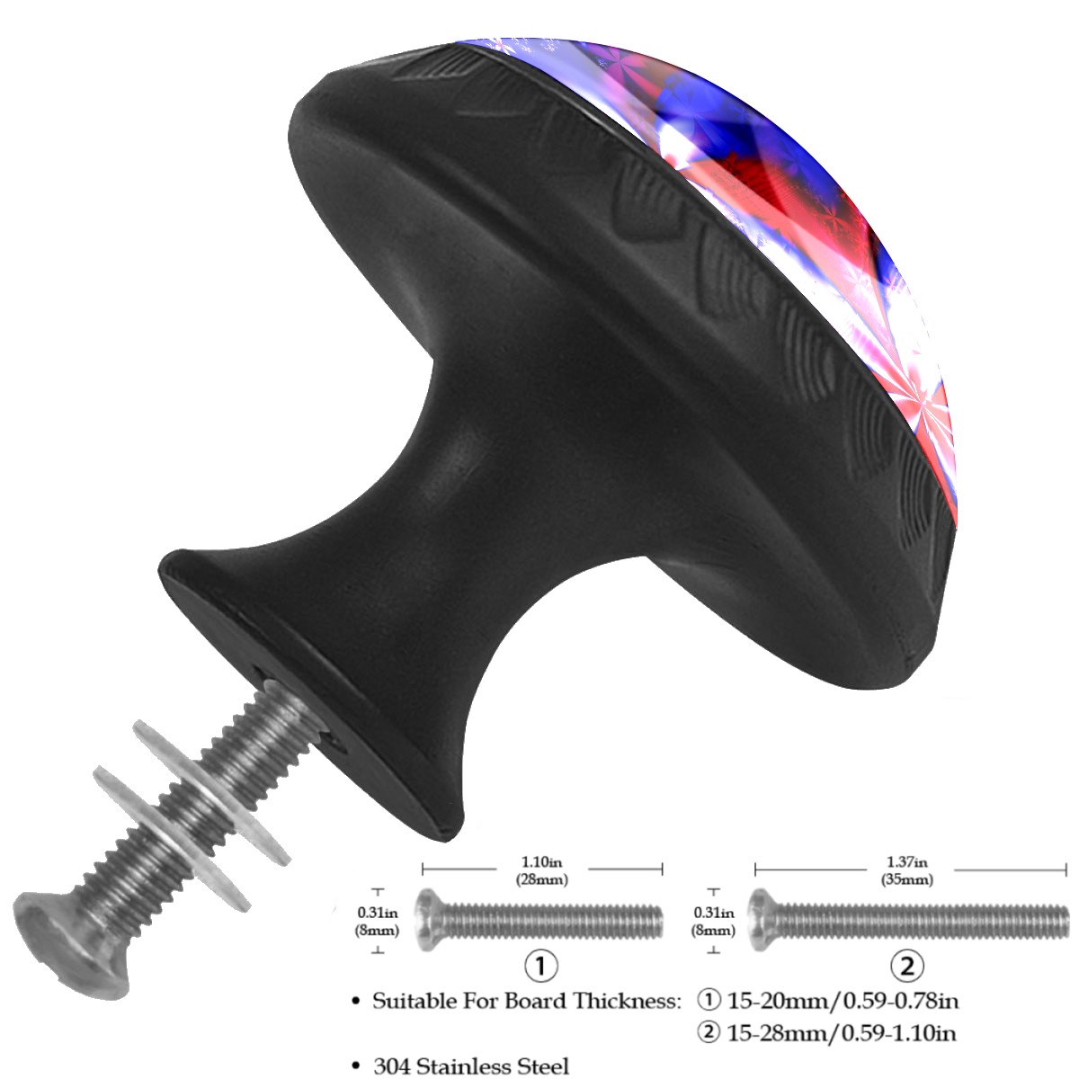 <p><b>Product Specification</b></p><p>Crystal Diameter: 30mm(1.18 inch)</p><p>Knob Height: 28mm(1.10 inch)</p><p>Base Diameter: 17mm(0.66 inch)</p><p>&nbsp;</p><p><b>Package Includes</b></p><p>4 Piece Drawer Pull Knob</p><p>4 Piece Screw</p><p>&nbsp;</p><p><b>Installation Steps</b></p><p>Find the position where you want to install on the board and drill a hole.Then pass through the screw from the back of board anf thread tight to the knob.</p>