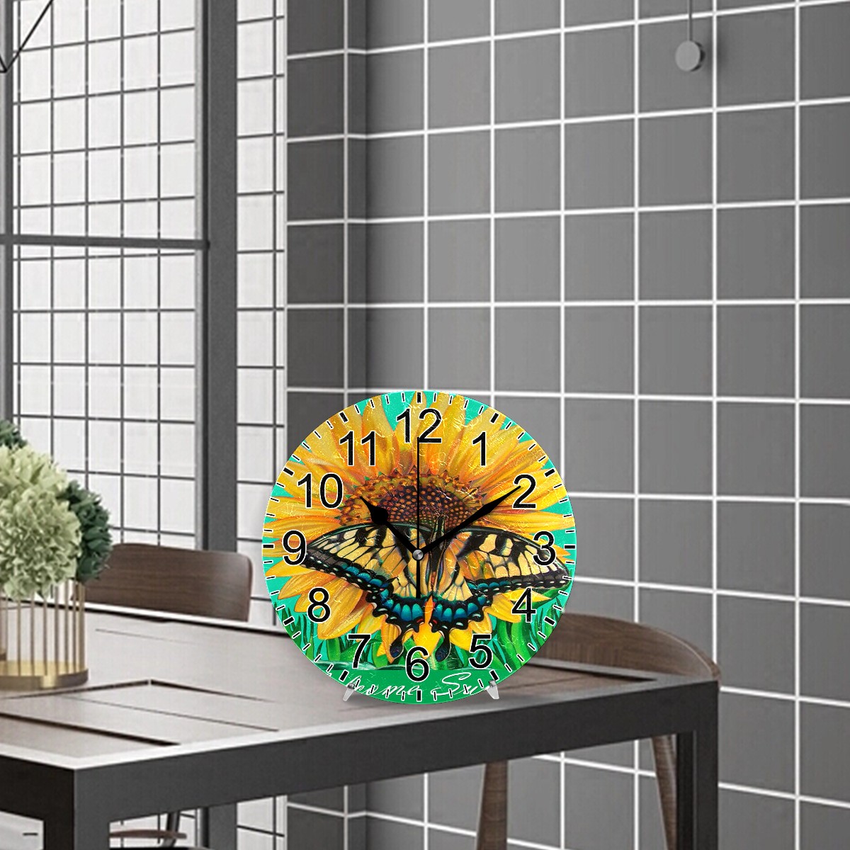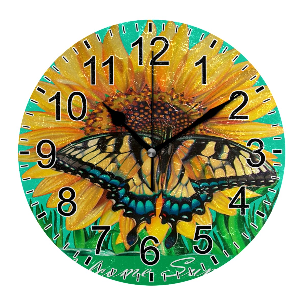 Wall Clock Home Decorative Welcome Summer Sunflowers Butterfly Silent Non Ticking Acrylic 10 Inch Office School Round Clock Art
