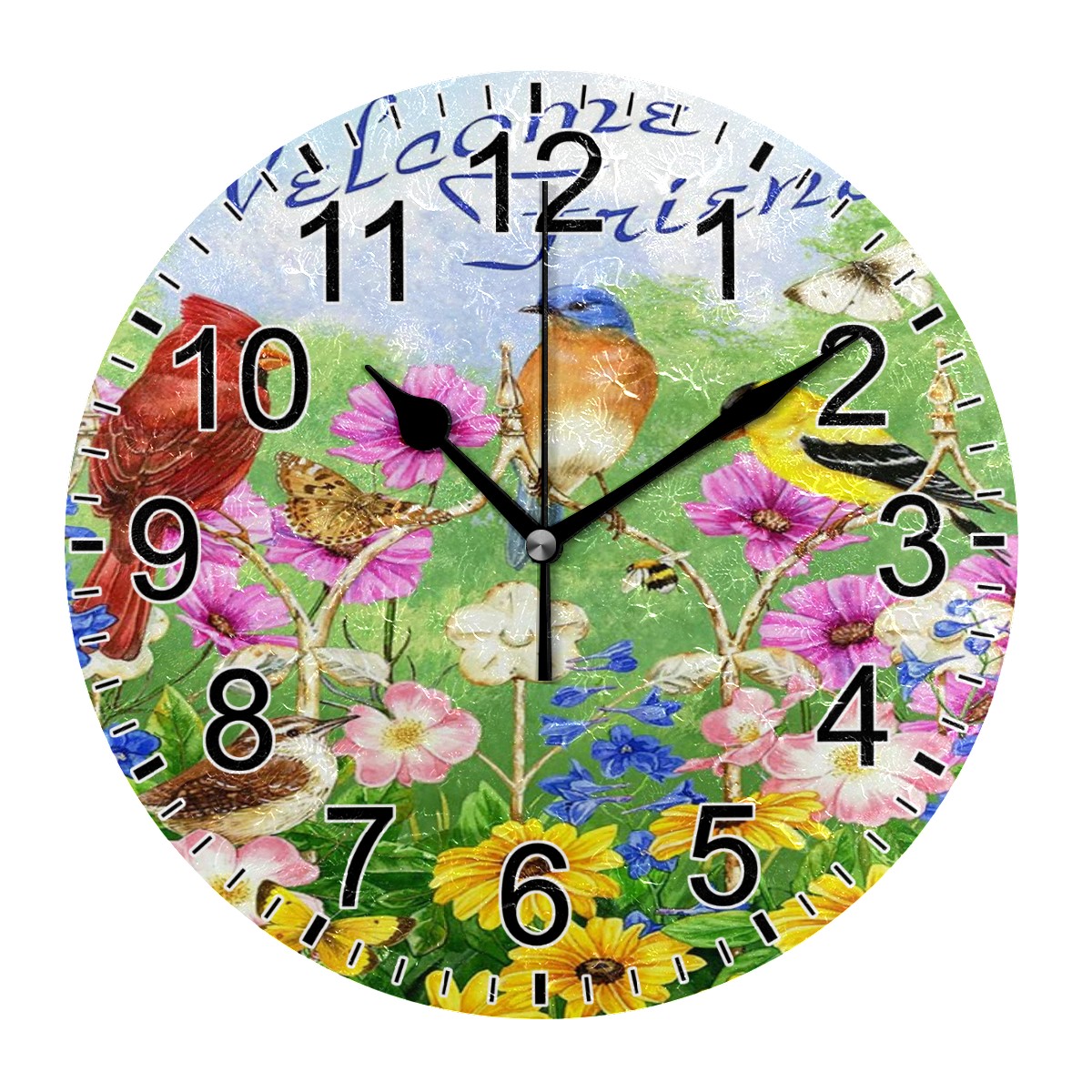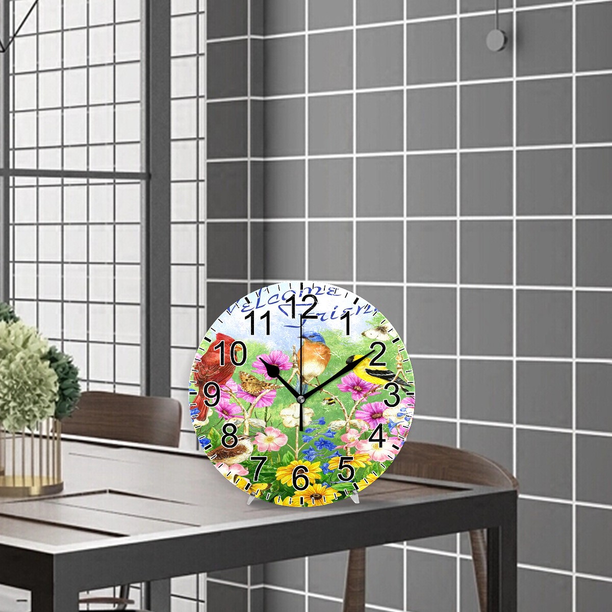 Wall Clock Home Decorative Welcome Friends Cardinal Bird Sunflower Silent Non Ticking Acrylic 10 Inch Office School Round Clock Art