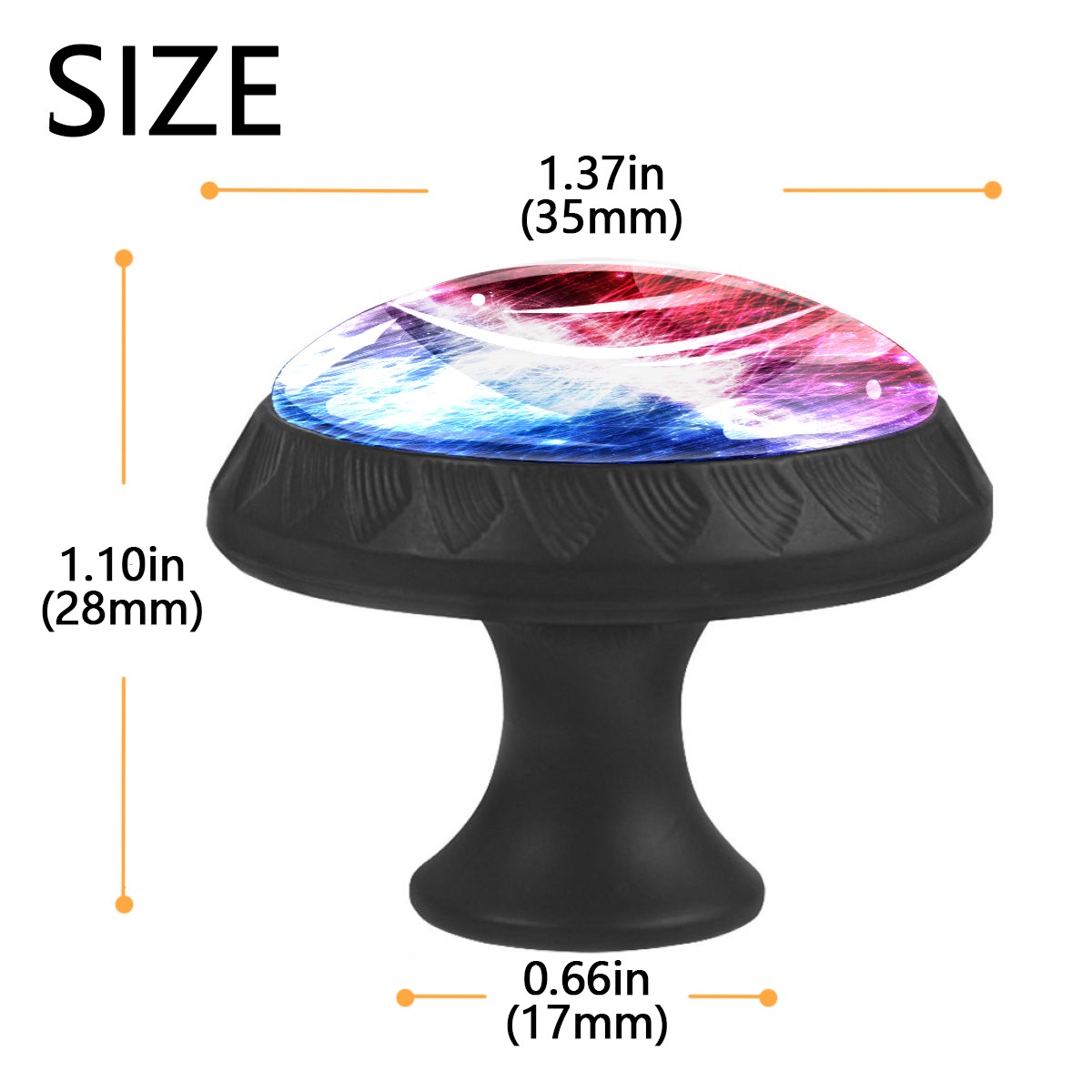 <p><b>Product Specification</b></p><p>Crystal Diameter: 30mm(1.18 inch)</p><p>Knob Height: 28mm(1.10 inch)</p><p>Base Diameter: 17mm(0.66 inch)</p><p>&nbsp;</p><p><b>Package Includes</b></p><p>4 Piece Drawer Pull Knob</p><p>4 Piece Screw</p><p>&nbsp;</p><p><b>Installation Steps</b></p><p>Find the position where you want to install on the board and drill a hole.Then pass through the screw from the back of board anf thread tight to the knob.</p>