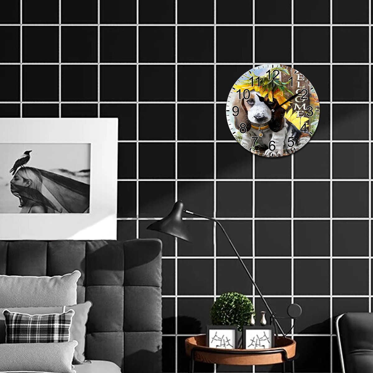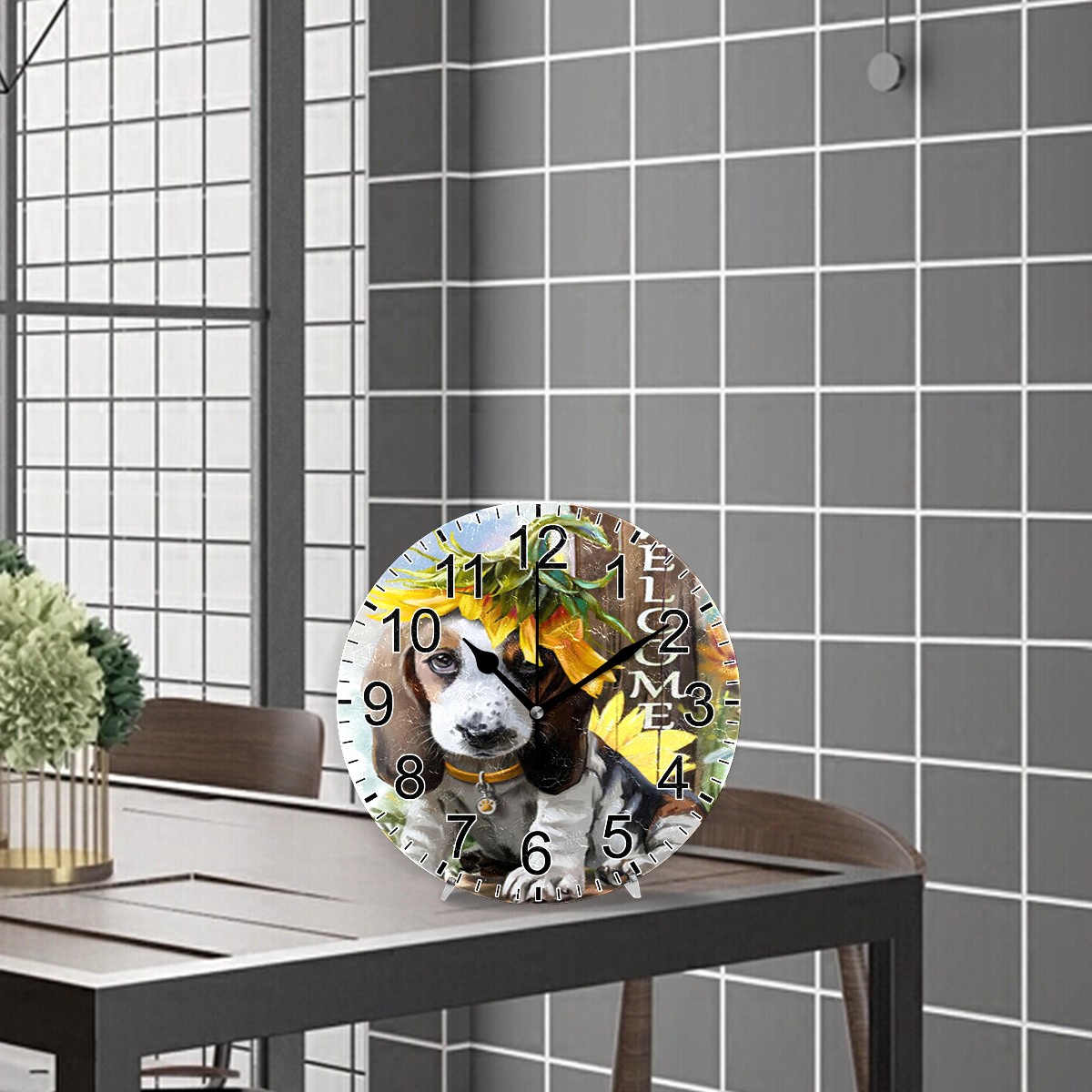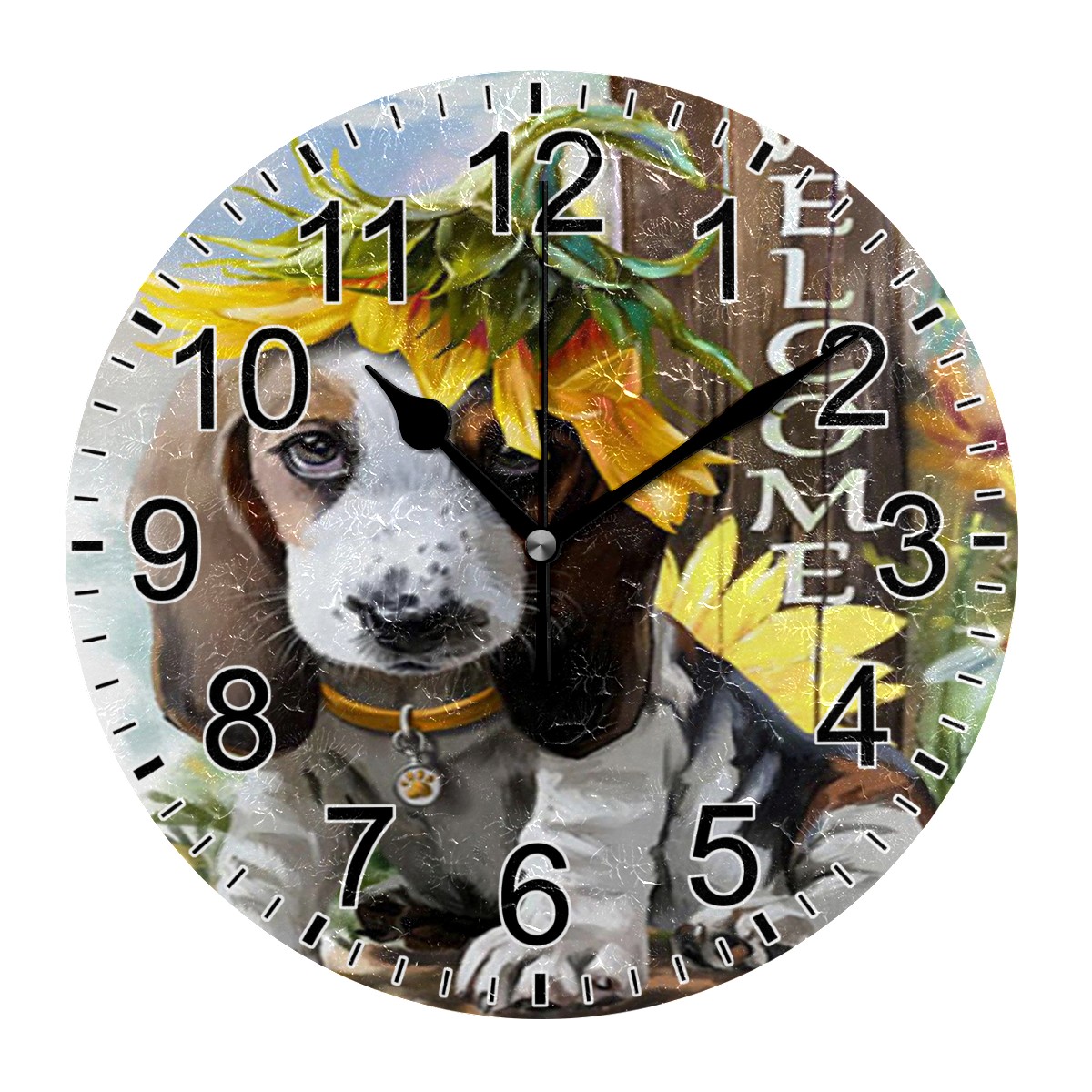 Wall Clock Home Decorative Welcome Cute Dog Silent Non Ticking Acrylic 10 Inch Office School Round Clock Art