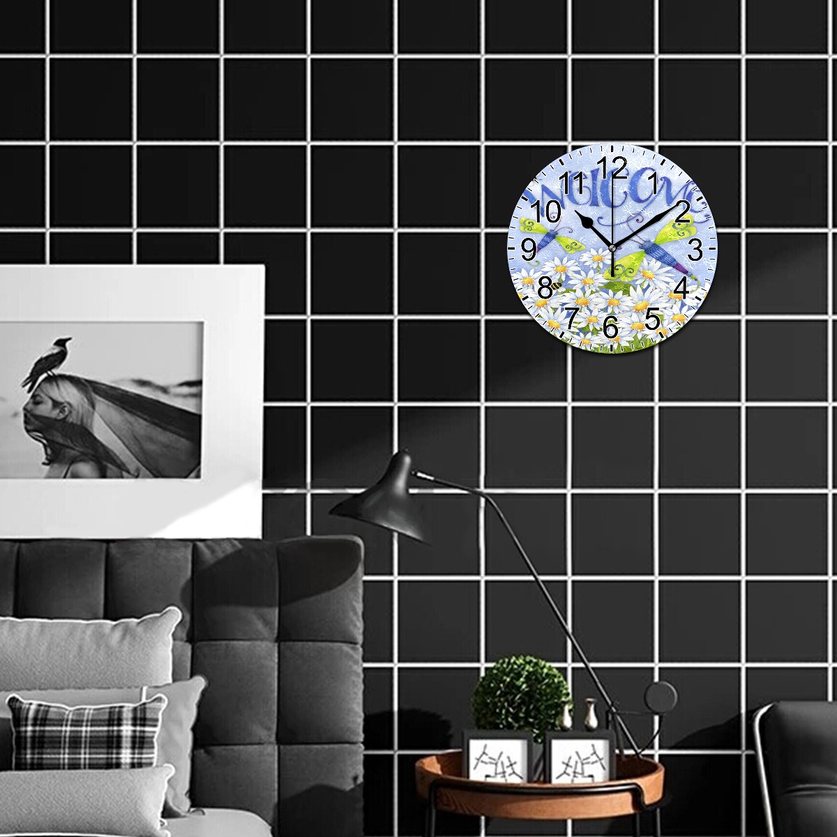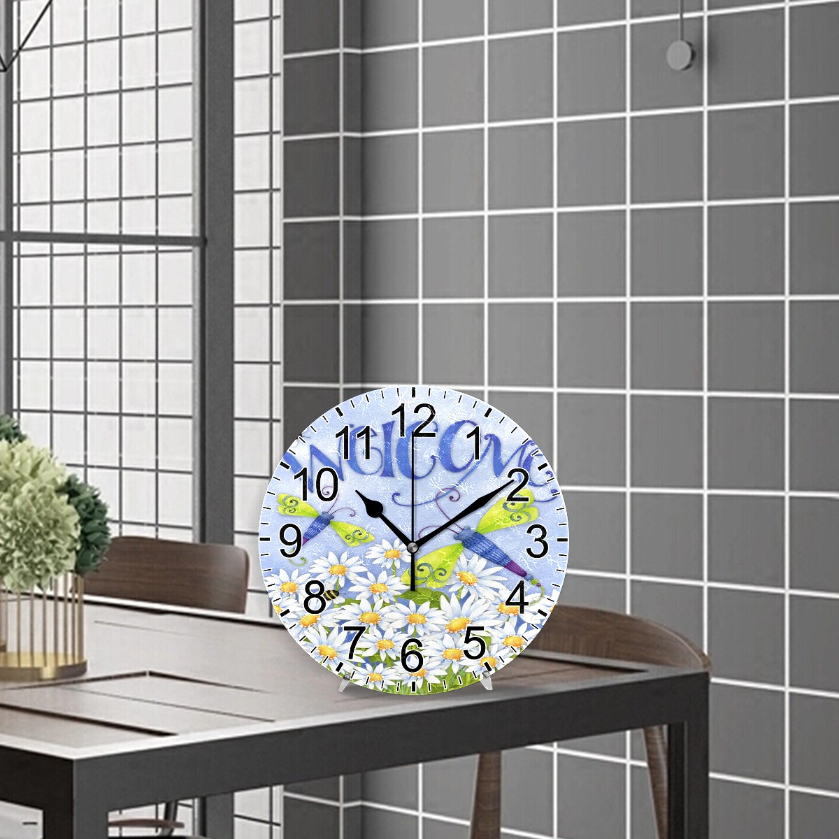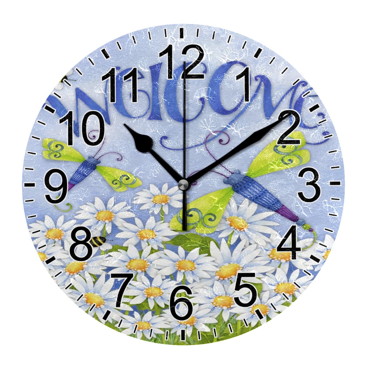 Wall Clock Home Decorative Spring Welcome Dragonfly Daisy Bee Silent Non Ticking Acrylic 10 Inch Office School Round Clock Art