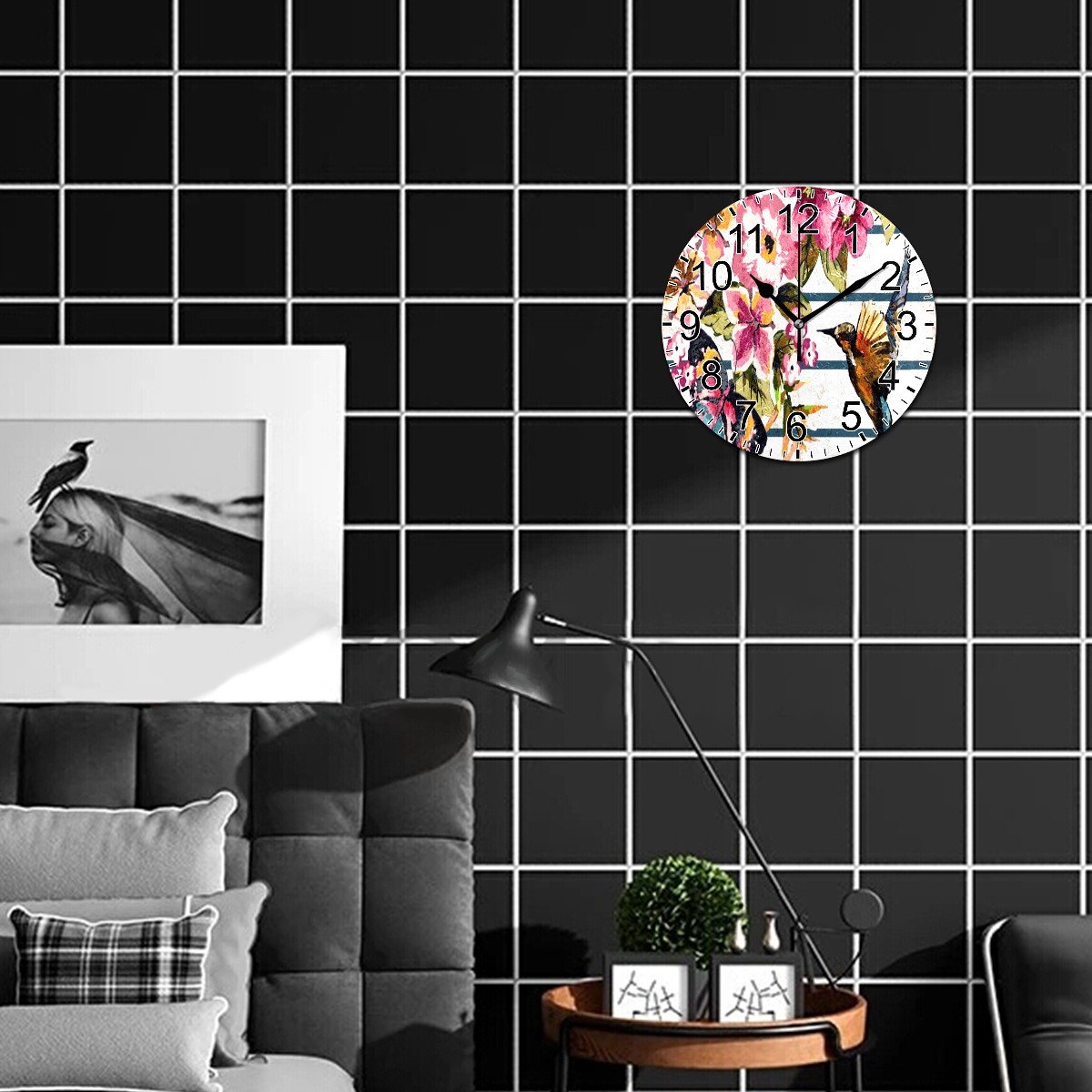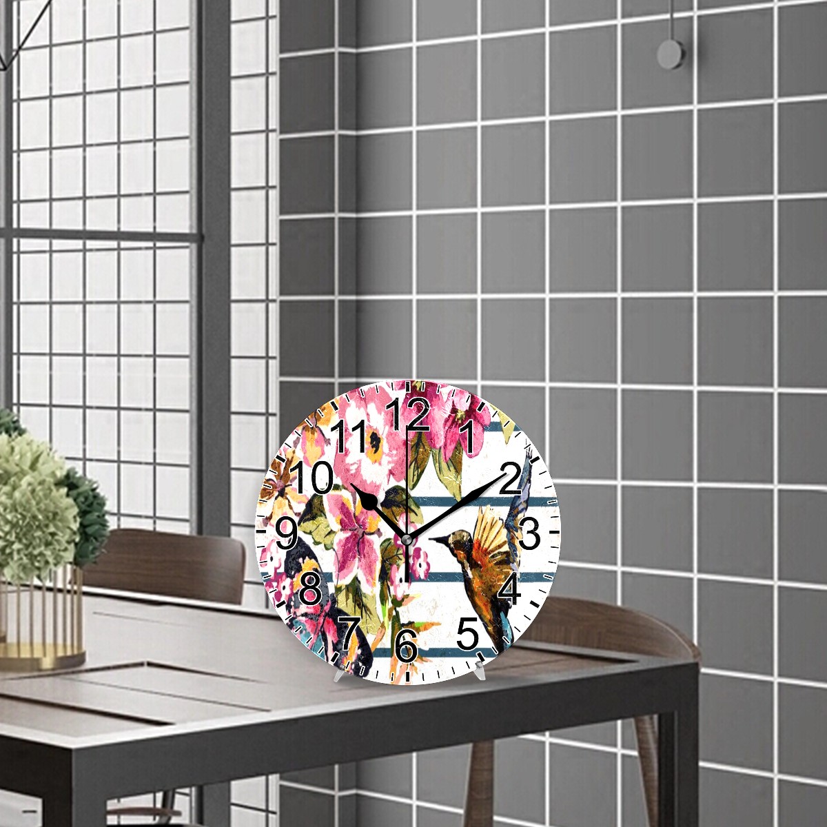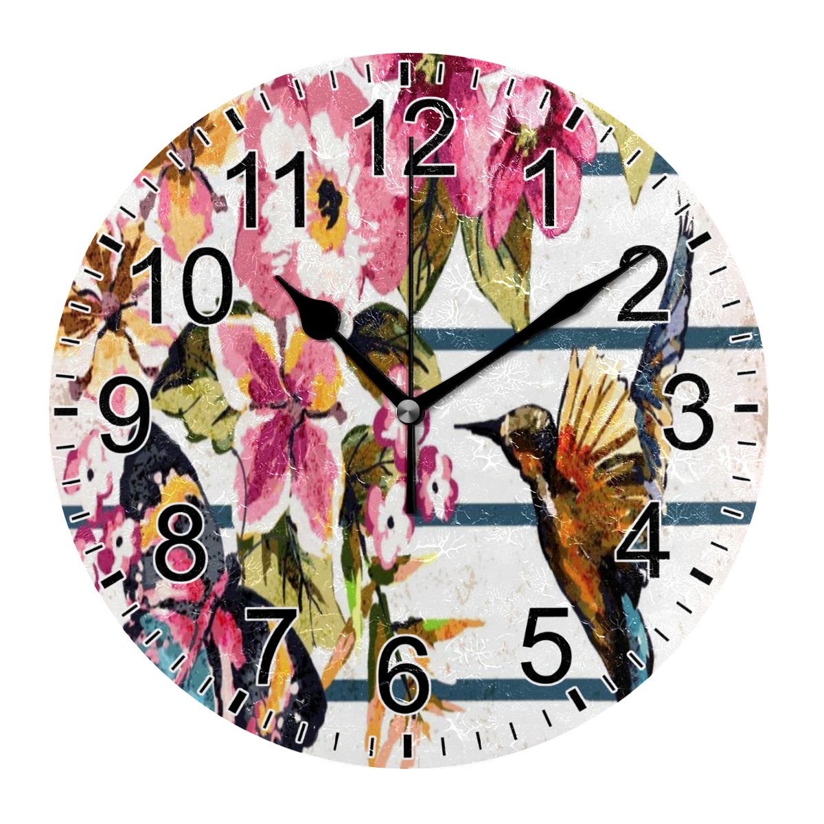 Wall Clock Home Decorative Watercolor Hummingbird Hibiscus Flower Butterfly Silent Non Ticking Acrylic 10 Inch Office School Round Clock Art