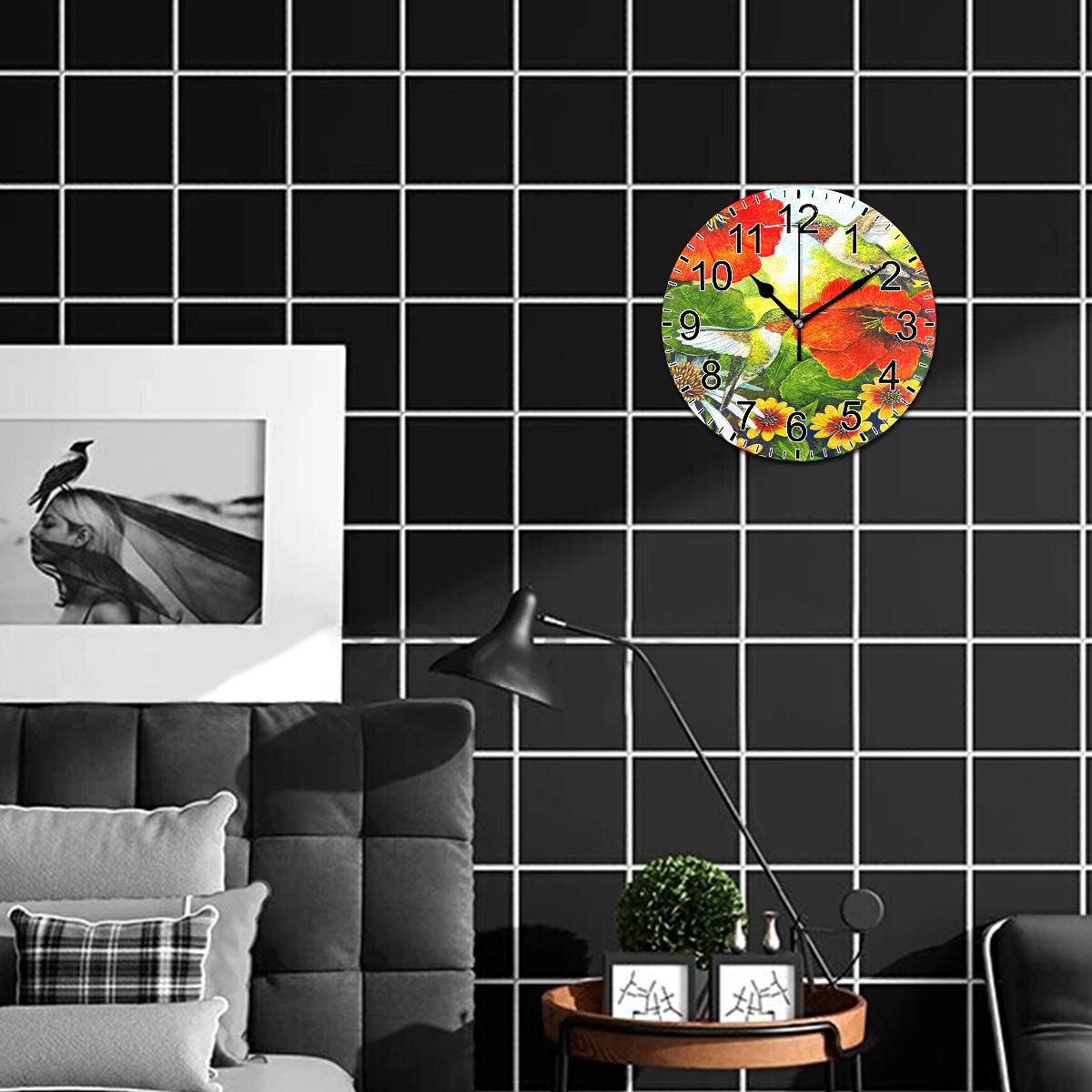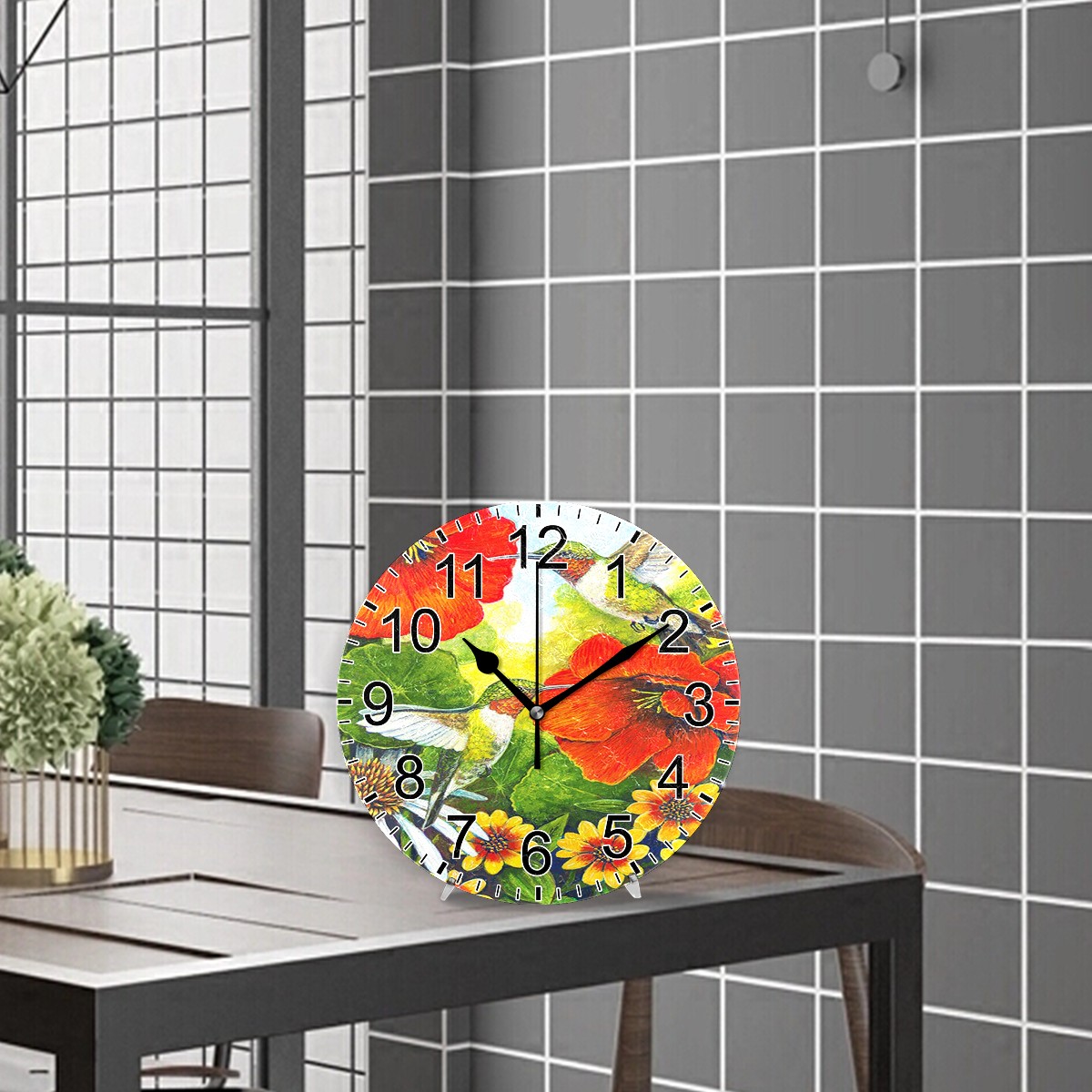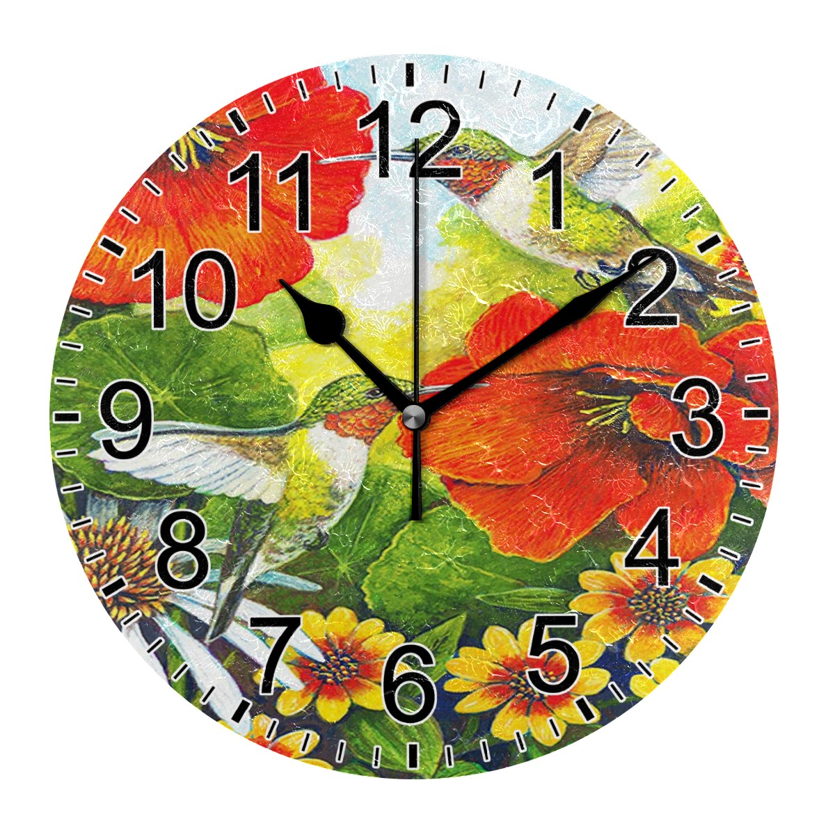 Wall Clock Home Decorative Spring Hummingbird Hibiscus Sunflower Silent Non Ticking Acrylic 10 Inch Office School Round Clock Art