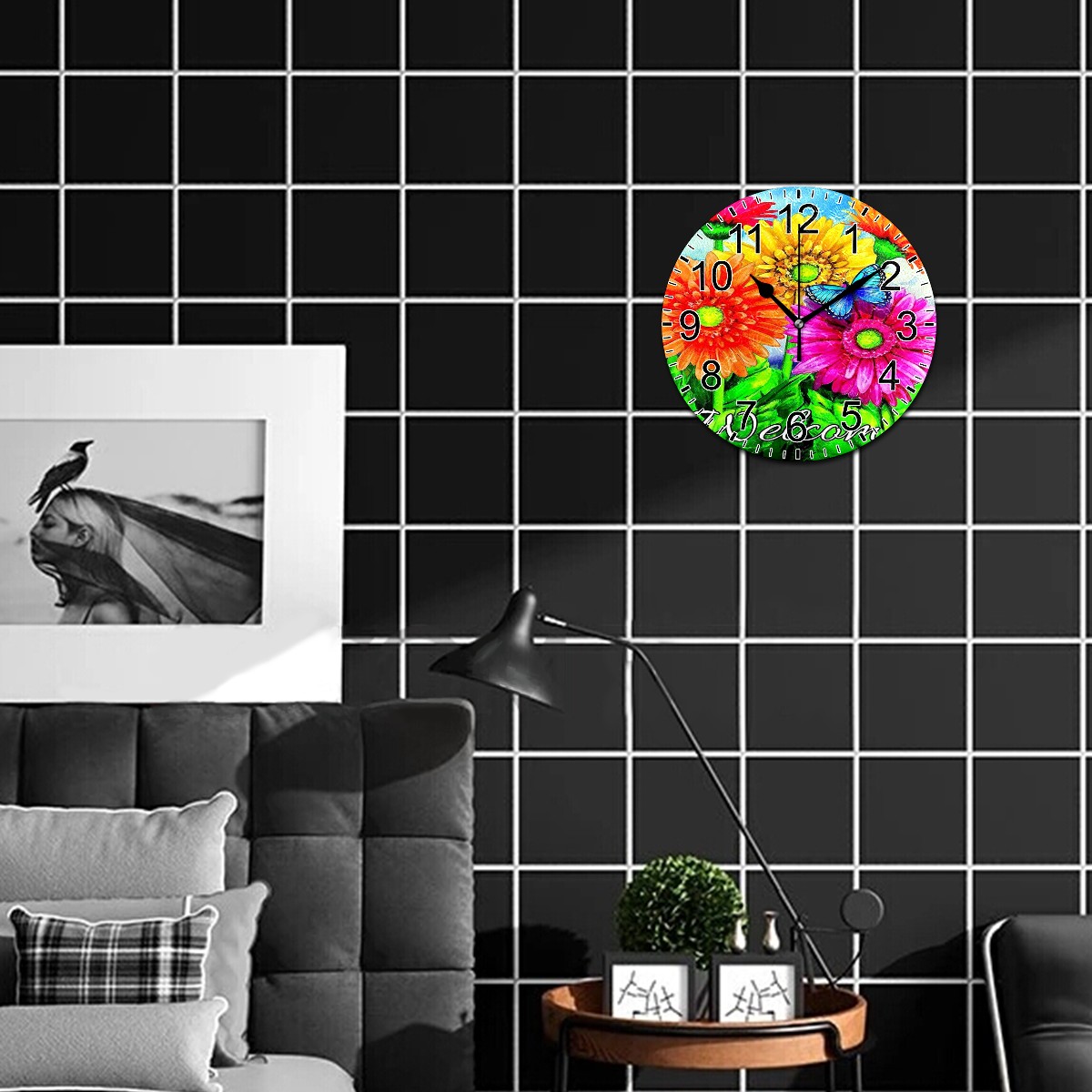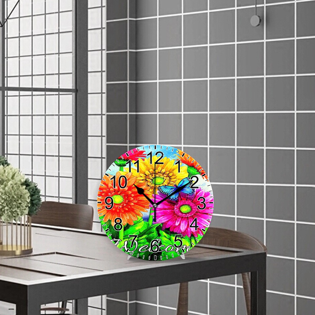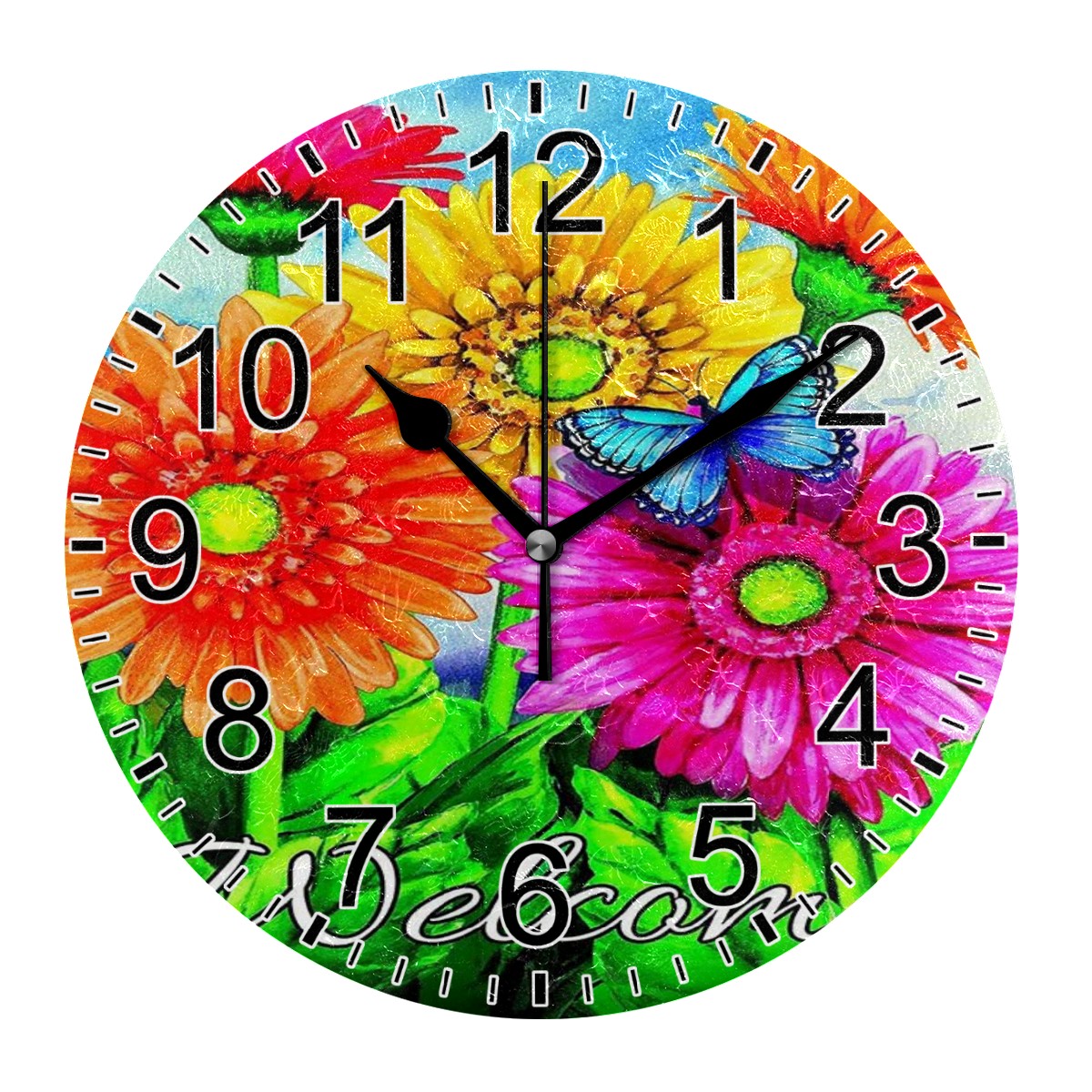 Wall Clock Home Decorative Spring Welcome Butterfly Colorful Sunflower Silent Non Ticking Acrylic 10 Inch Office School Round Clock Art