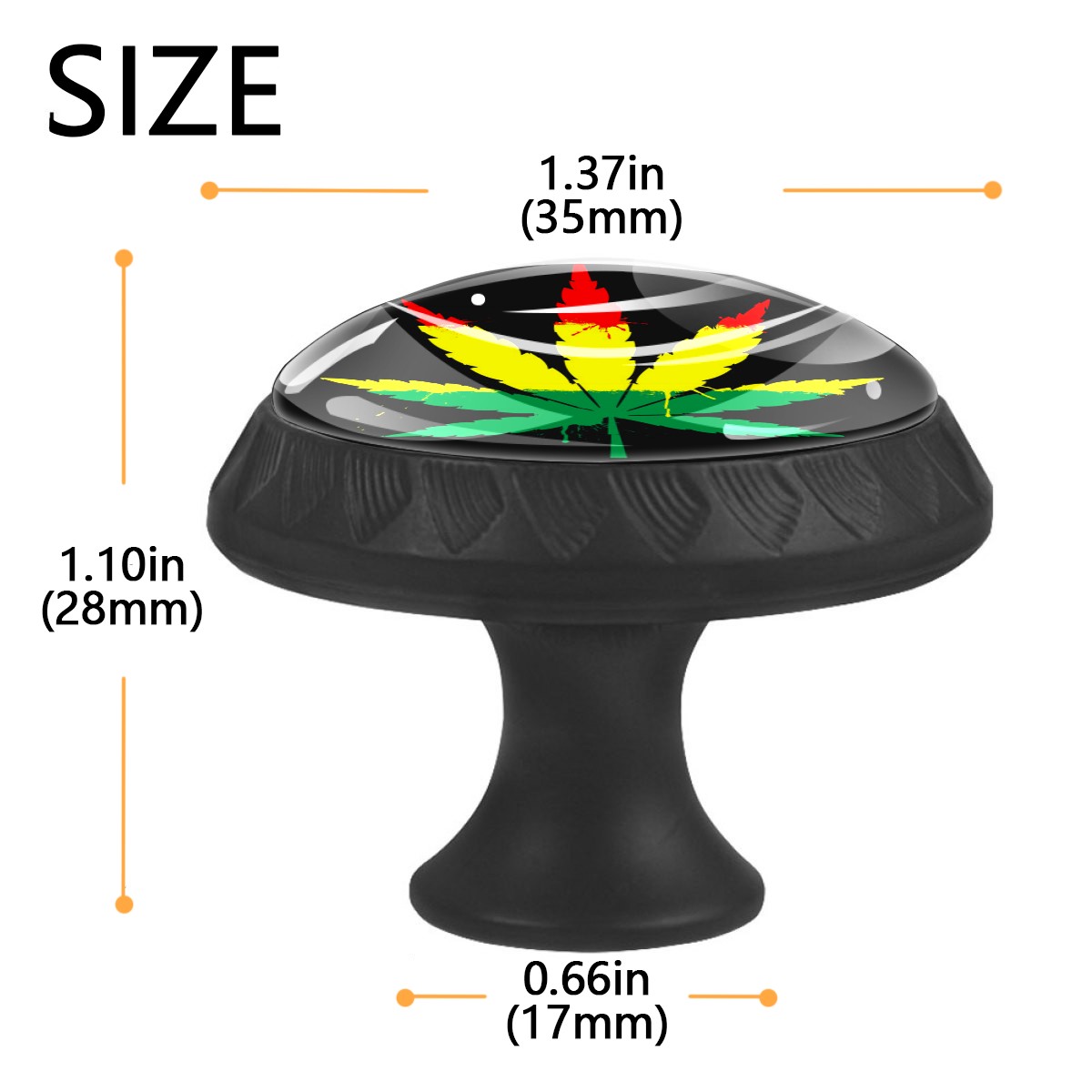Round Cabinet Door Knobs Marijuana Leaf Rasta Color Decorative Pulls Handles Cupboard Wardrobe Furniture Handles